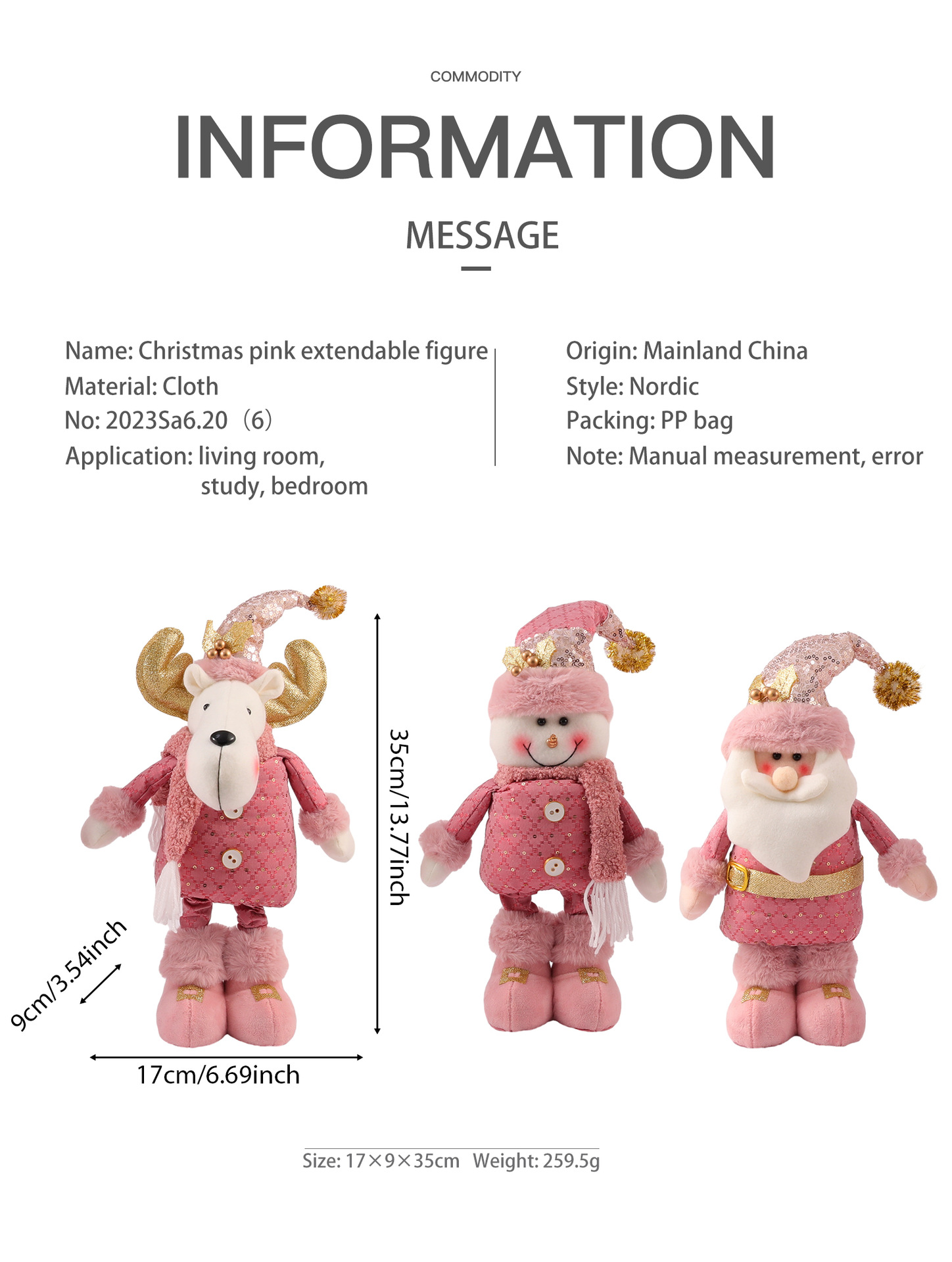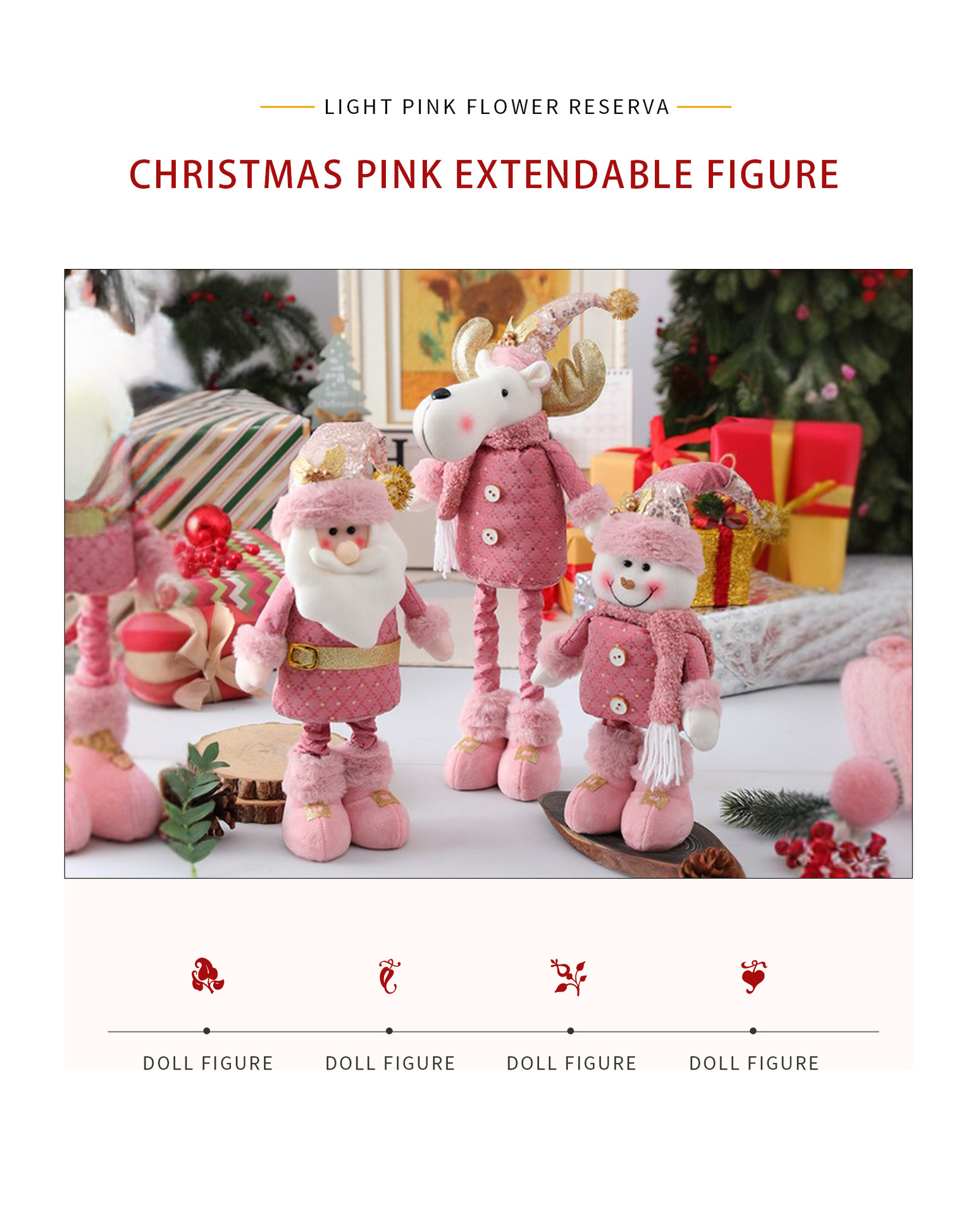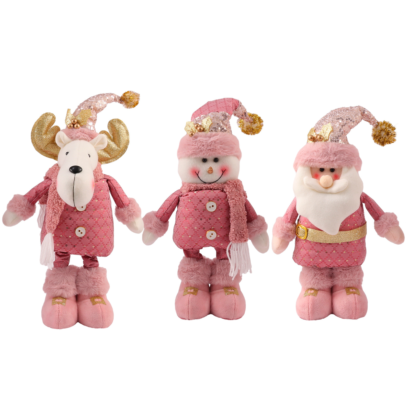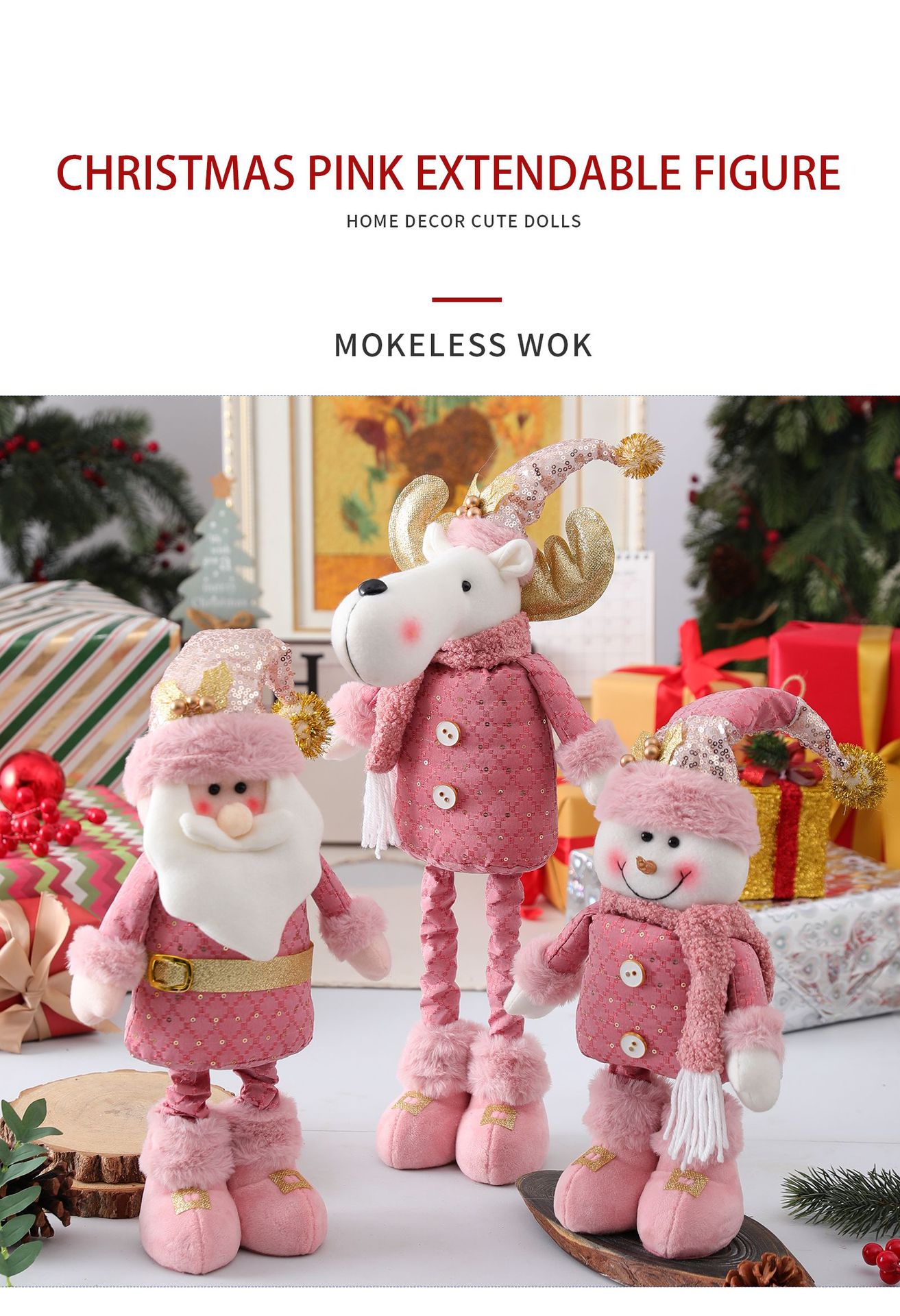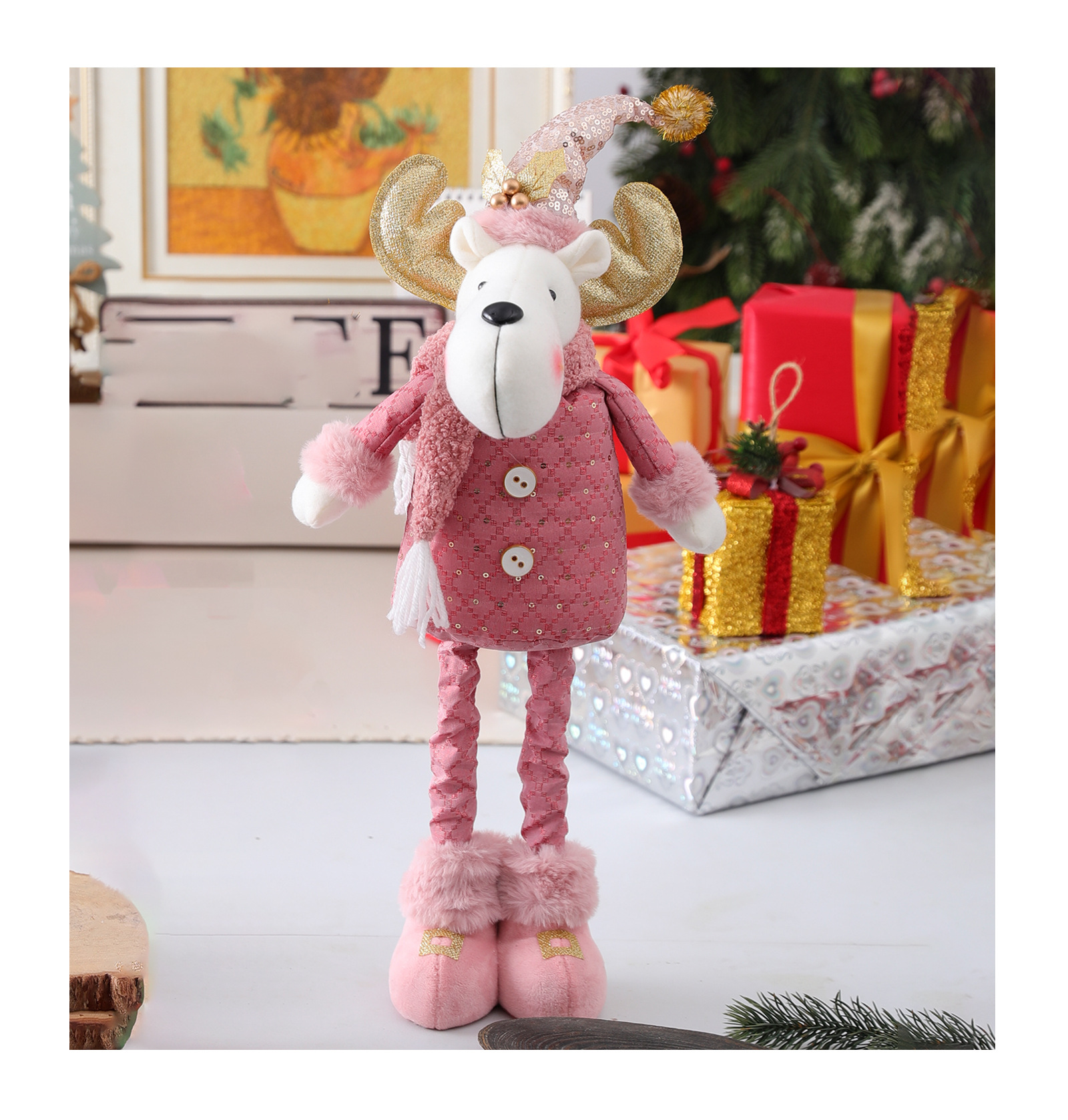 跨境圣诞新品粉色伸缩长腿圣诞主题雪人老人麋鹿公仔玩具橱窗摆件