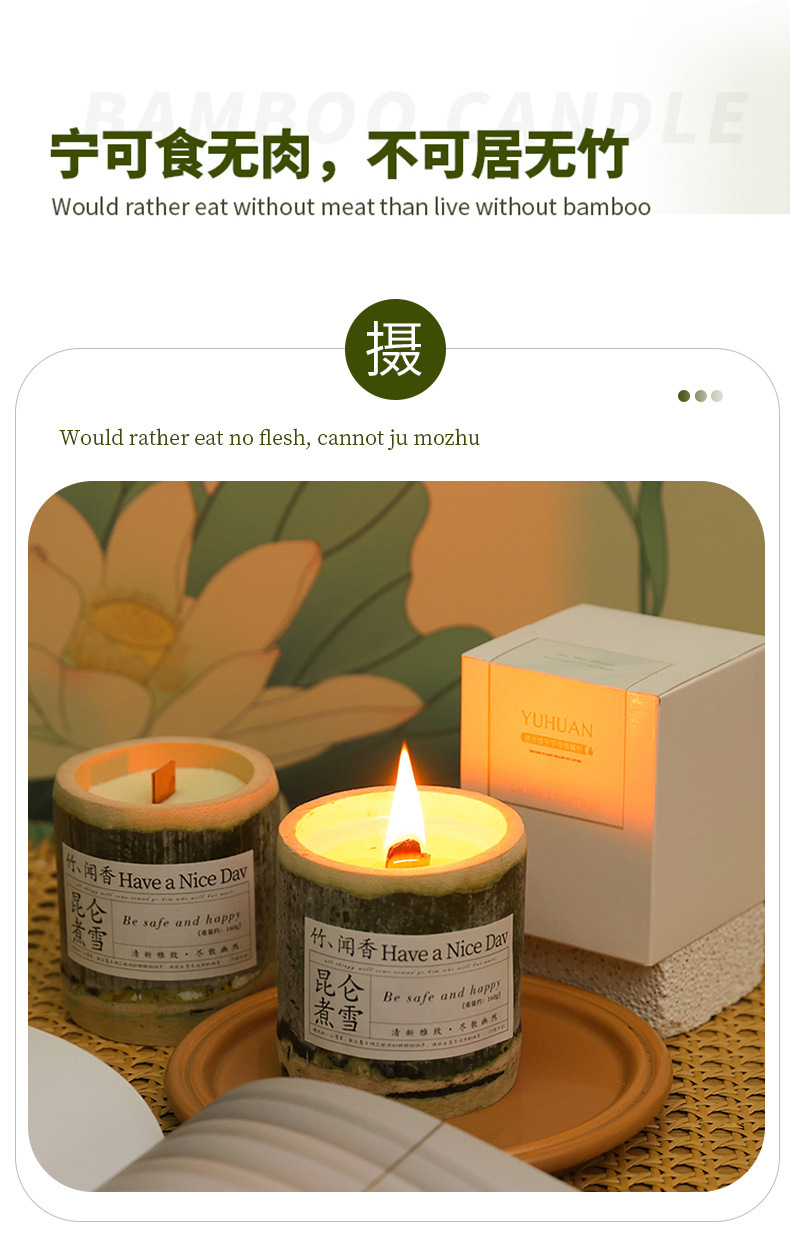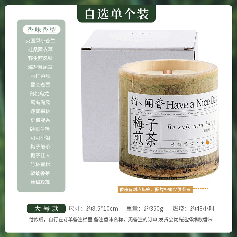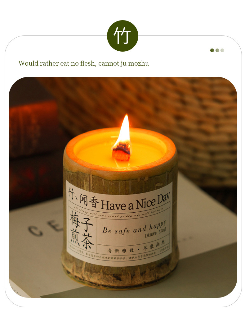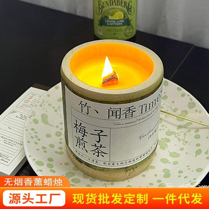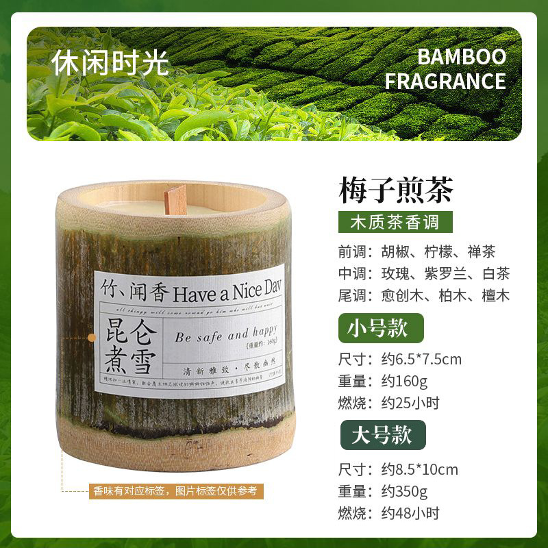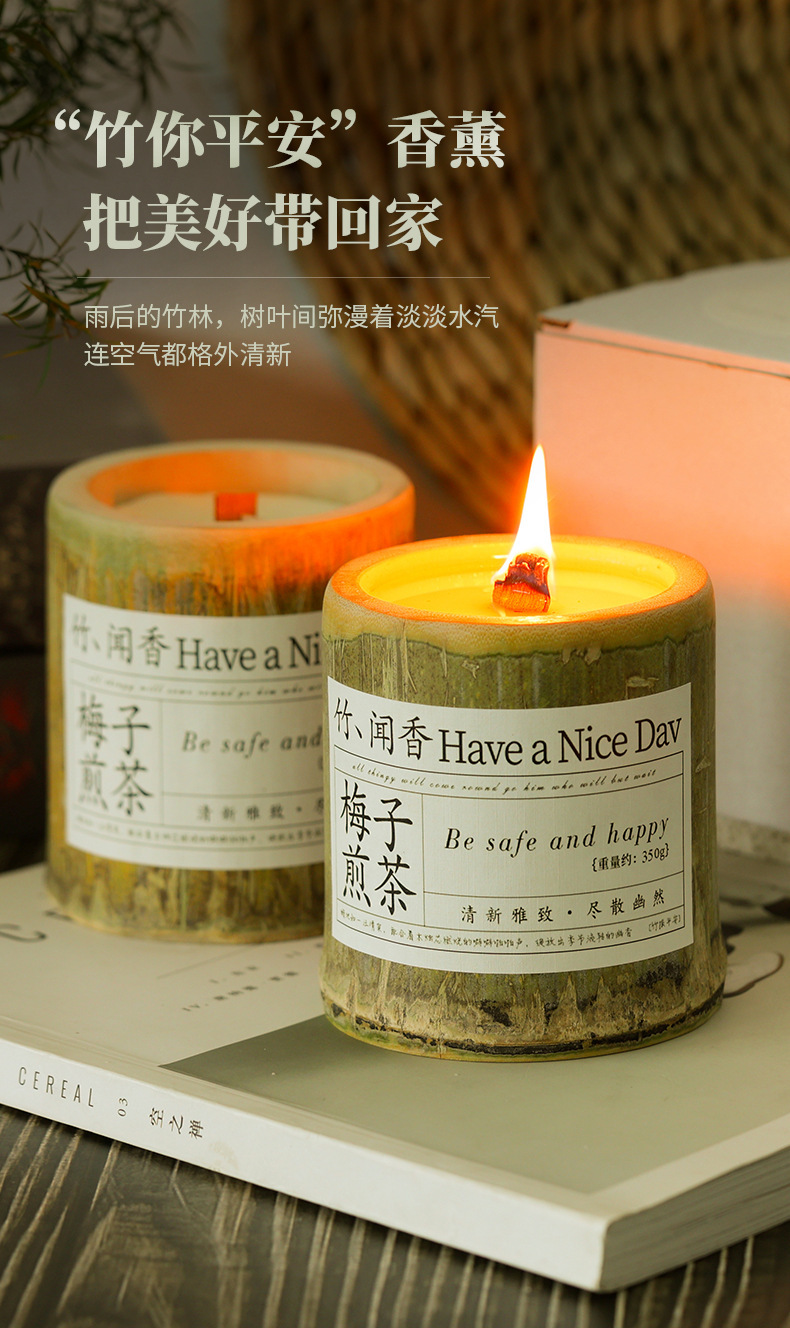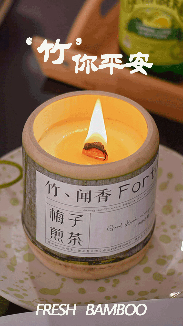 《竹你平安》梅子煎茶香薰蜡烛香氛室内持久大豆蜡竹子伴手礼批发