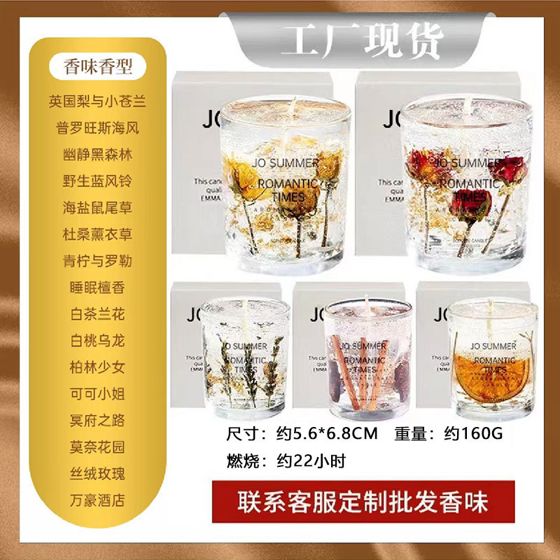 香薰蜡烛伴手礼真花精油香氛批发七夕果冻蜡无烟礼物卧室助眠熏香