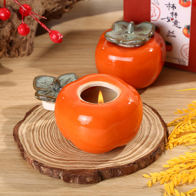 柿柿如意香薰蜡烛礼盒陶瓷水果柿子摆件网红生日礼物送闺蜜伴手礼