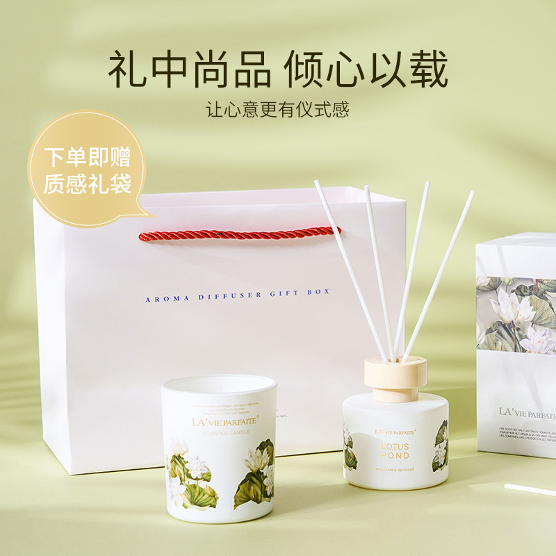 荷花批发蜡烛无火香薰精油套装 香薰藤条生日礼物送人礼品OE M