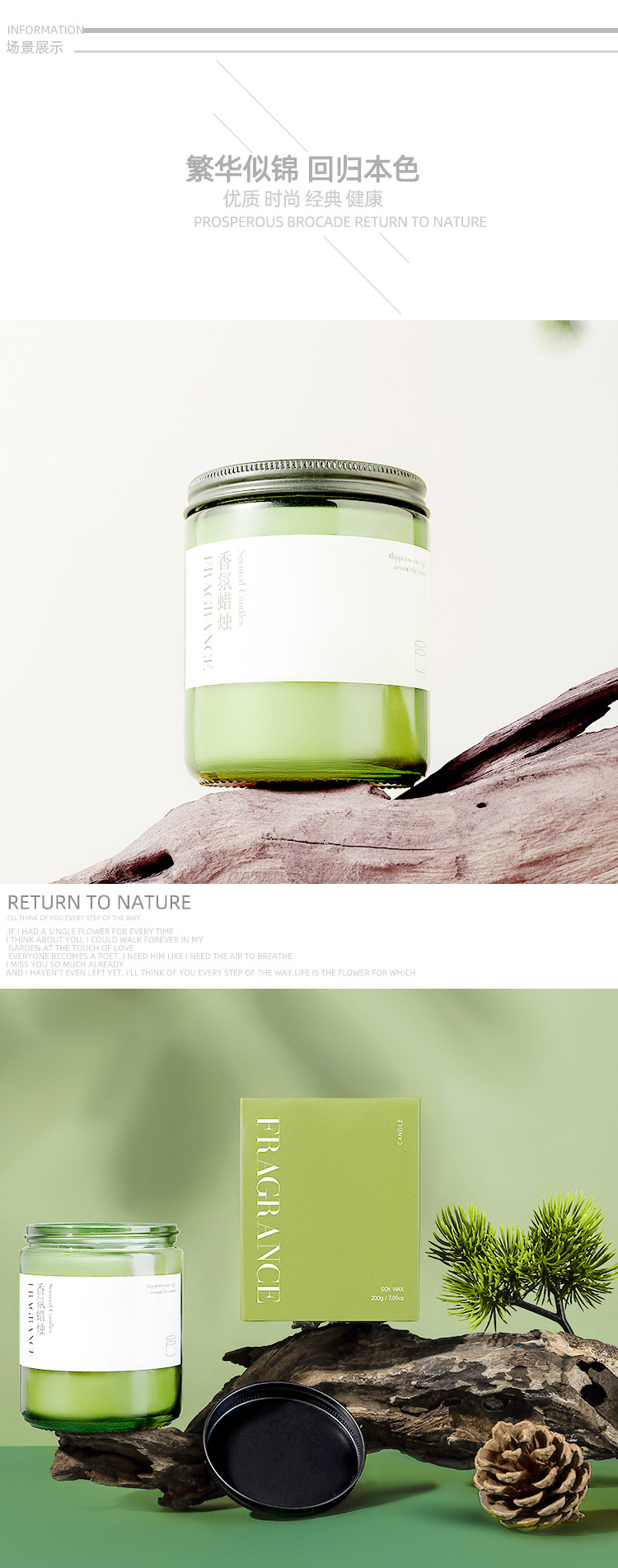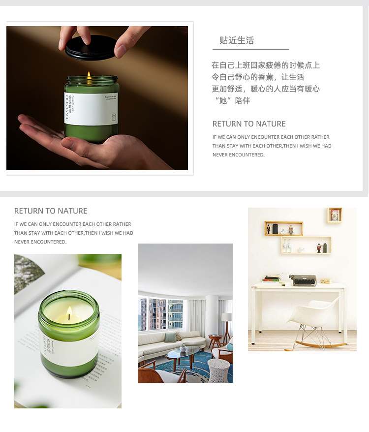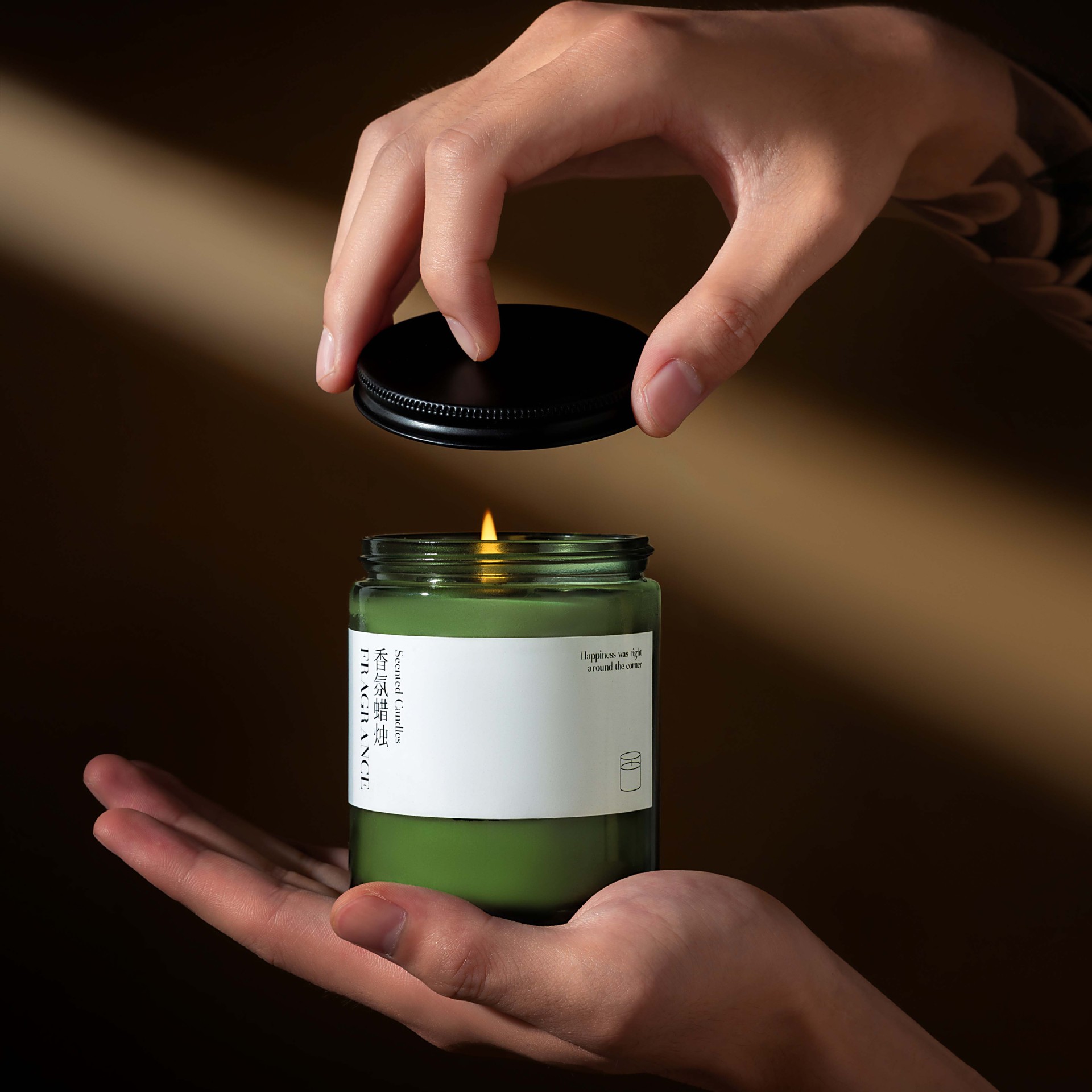 新款香薰蜡烛批发绿瓶无烟大豆蜡香氛香薰蜡烛情人节伴手礼物现货