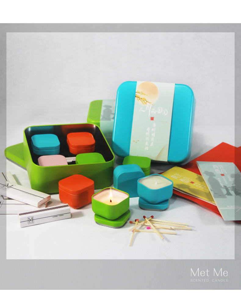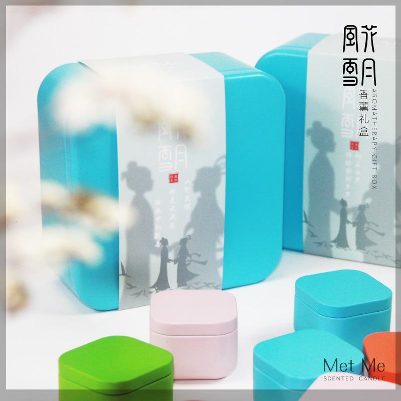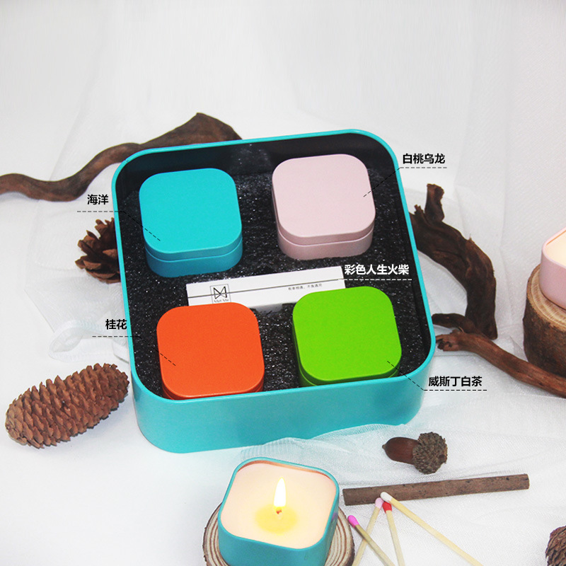 源头厂家七夕中秋马卡龙色系马口铁礼盒大豆蜡精致伴手礼香薰蜡烛