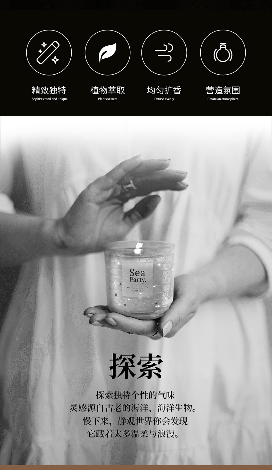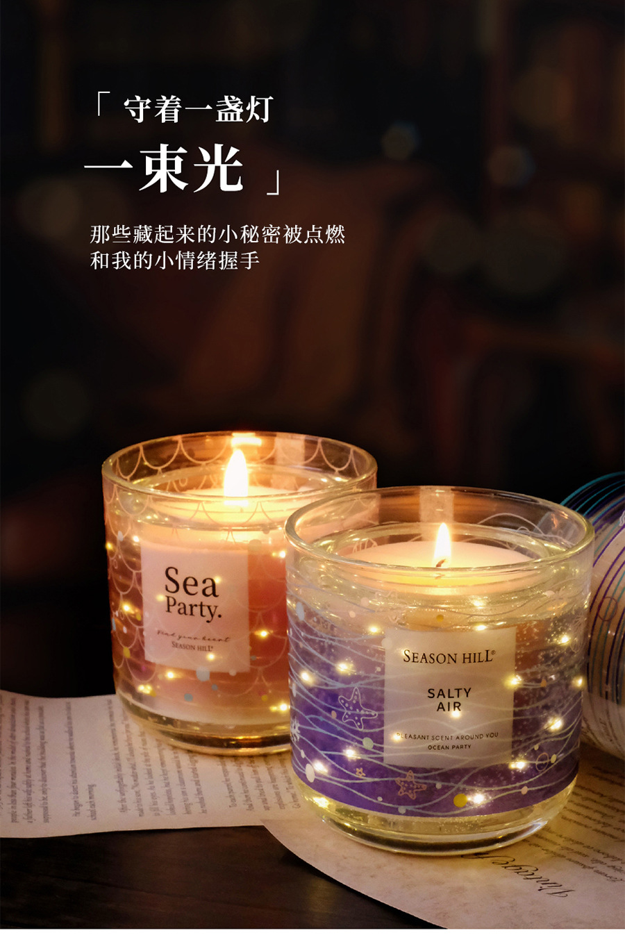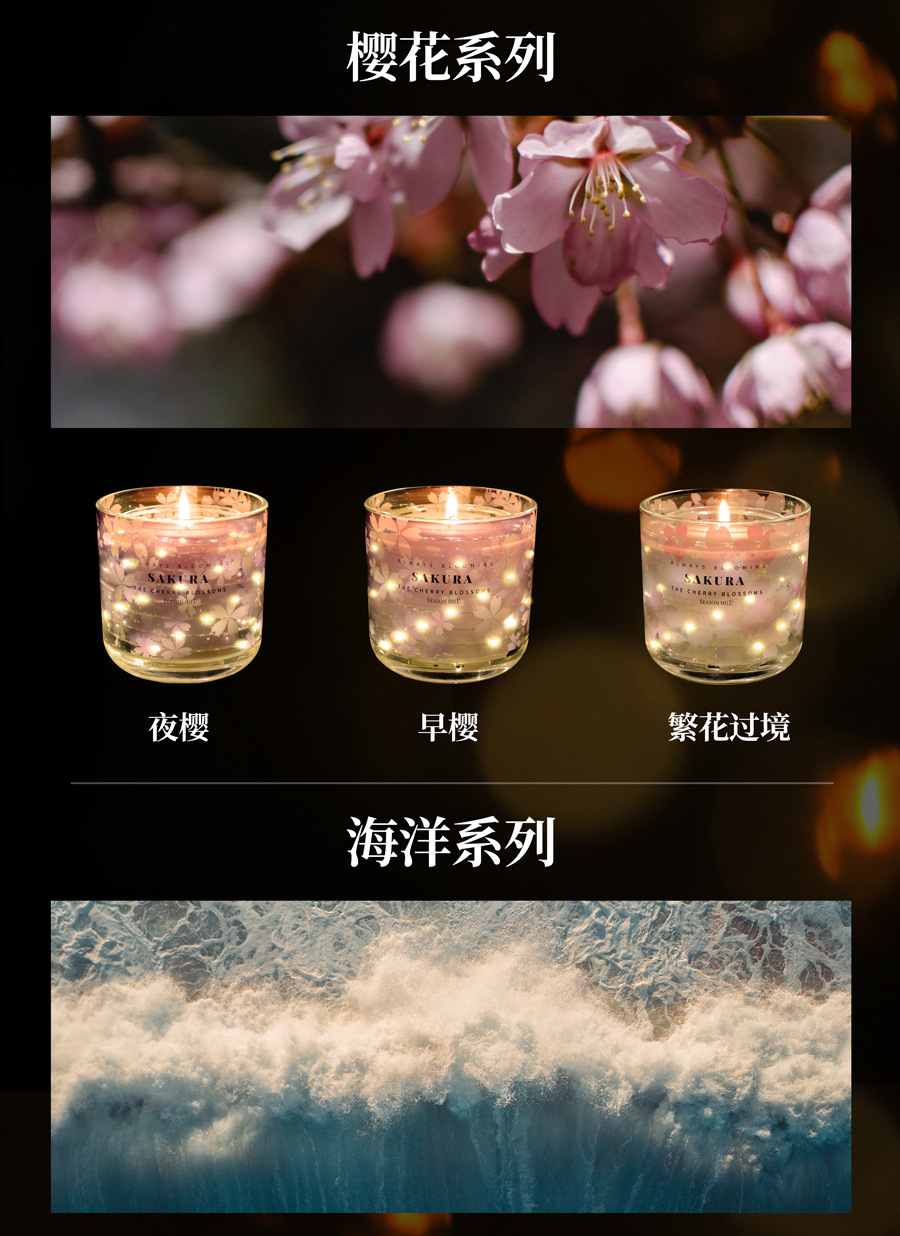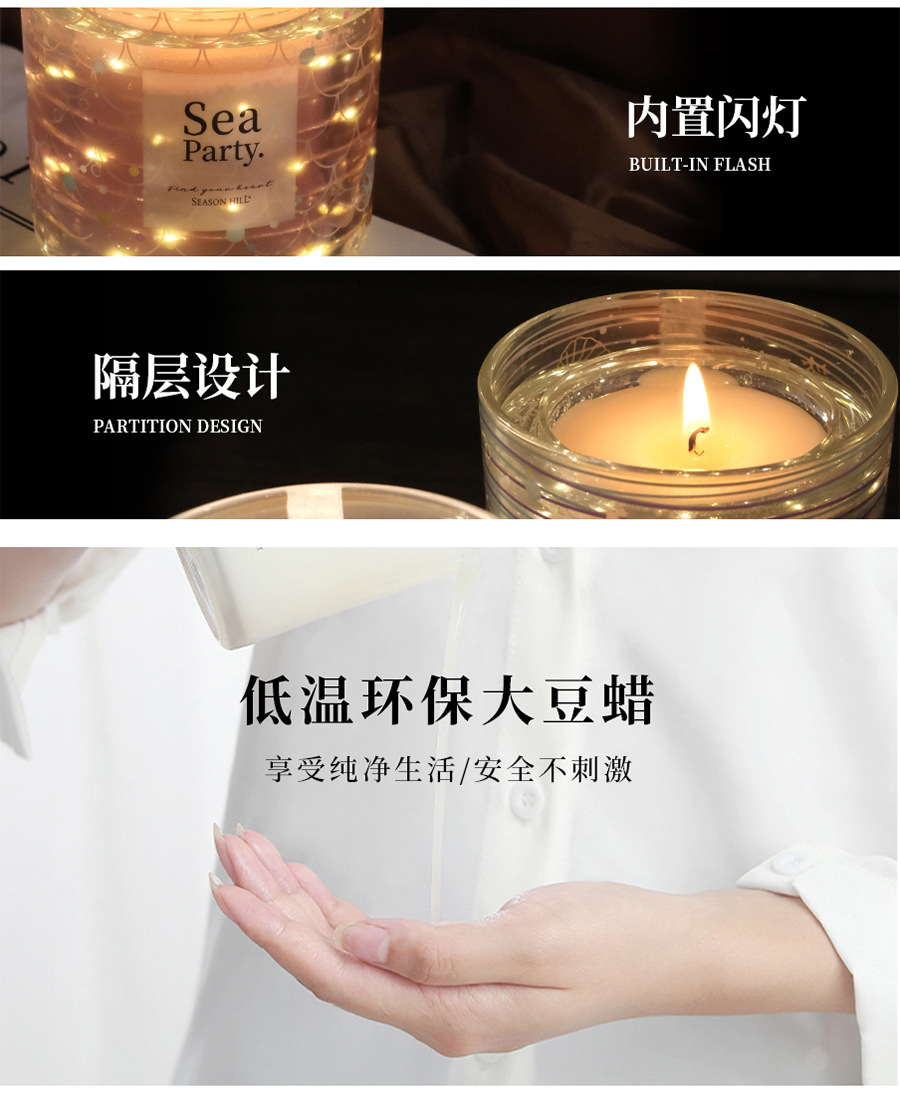 海洋风香薰蜡烛家用室发光蜡烛熏香小众高级卧室香氛点燃发光系列