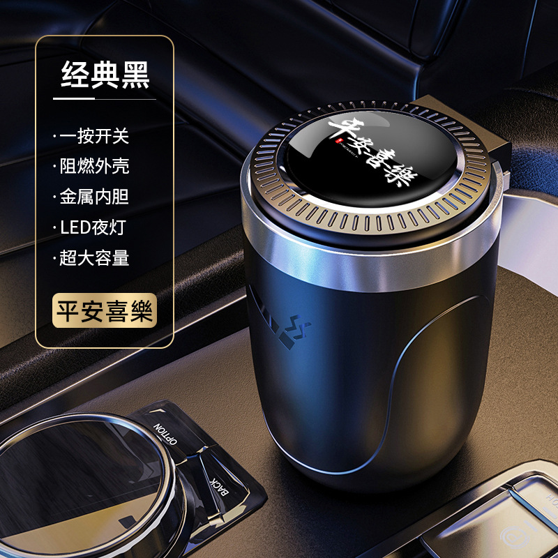 车载烟灰缸车用多功能带盖高级感不锈钢车内专用车上神器汽车用品