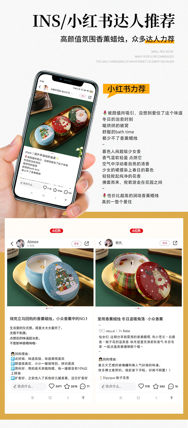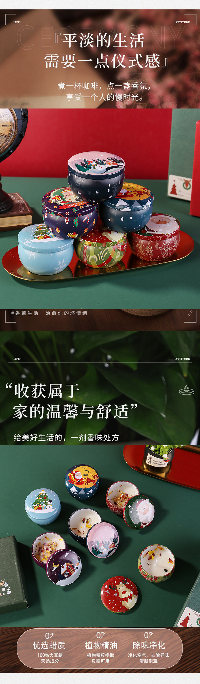 圣诞款香薰蜡烛北欧美风罐装雪人香薰蜡烛淡香无烟大豆蜡固体香氛
