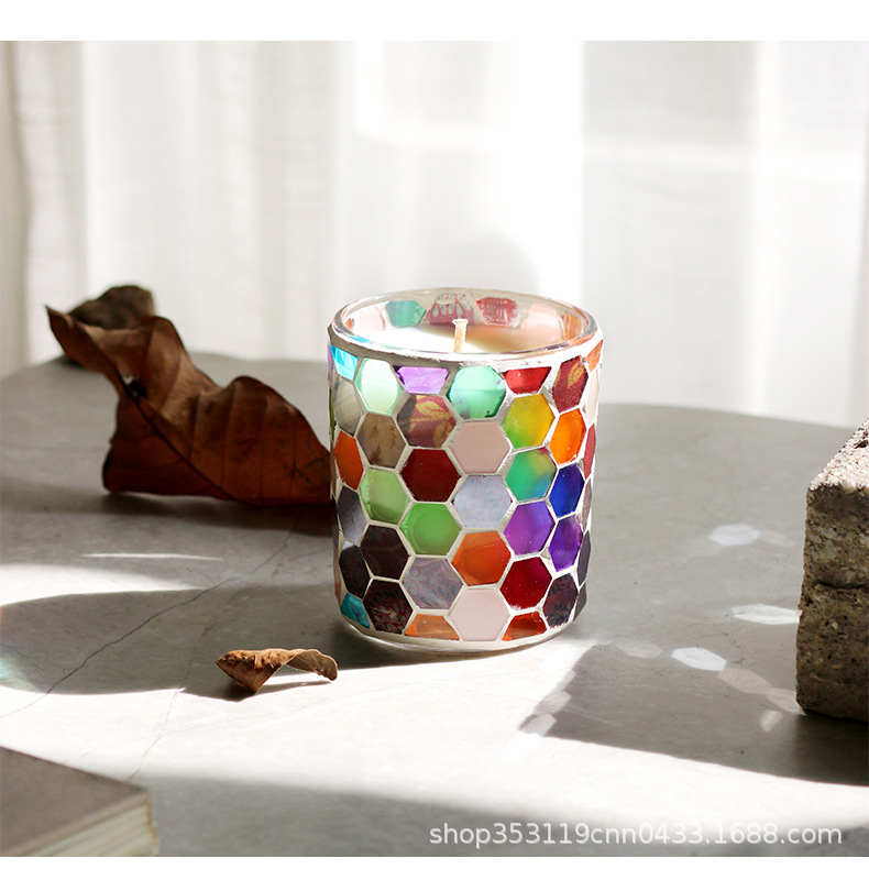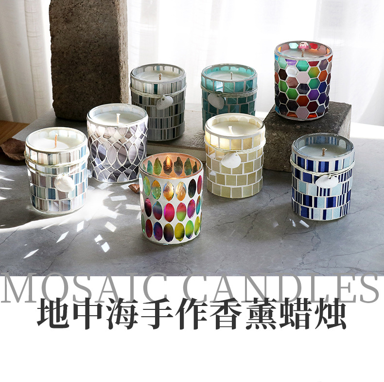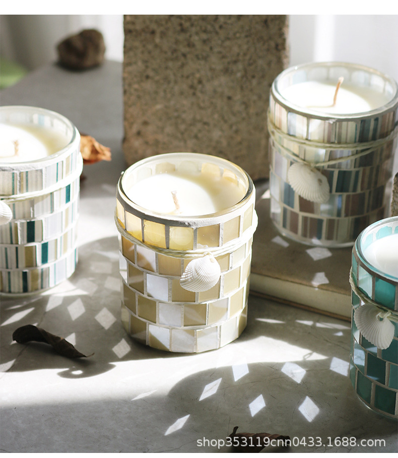 亚马逊热销地中海系贝壳马赛克玻璃杯手工香薰蜡烛创意香氛伴手礼