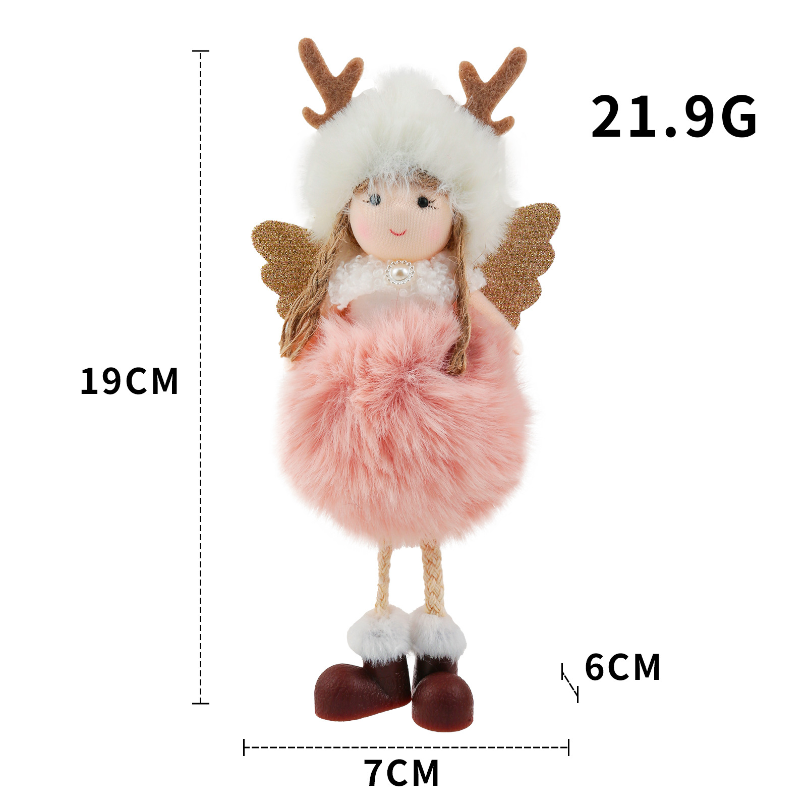 新款跨境圣诞节毛绒鹿角天使小吊饰可爱公仔娃娃礼物圣诞树挂件