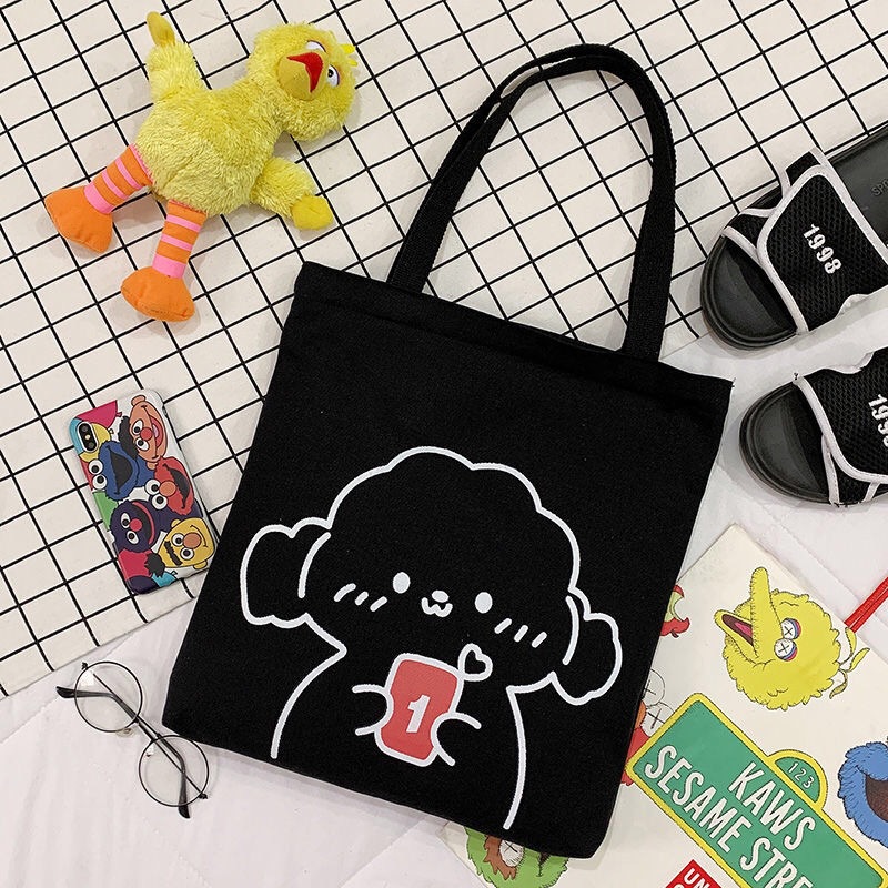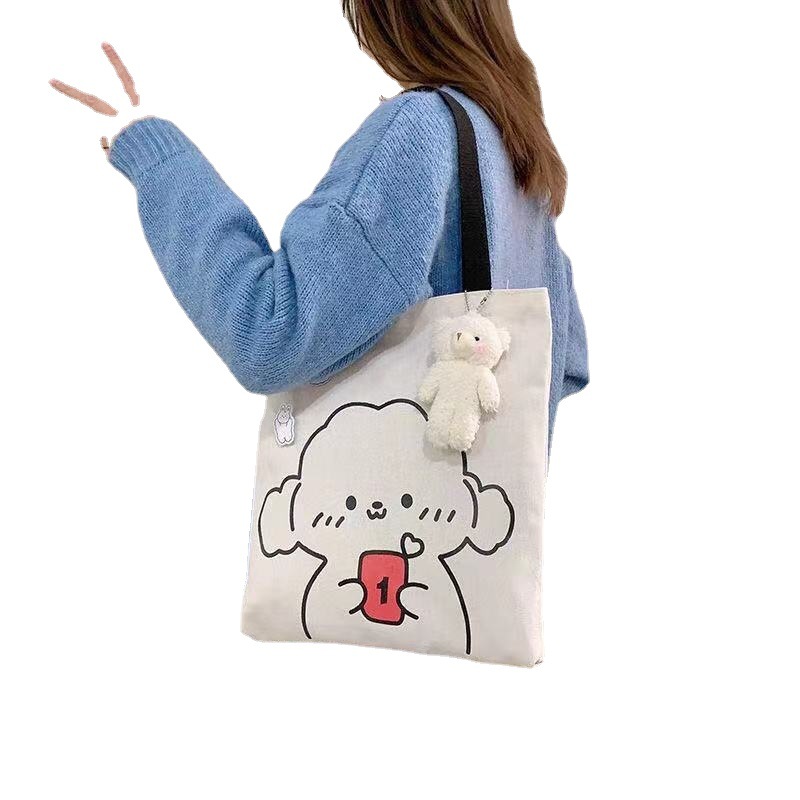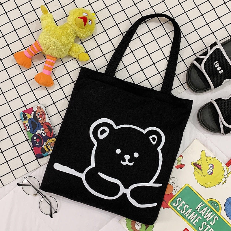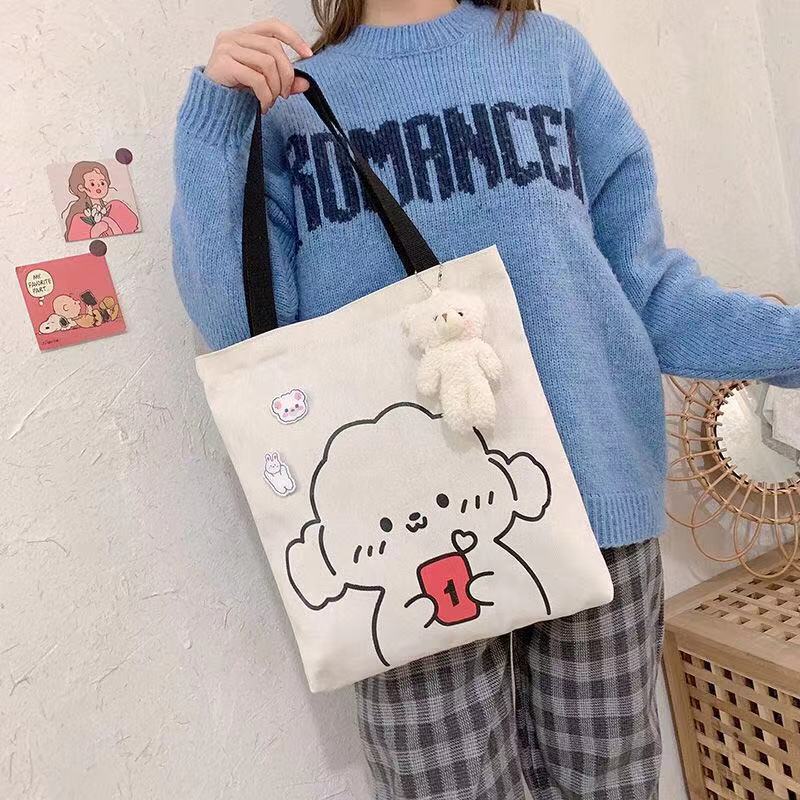 韩版ins 大容量帆布包女学生上课手提包学院风百搭可爱小熊单肩包