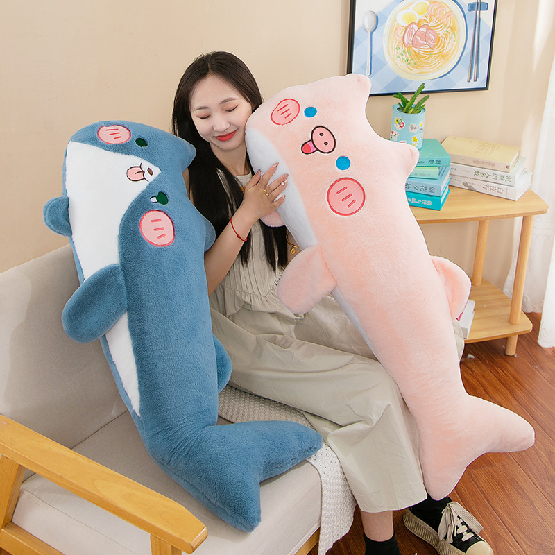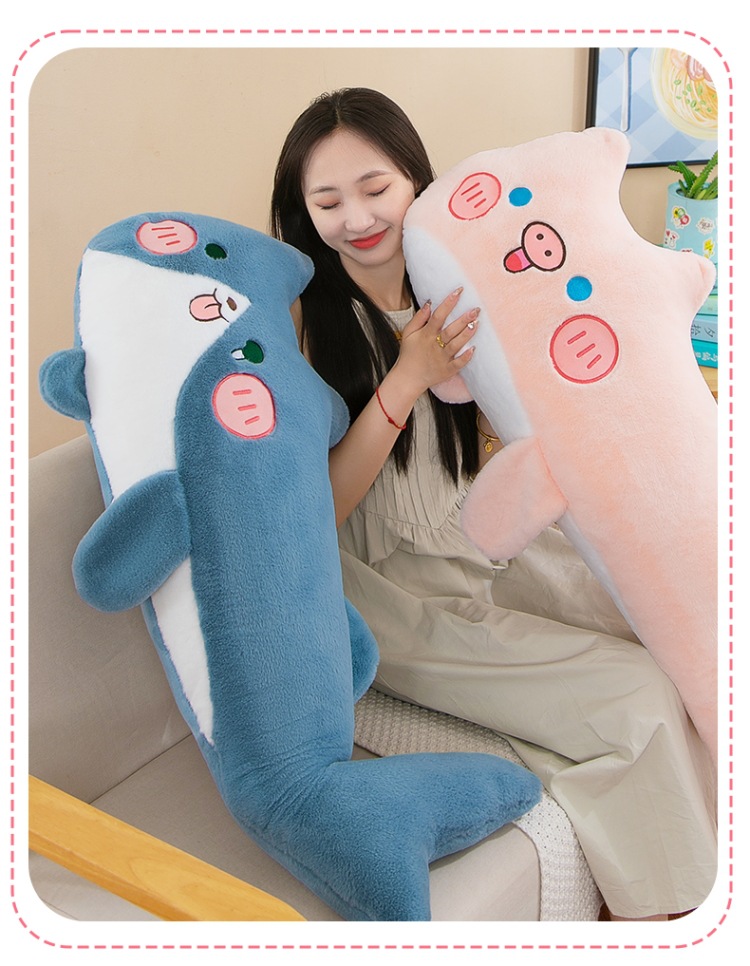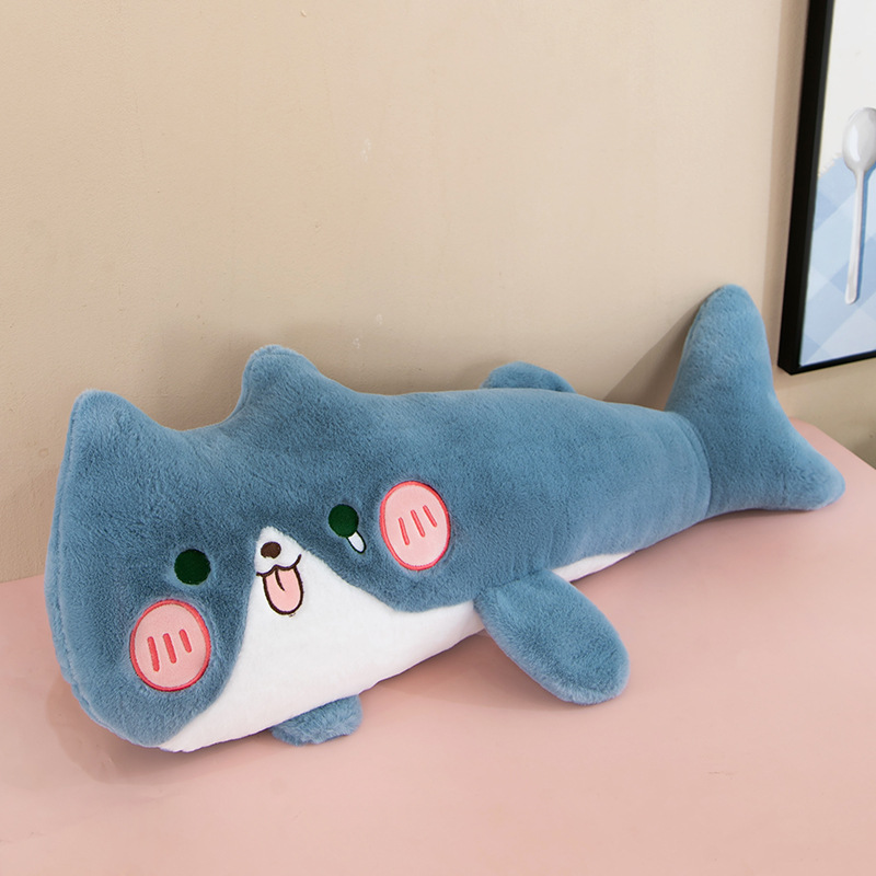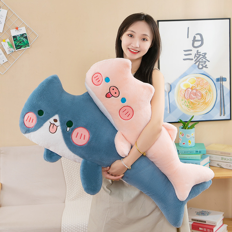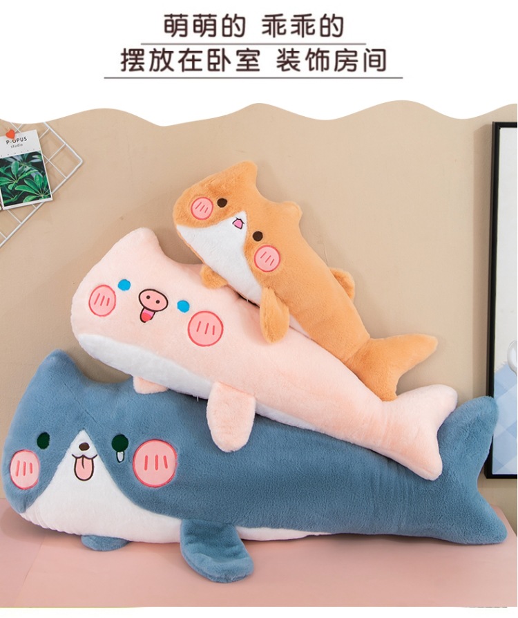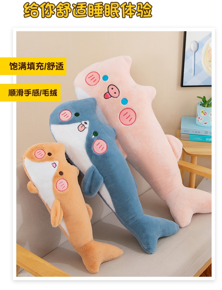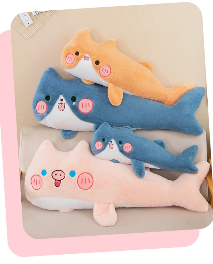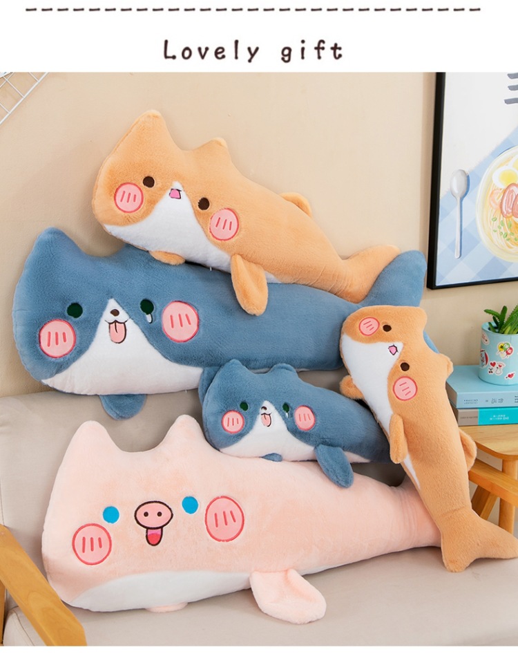 跨境新款变身鲨鱼可爱饼干猫咪猪猪抱枕大脸猫猫星人靠垫毛绒玩具
