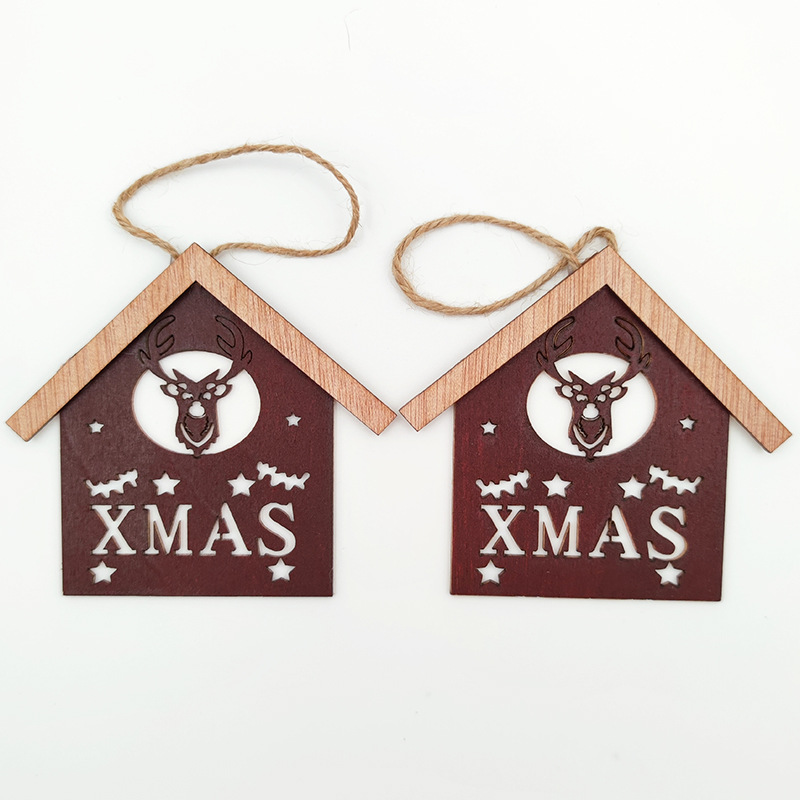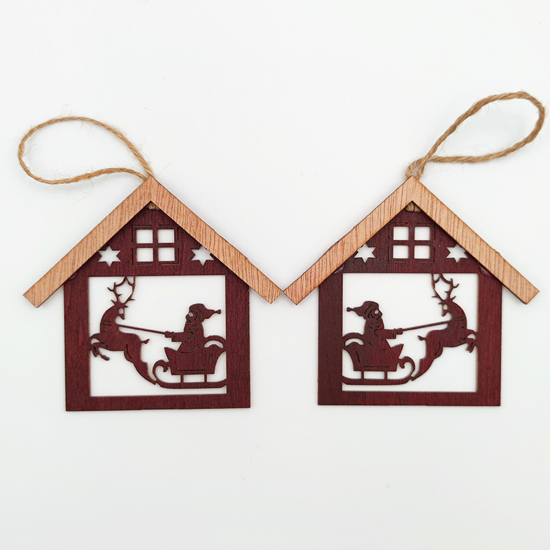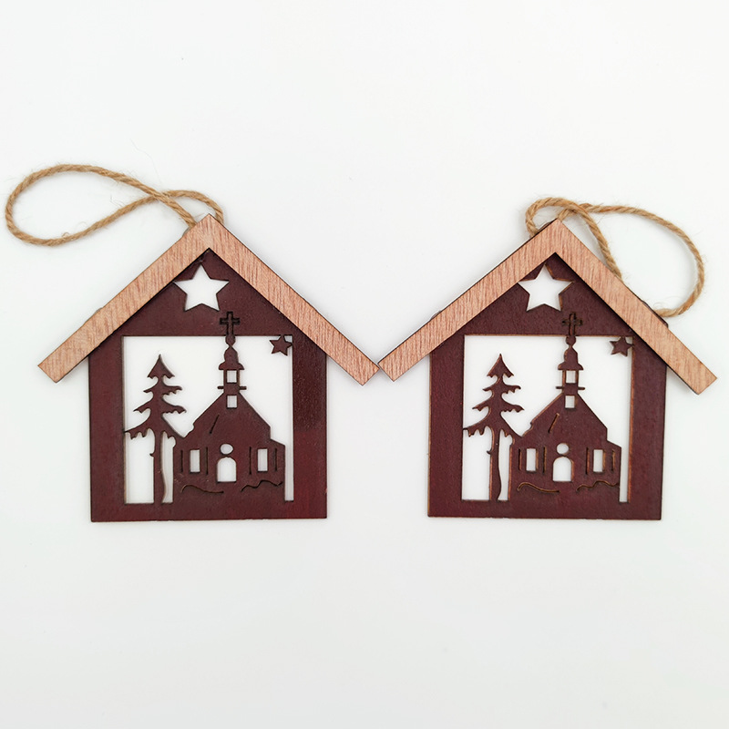圣诞装饰品圣诞树挂件木质镂空房子房屋小挂饰橱窗装扮布置道具