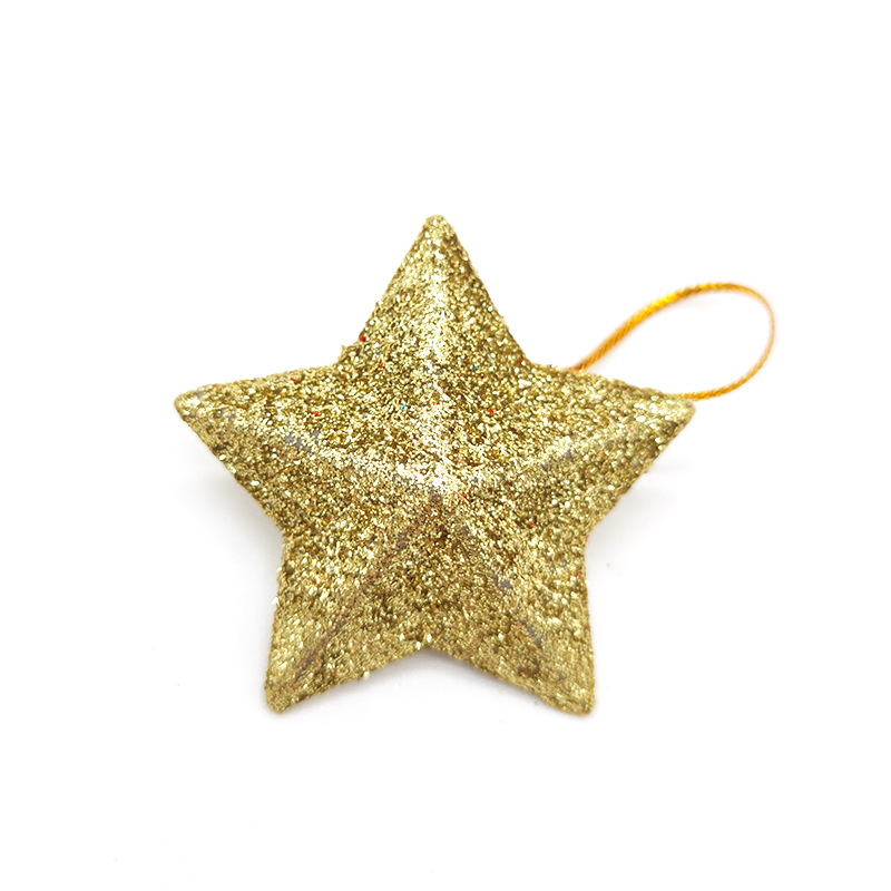 圣诞装饰品圣诞金粉星星挂件五角星丝带小挂件圣诞树装饰配件挂件