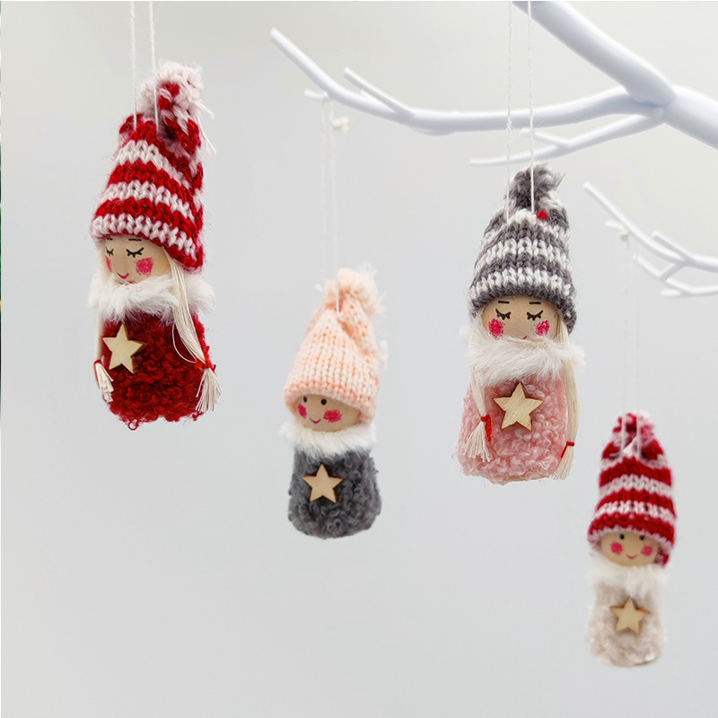 跨境新款圣诞装饰品针织天使男孩女孩挂件毛线娃娃圣诞树壁橱装饰