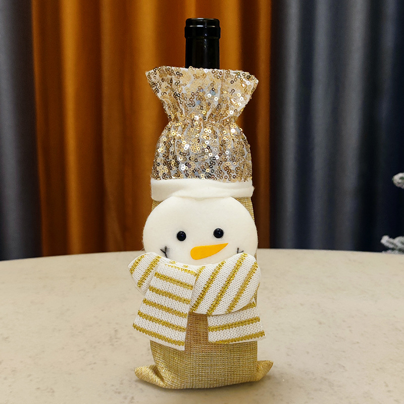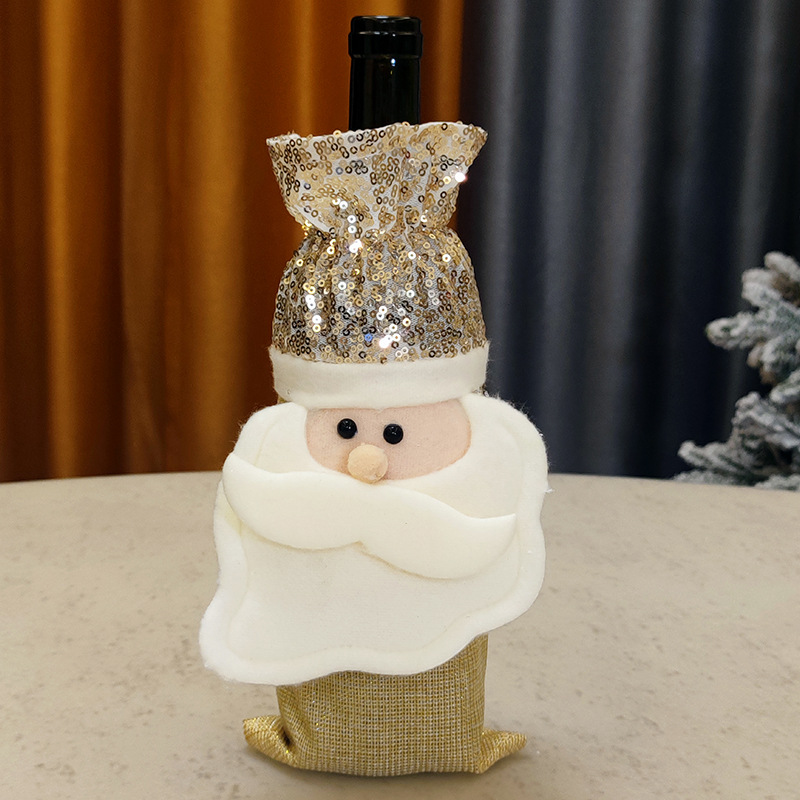 跨境新款圣诞红酒套亮片老人雪人圣诞新款餐桌家居用品酒瓶装饰