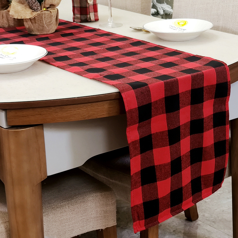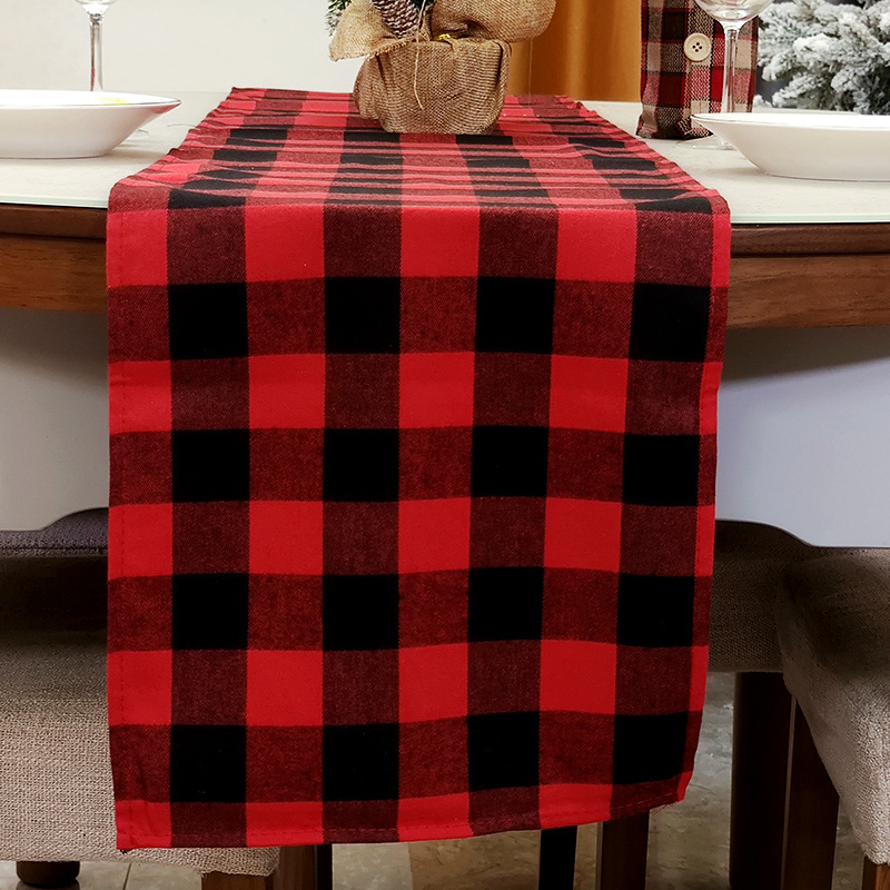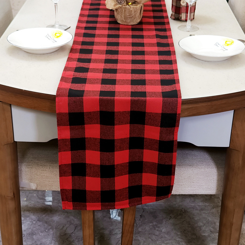 跨境圣诞节桌布红黑格子桌旗桌布欧式创意居家圣诞节餐桌装饰用品
