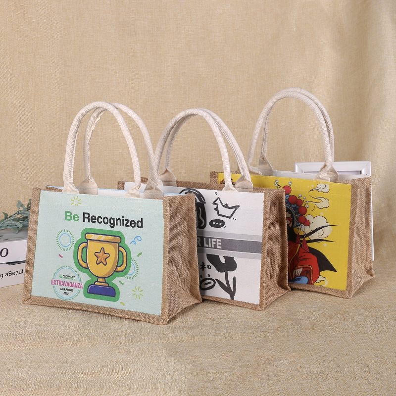 网红复古覆膜黄麻手提袋批发亚麻包加厚创意新款麻布袋黄麻袋制定