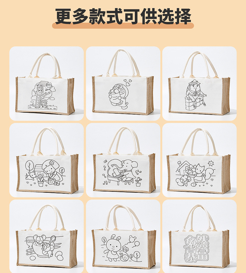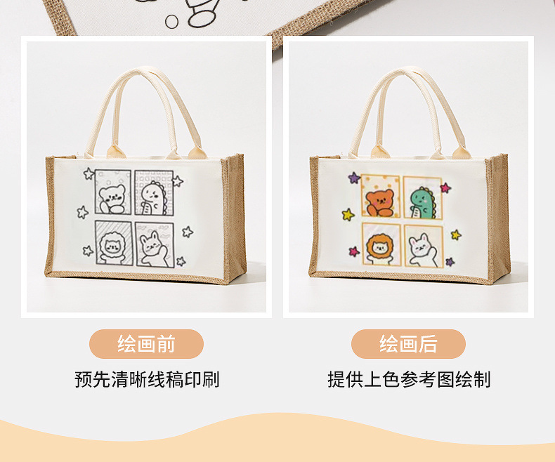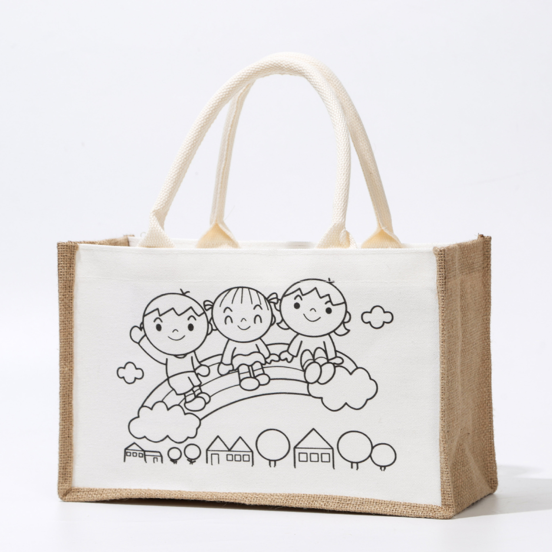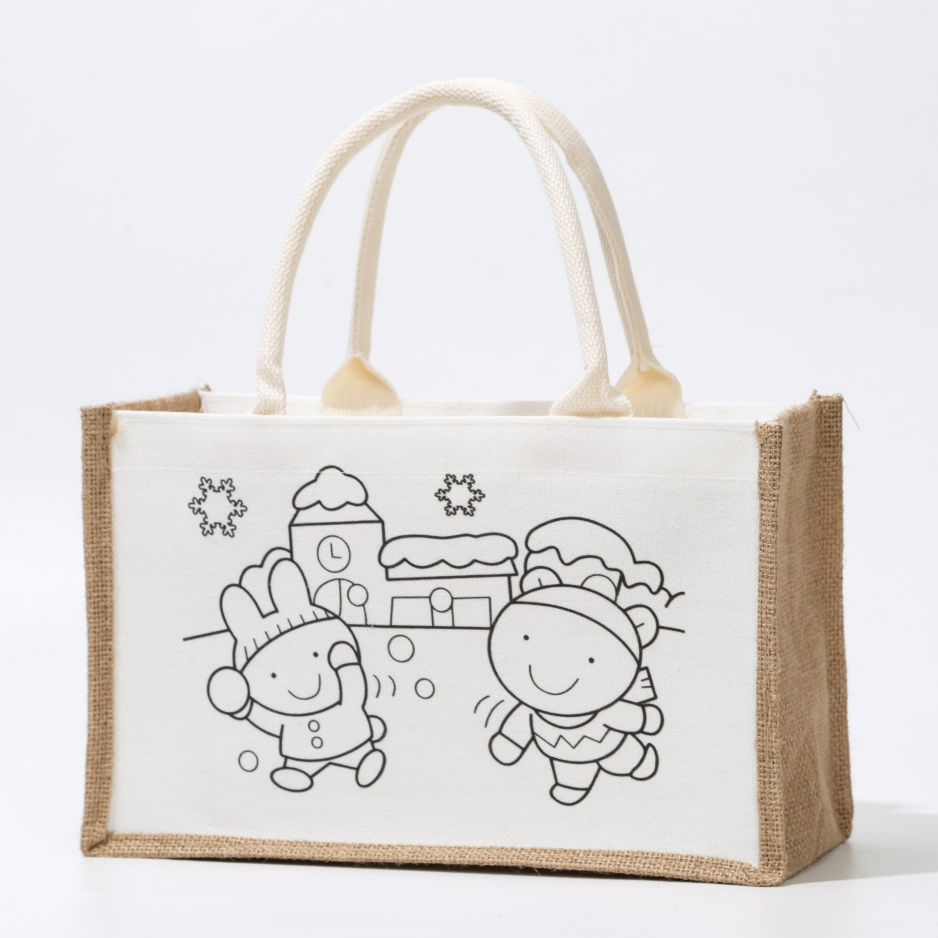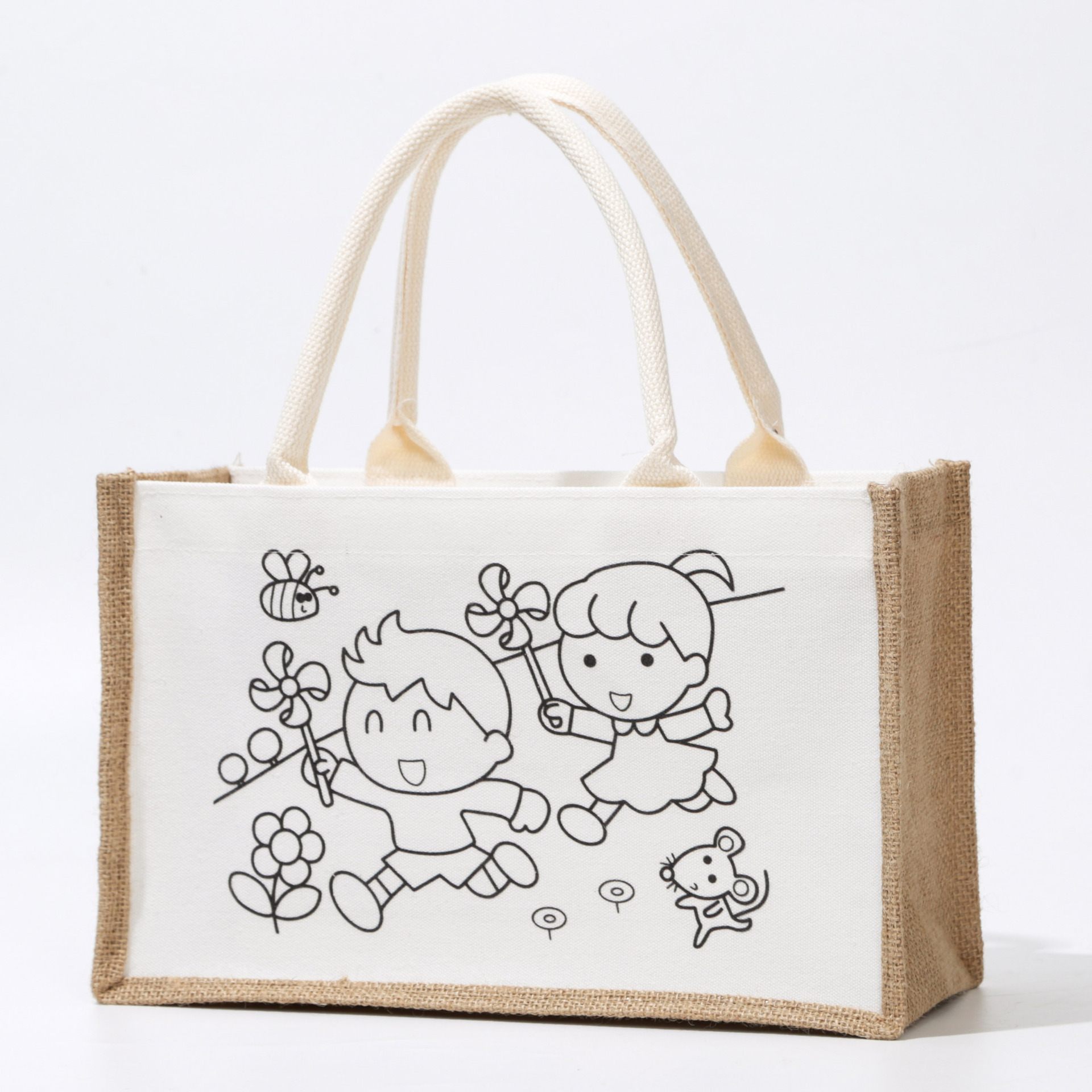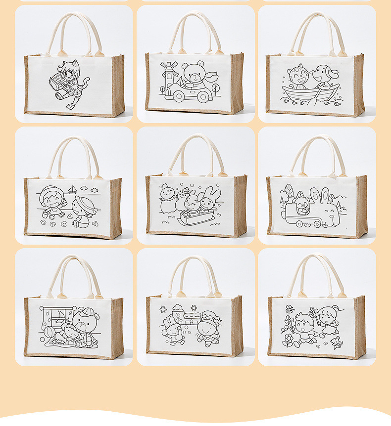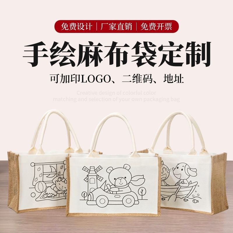 现货麻布袋diy手绘线稿涂鸦覆膜亚麻布袋创意便携礼品手提袋制定
