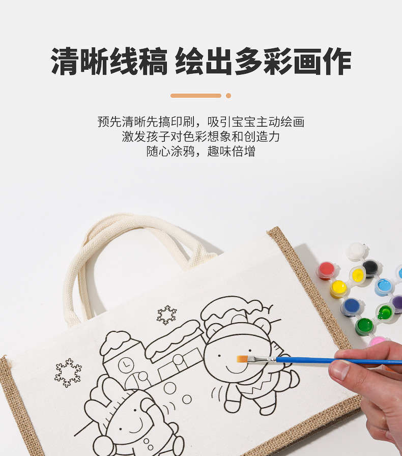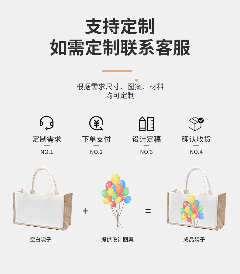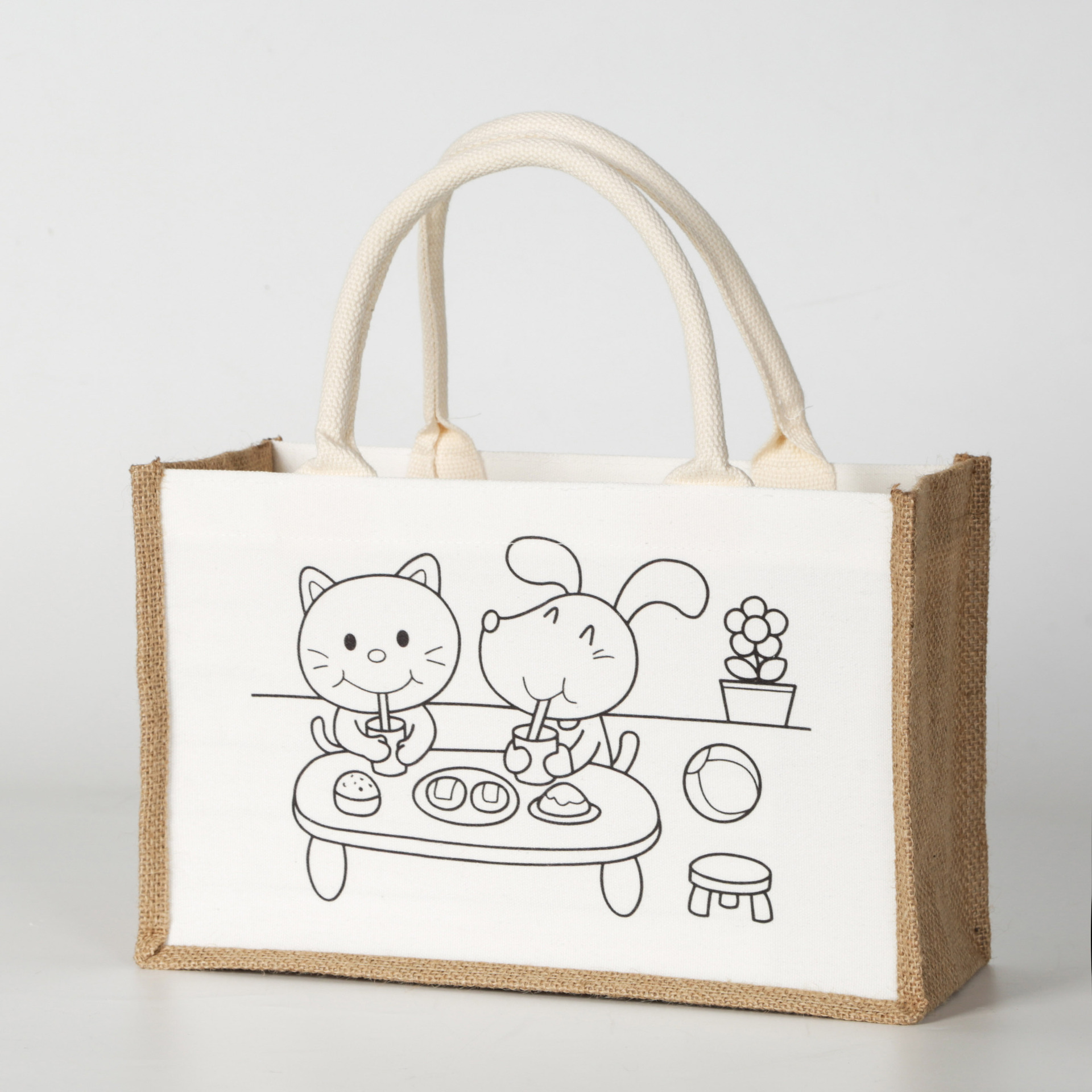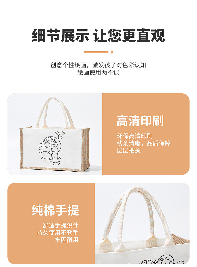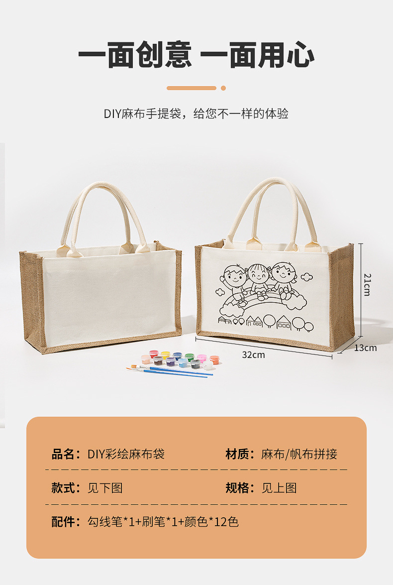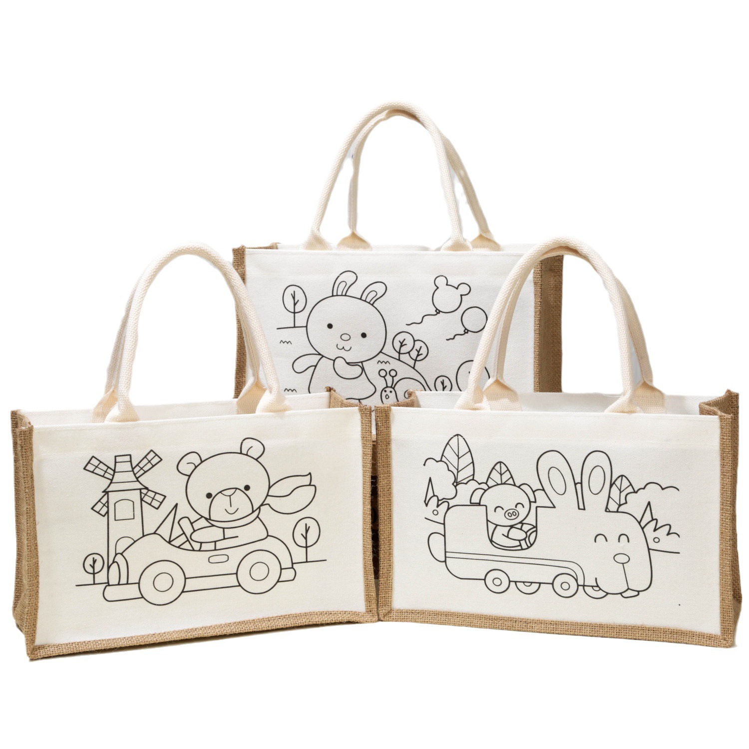 现货麻布袋diy手绘线稿涂鸦覆膜亚麻布袋创意便携礼品手提袋制定