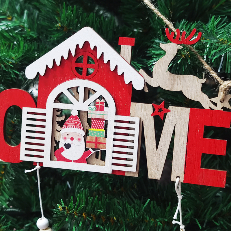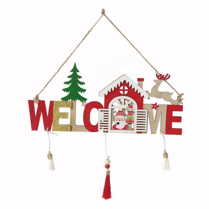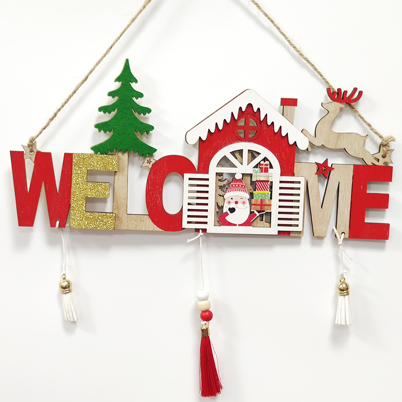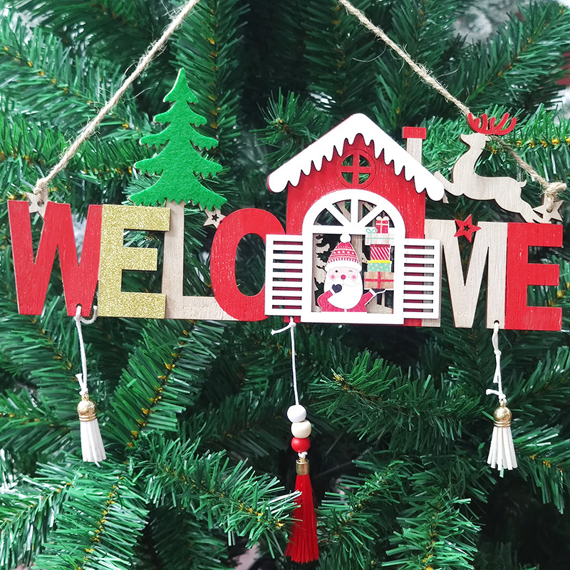 新款跨境圣诞装饰木质挂饰镂空流苏字母挂牌橱窗圣诞树装饰小挂件