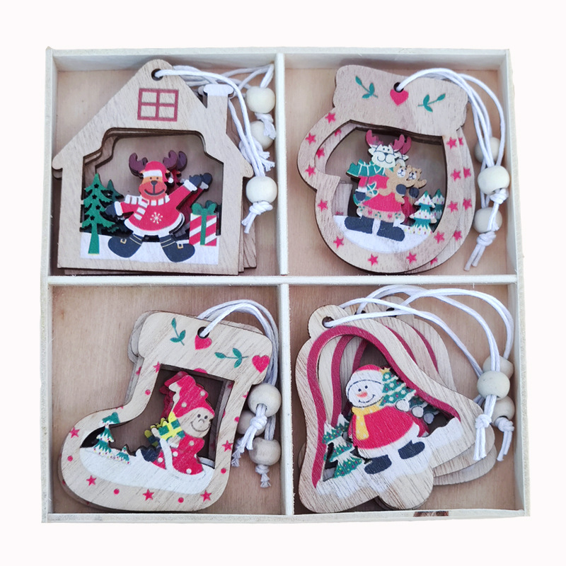 圣诞装饰用品新款卡通木质圣诞树小挂件圣诞装饰品树挂饰礼盒包装