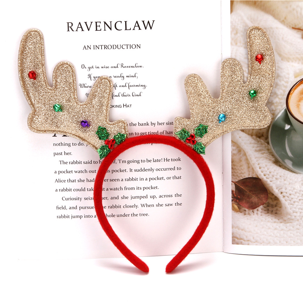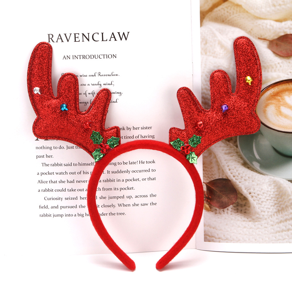 RL560圣诞节发饰散粉大鹿角铃铛五星装饰圣诞节鹿角发箍圣诞
