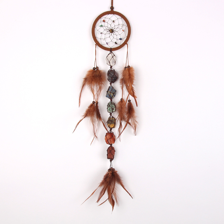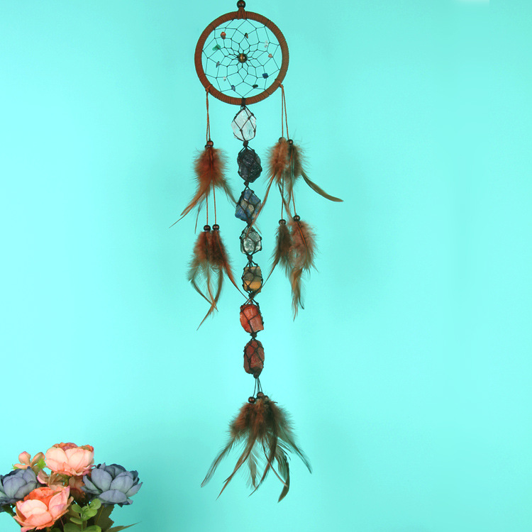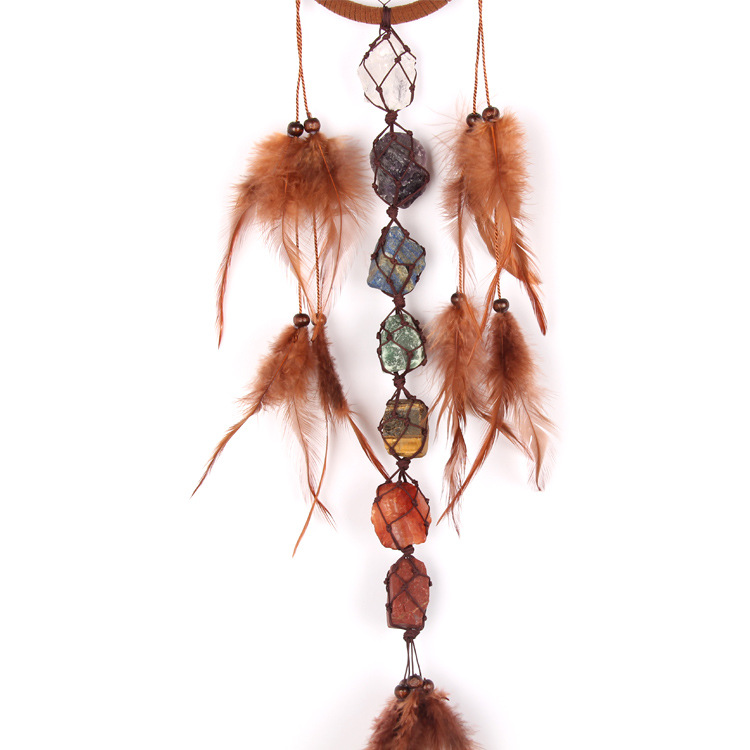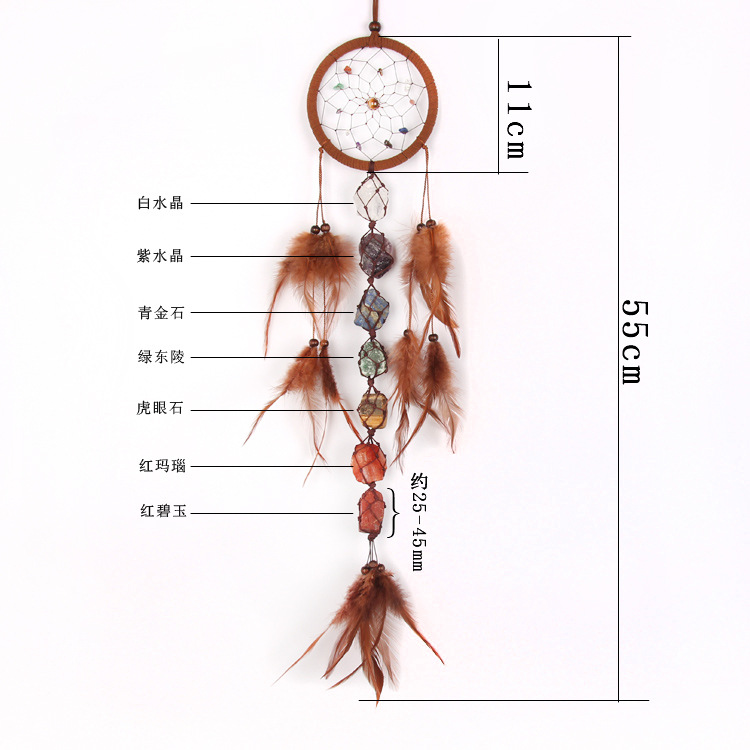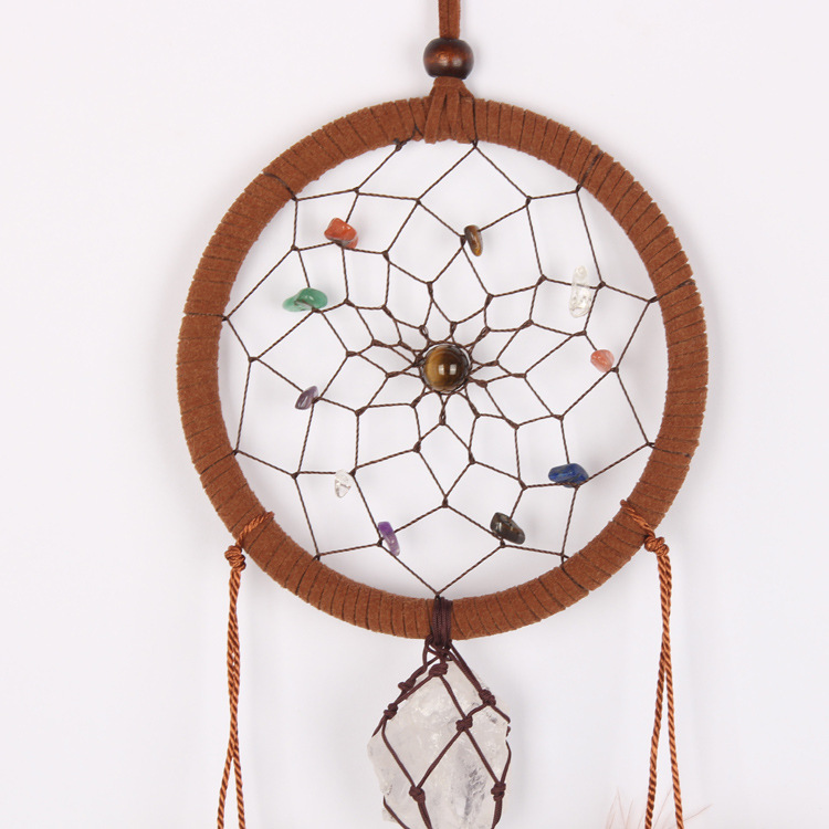 七彩水晶原石编织捕梦网北美流行波西米亚风居家装饰品墙壁挂饰