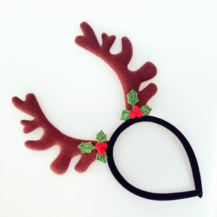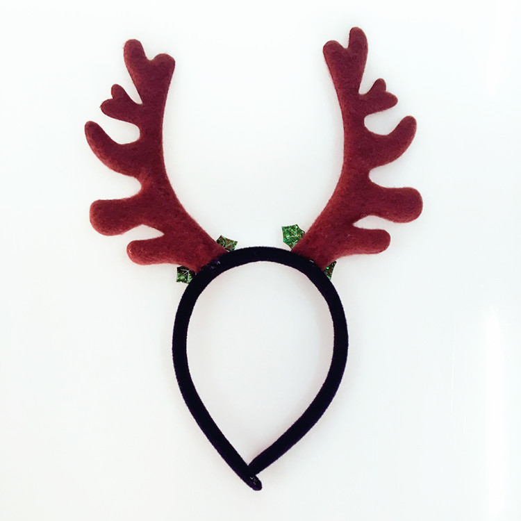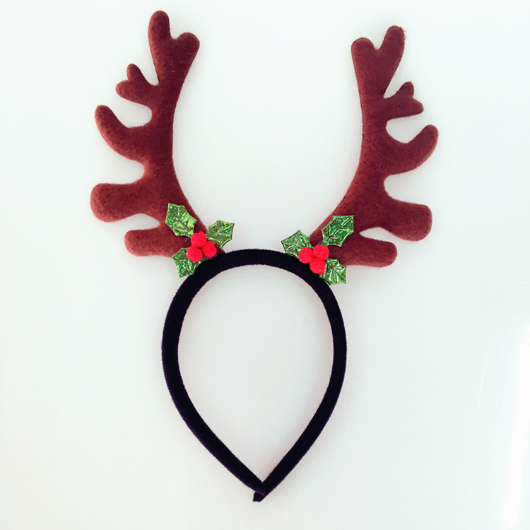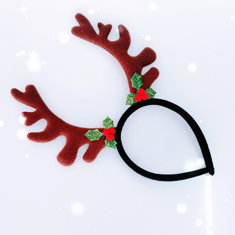 RL438新款圣诞鹿角 棕色长鹿角带花叶黑色发箍 圣诞鹿角发饰