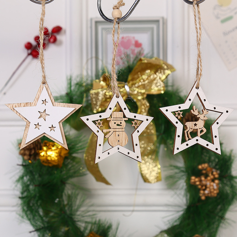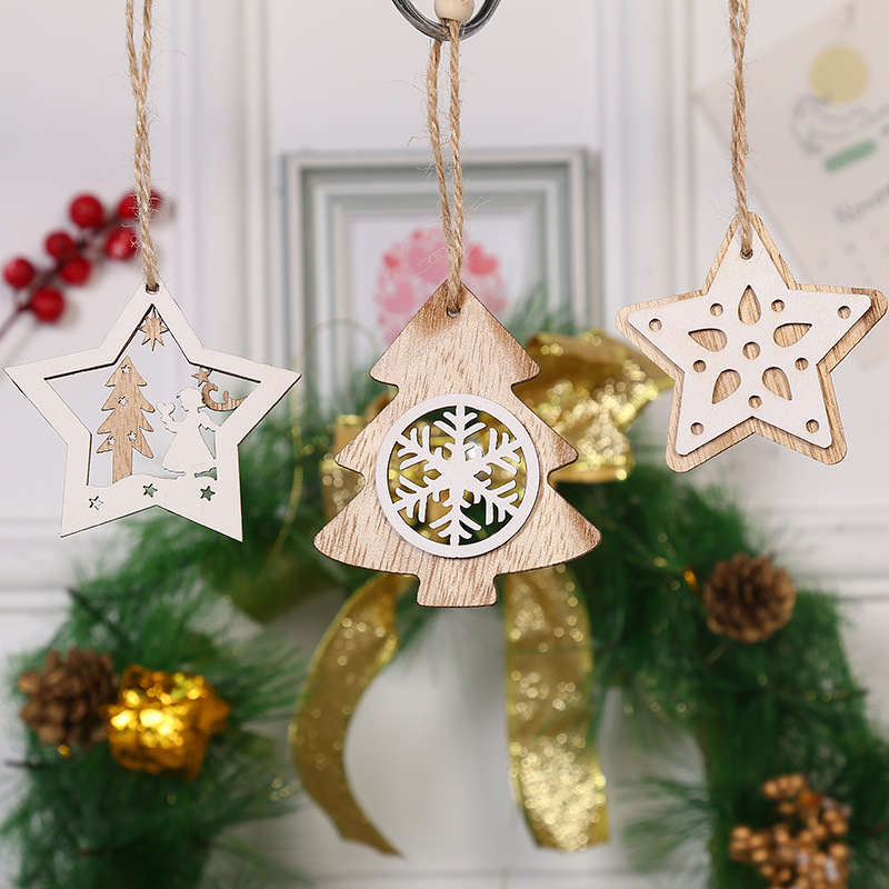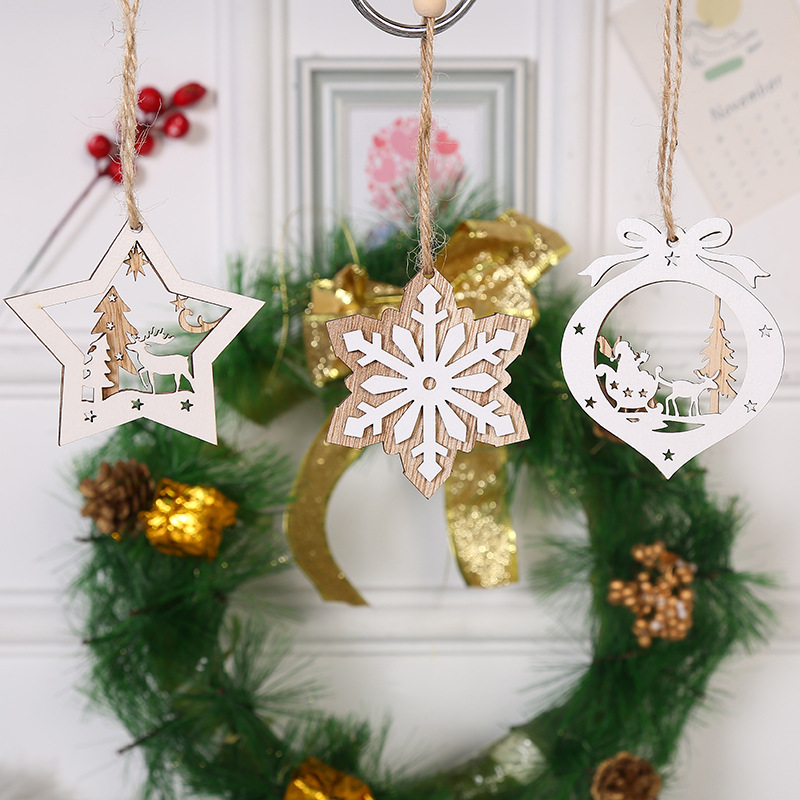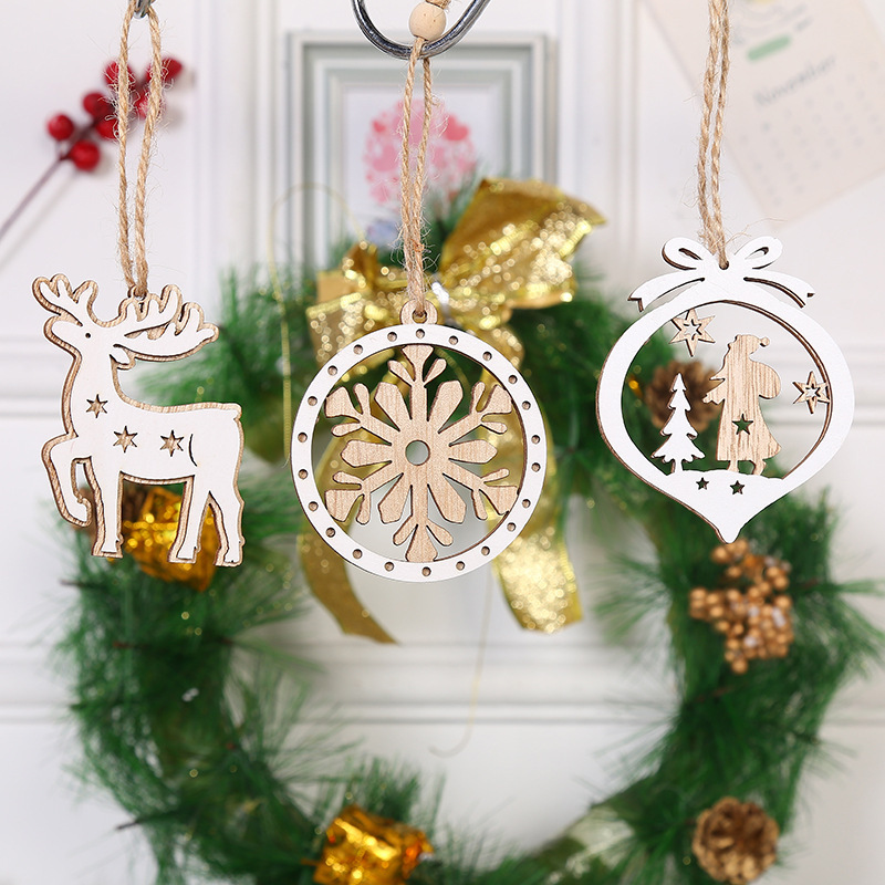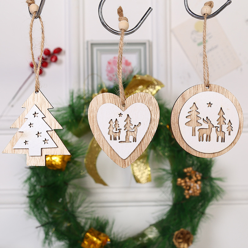 新款圣诞装饰品 木质彩绘圣诞小树装饰挂件 圣诞节小木牌厂家批发