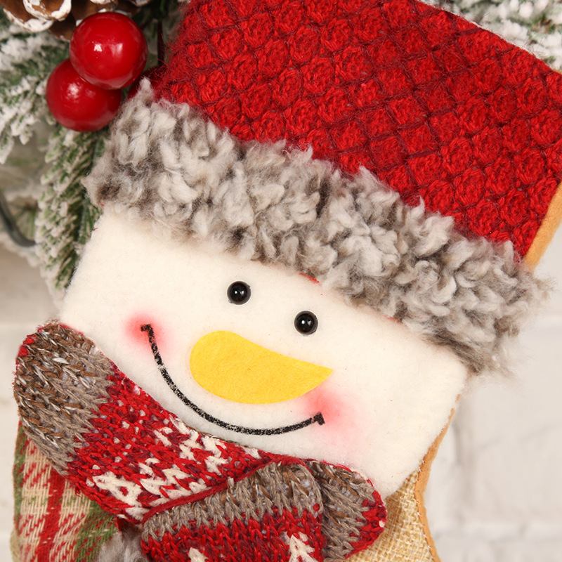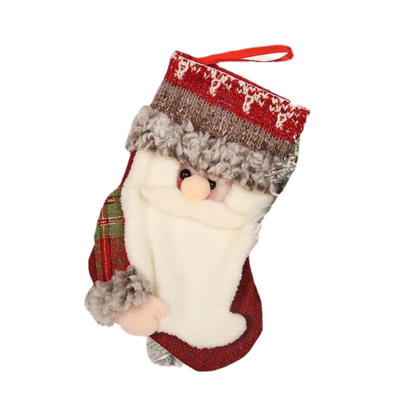 新款圣诞挂件圣诞袜圣诞树挂件小号立体格子布老人公仔圣诞袜子