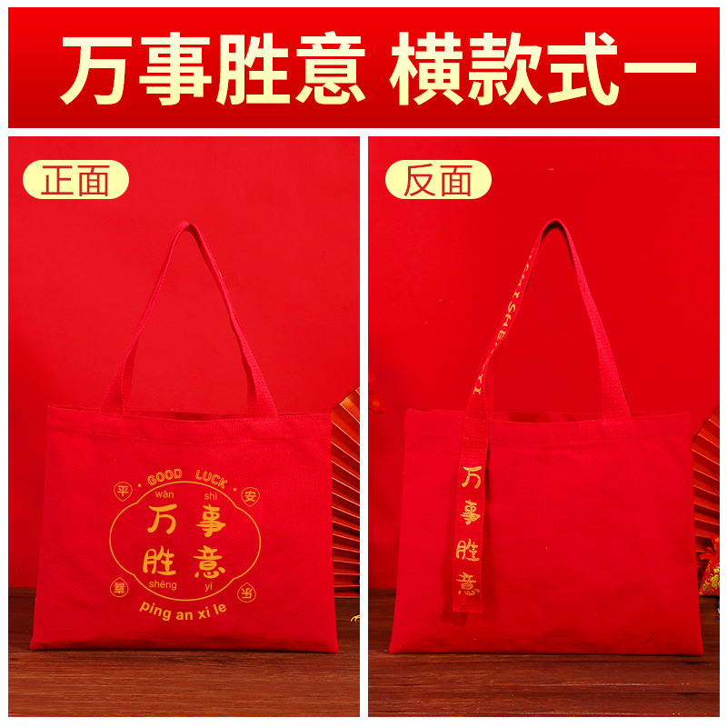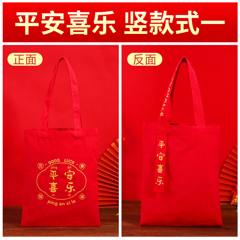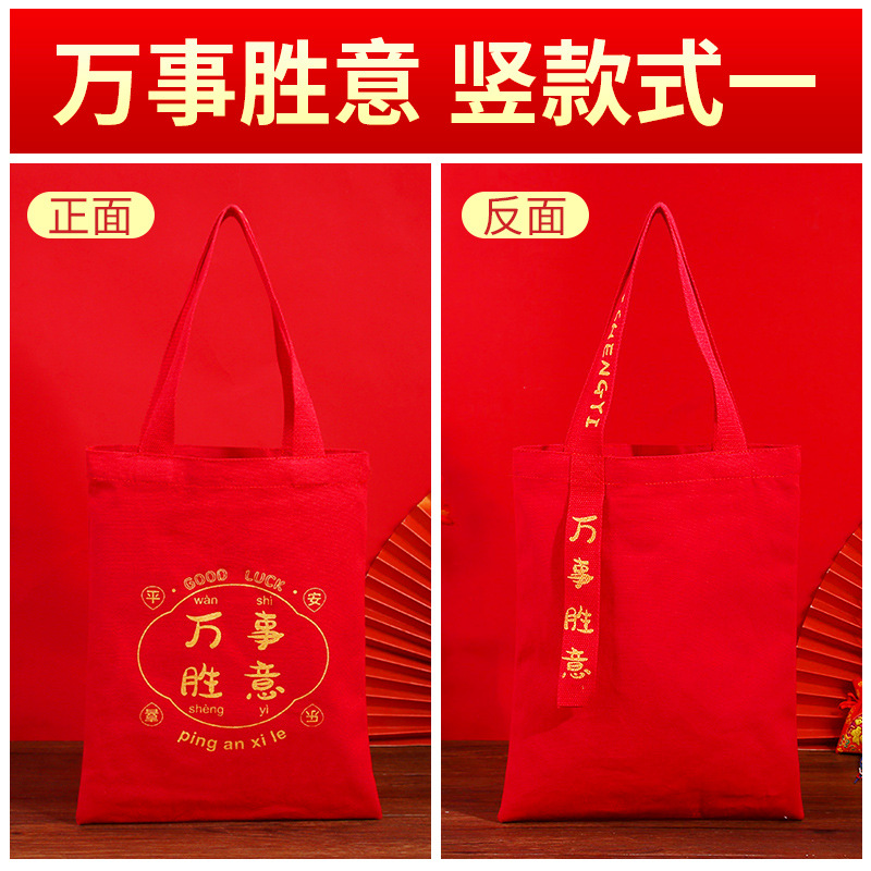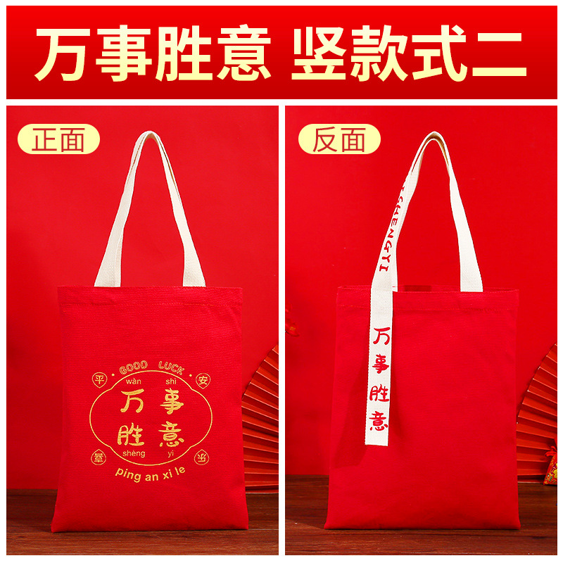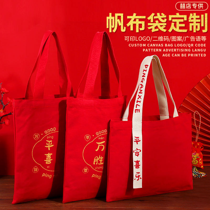 批发现货喜庆红色新年伴手礼帆布袋 婚礼喜糖喜事结婚礼品帆布包