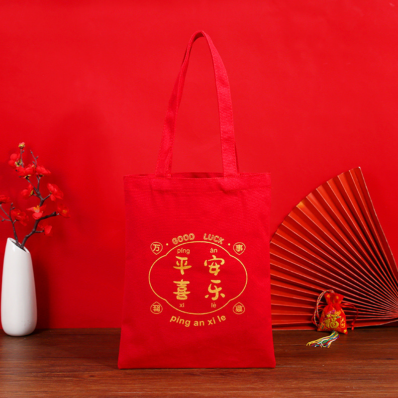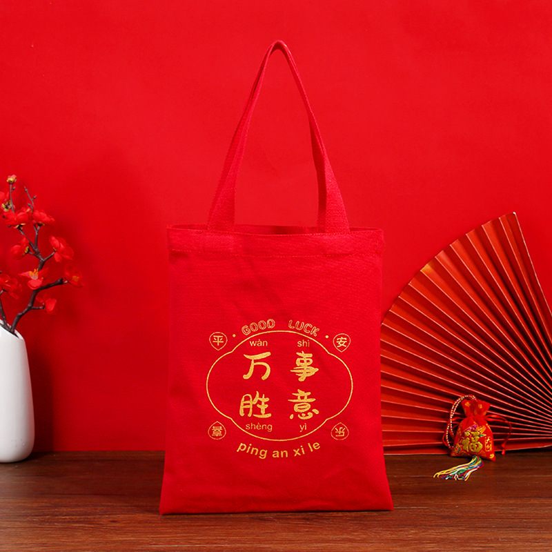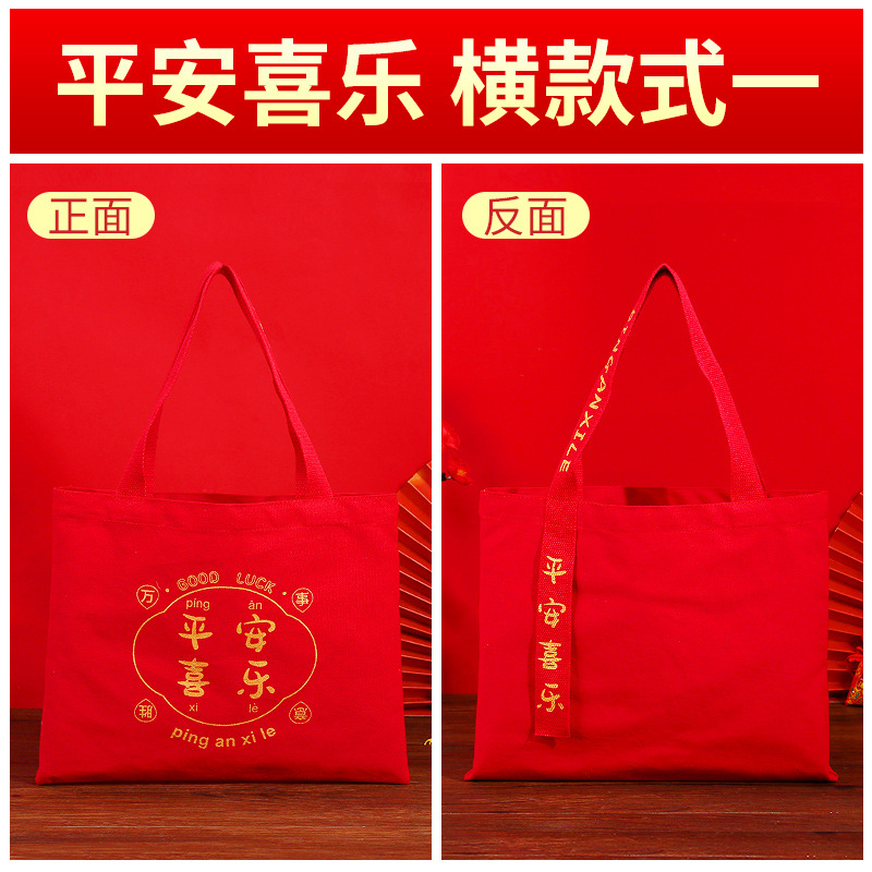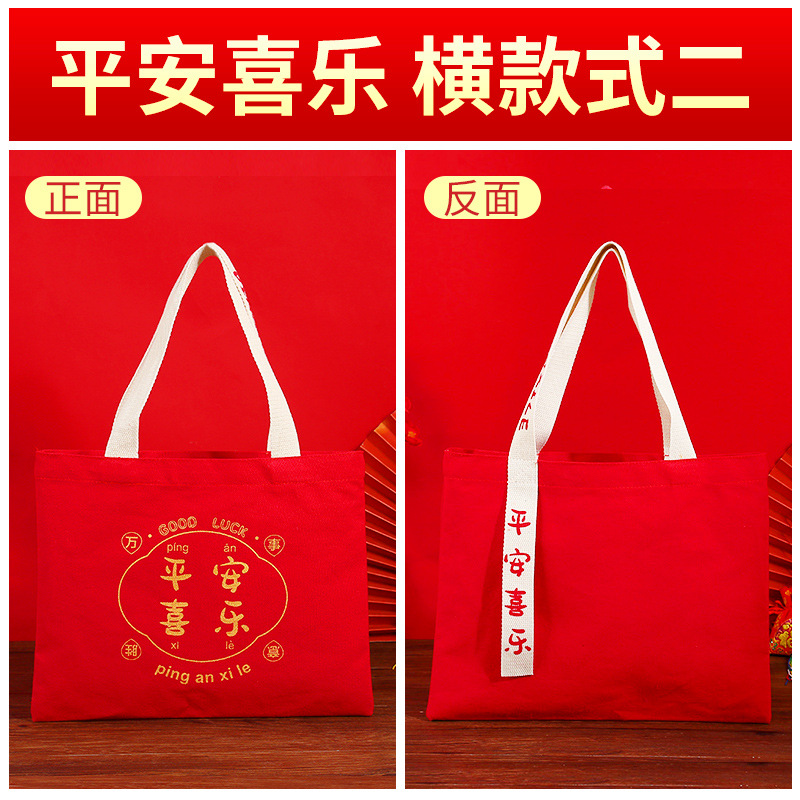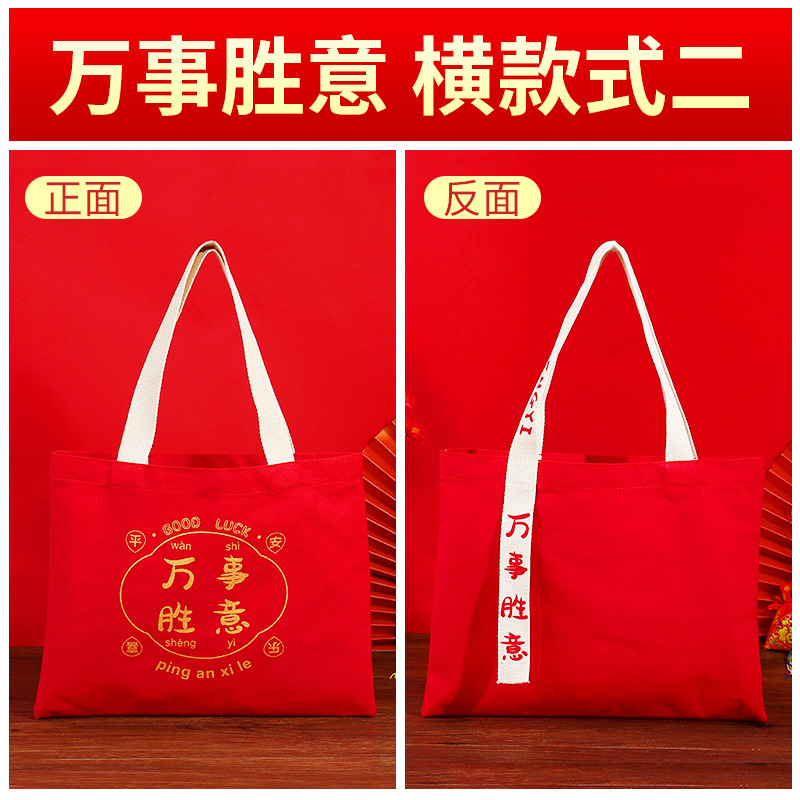 批发现货喜庆红色新年伴手礼帆布袋 婚礼喜糖喜事结婚礼品帆布包