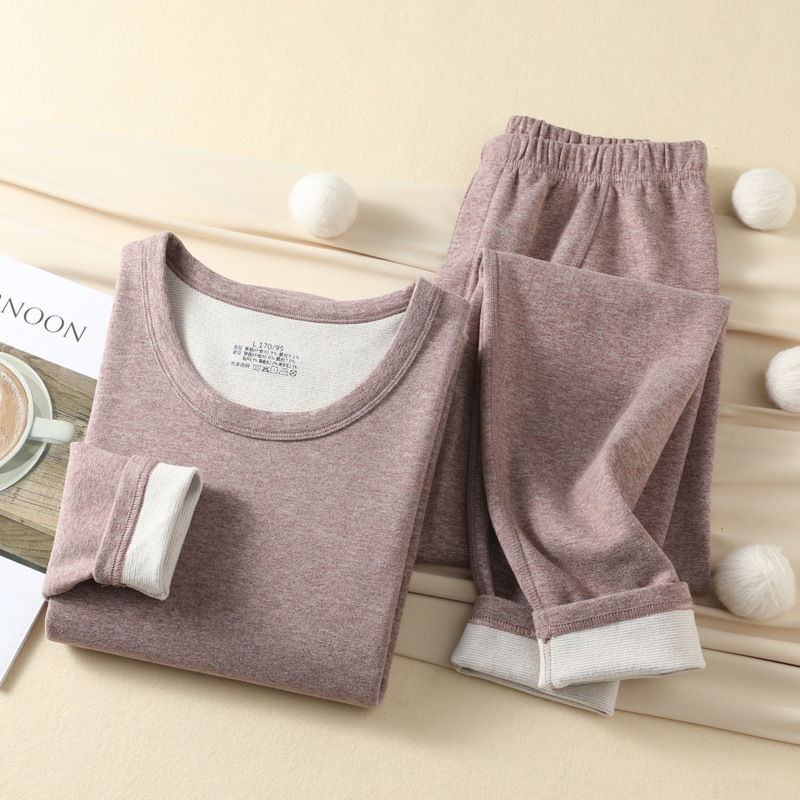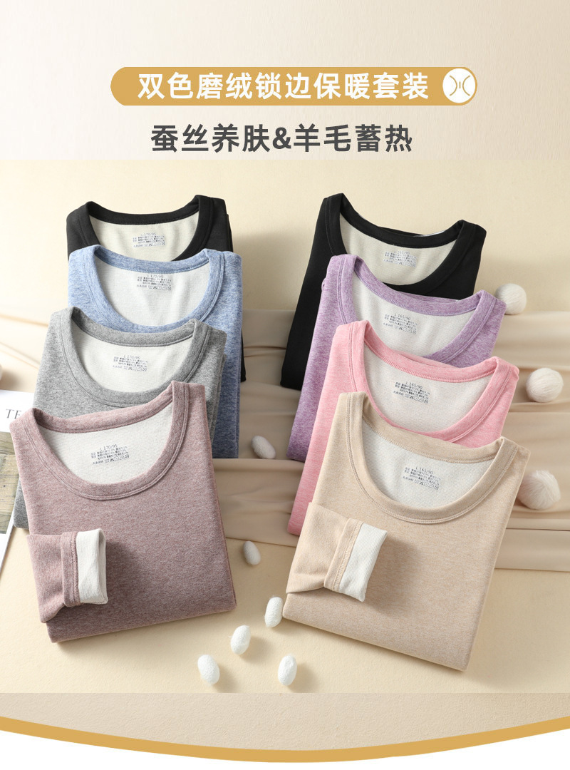 蚕丝羊毛男士保暖内衣女士AB面抗寒蓄热秋衣秋裤套装加绒加厚打底