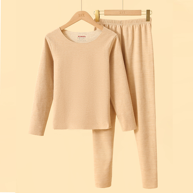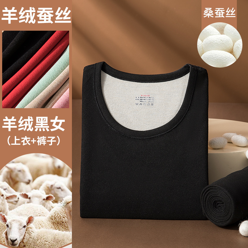 秋冬无痕蚕丝羊绒保暖内衣套装男女士 双面磨毛加绒加厚秋衣秋裤