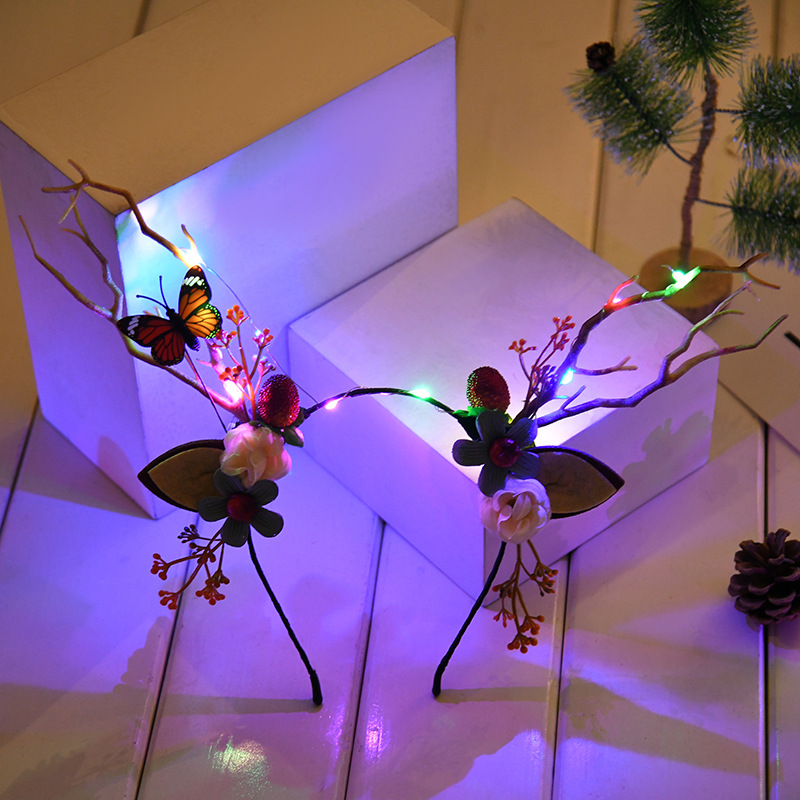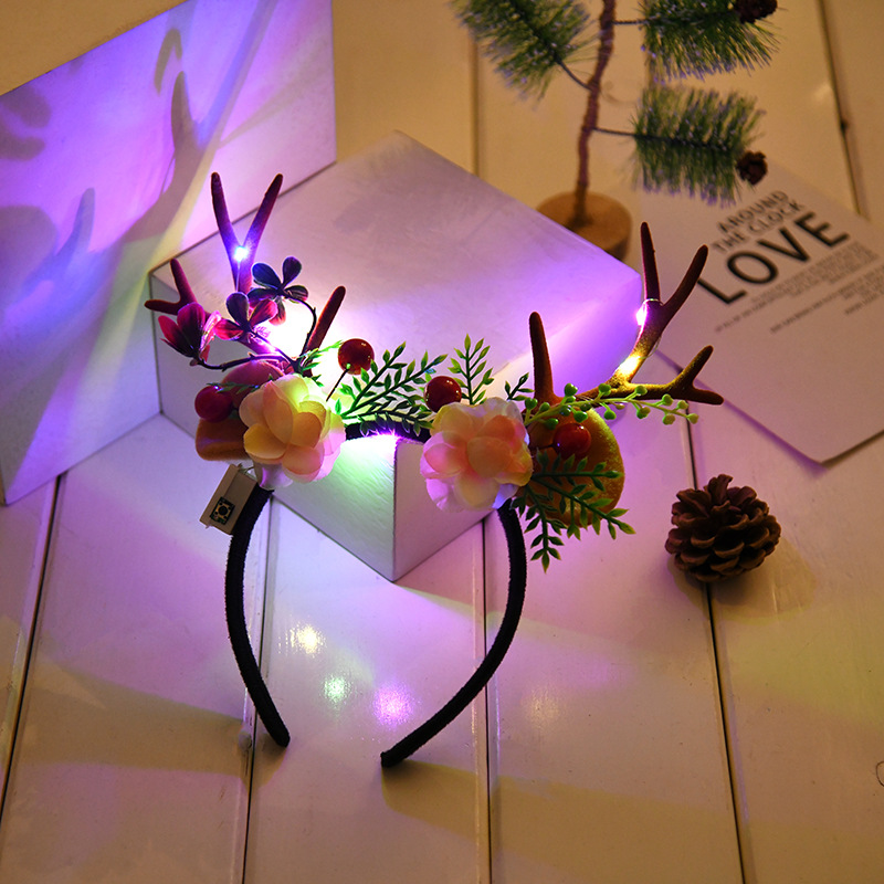 圣诞节狂欢创意头饰鹿角发箍发光麋鹿头箍派对创意道具儿童礼物