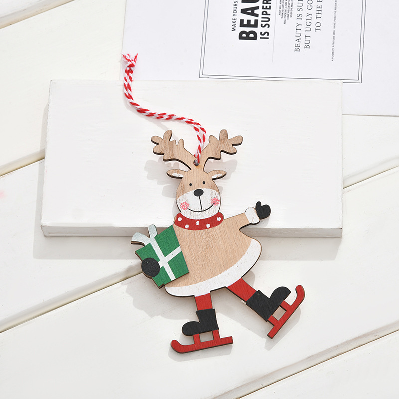 新款圣诞节装饰品彩绘木质挂件圣诞节圣诞树挂饰装饰圣诞木小挂件