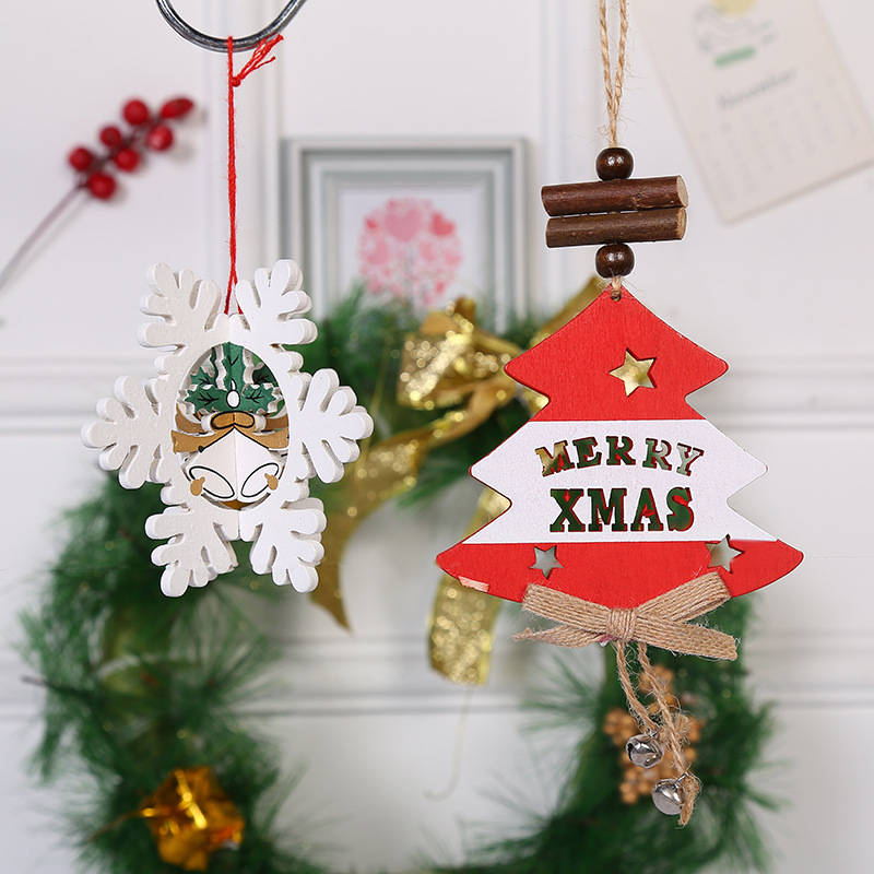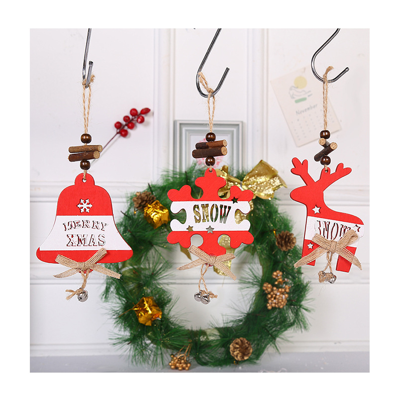 圣诞树装饰挂件木质铃铛小鹿雪花树挂件圣诞节日礼品店门头装饰品