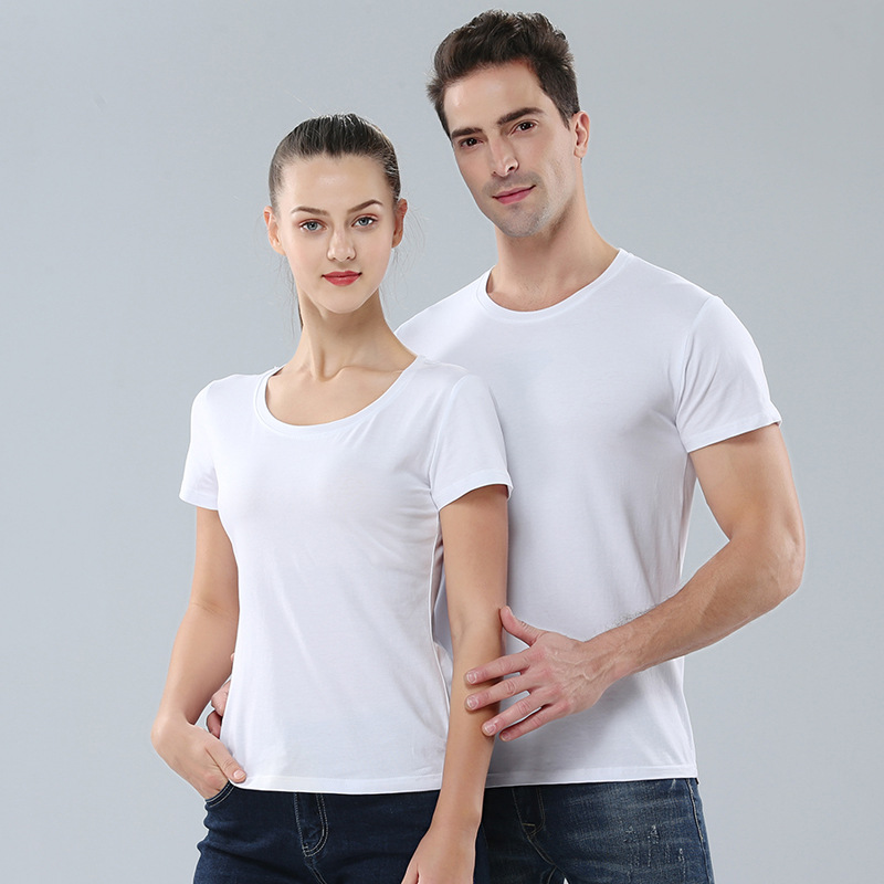 现货批发莫代尔热升华圆领短袖情侣T恤 团体工作服广告衫印字logo