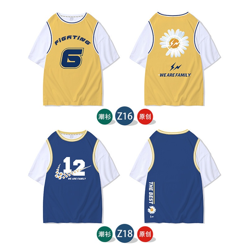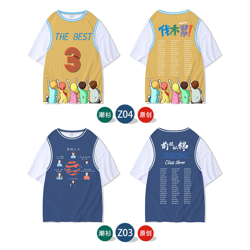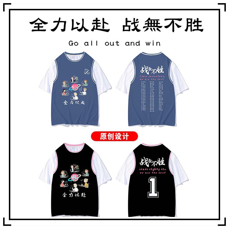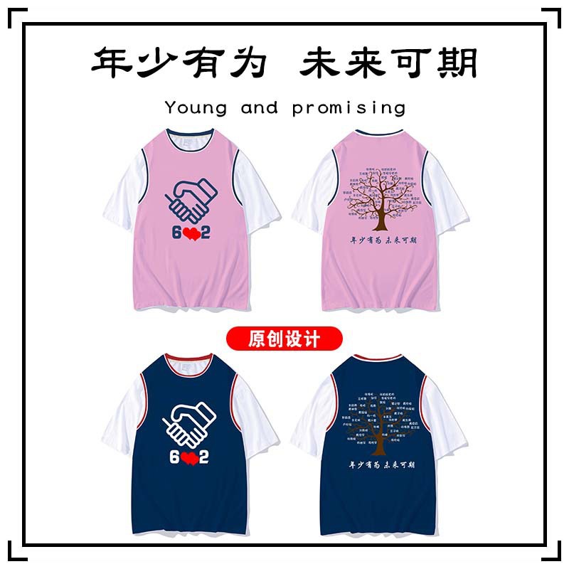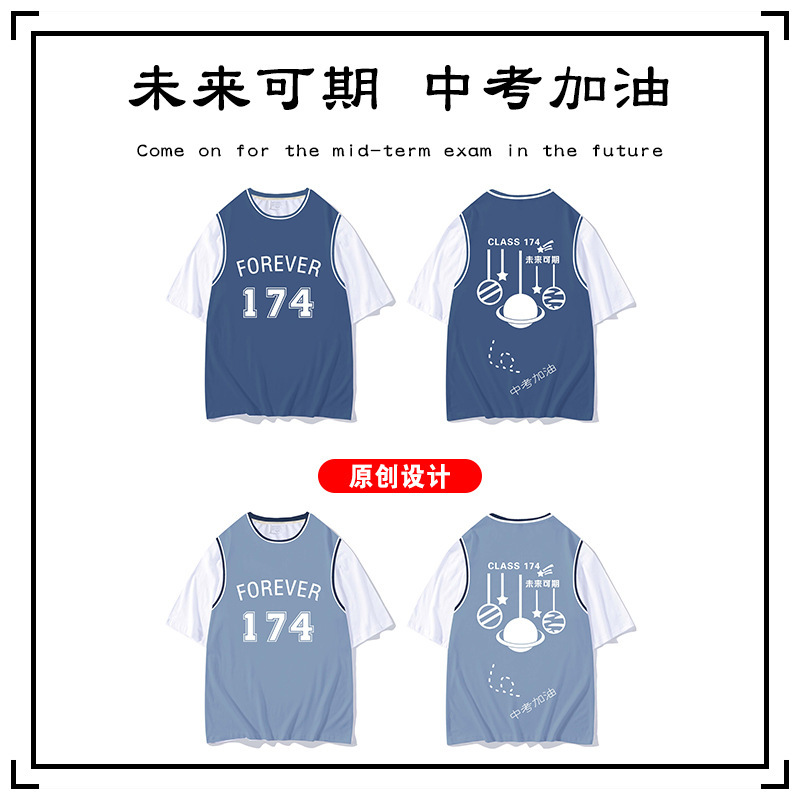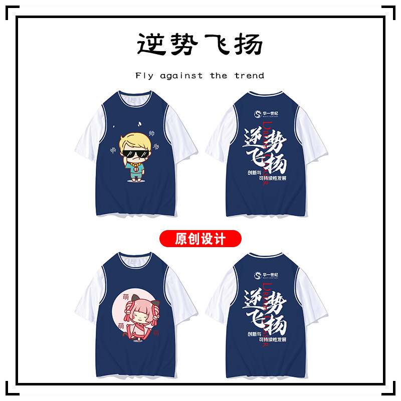 夏班服定制t恤假两件学生diy短袖全身印订班服广告衫文化衫印logo