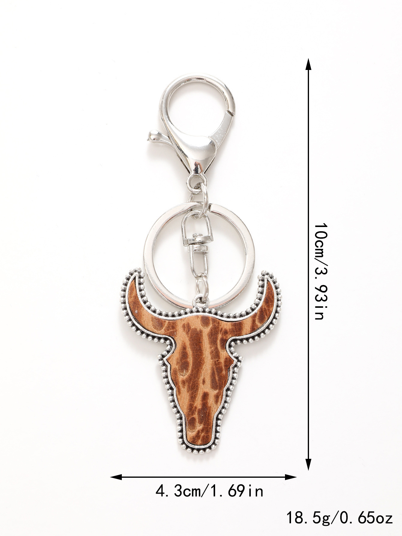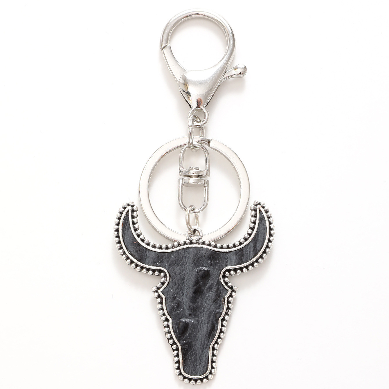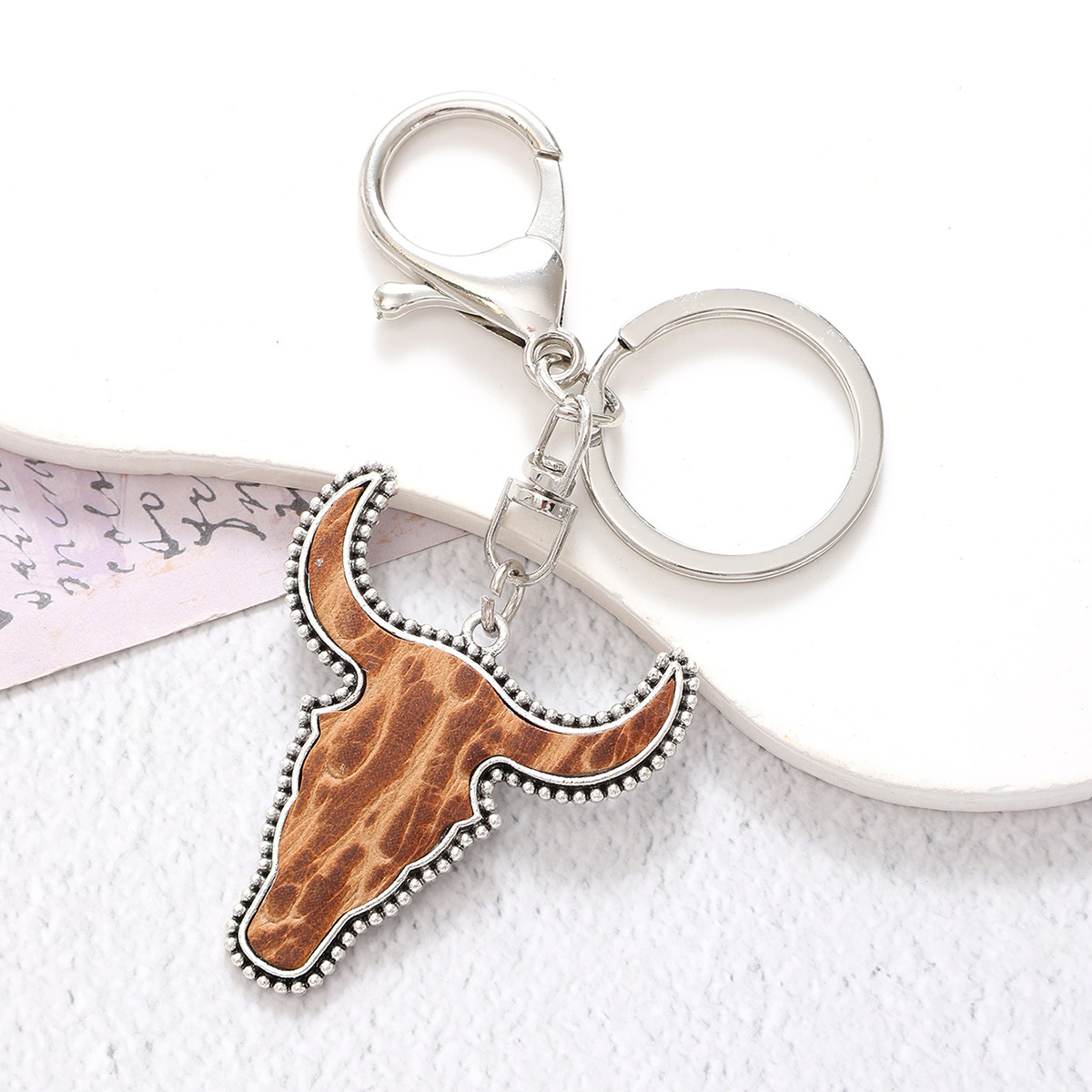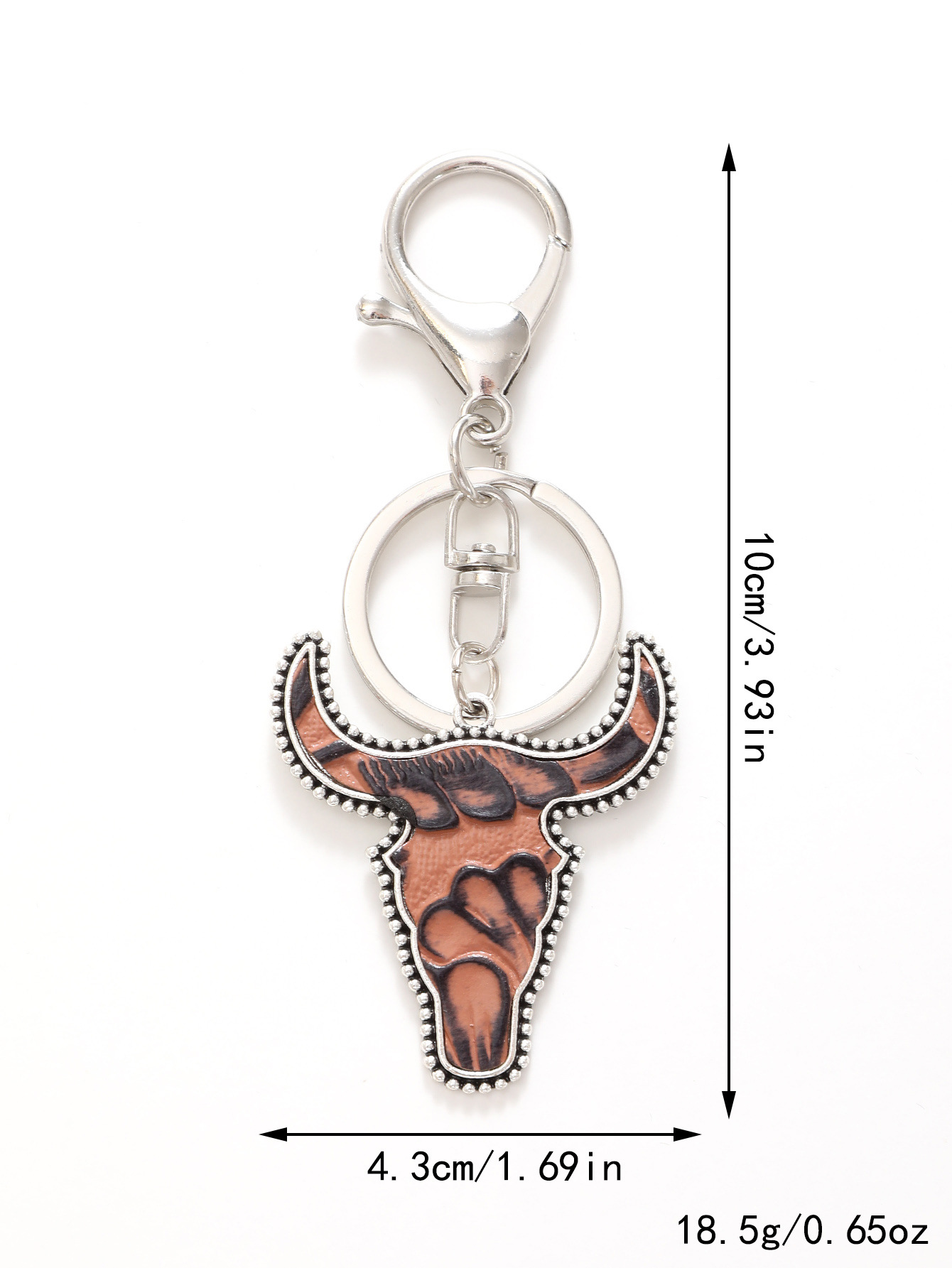 新款合金牛头形状真皮 皮革钥匙扣包包汽车挂件跨境欧美亚马逊