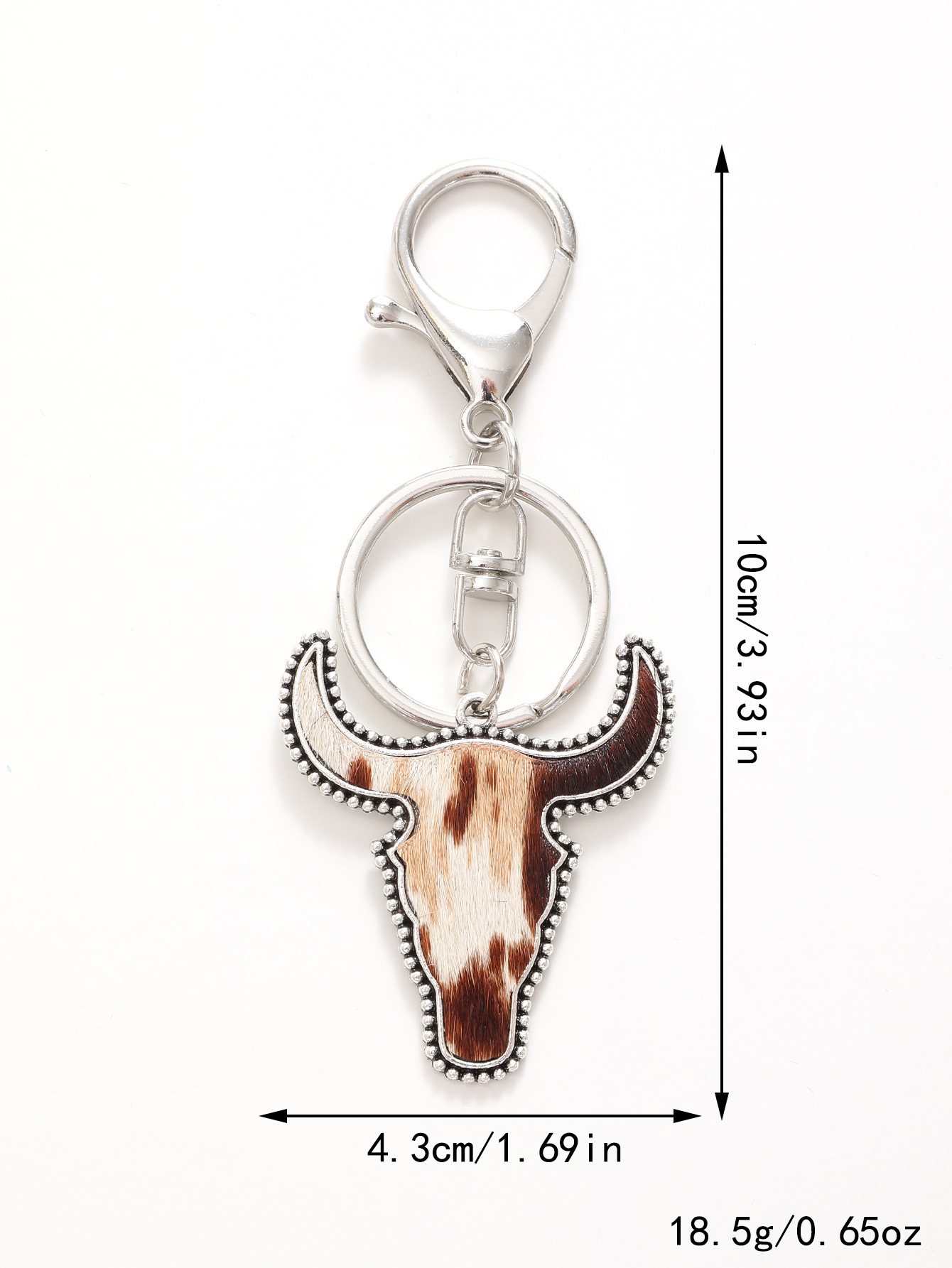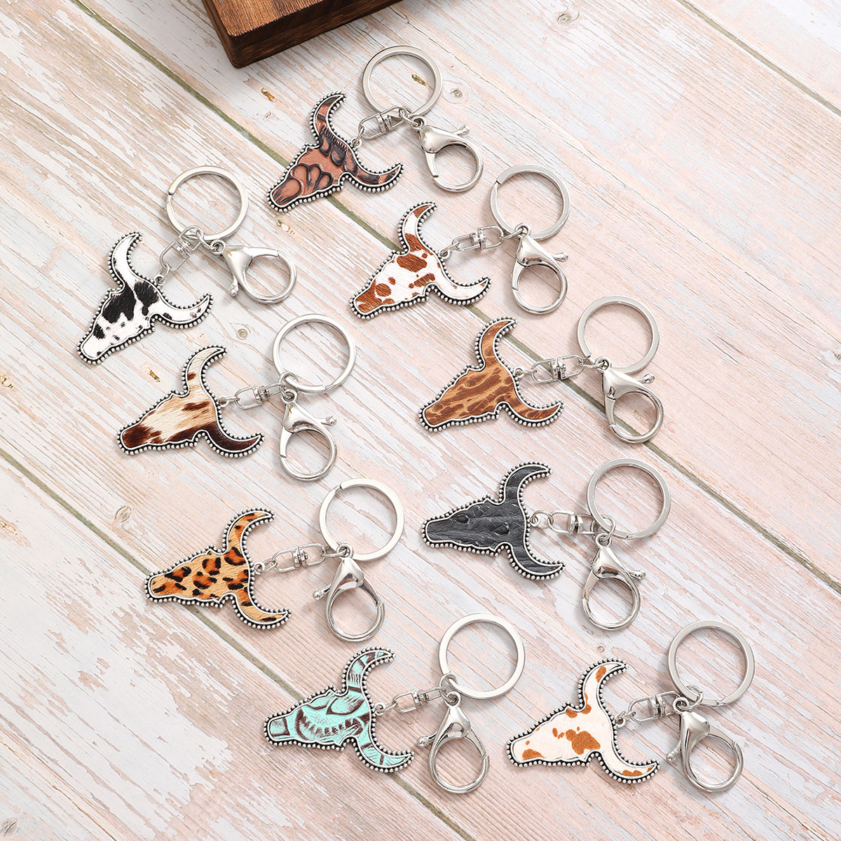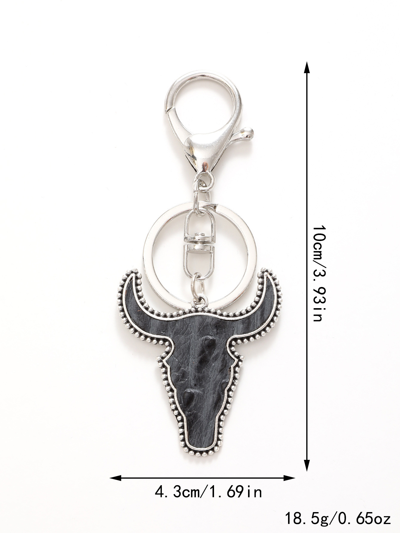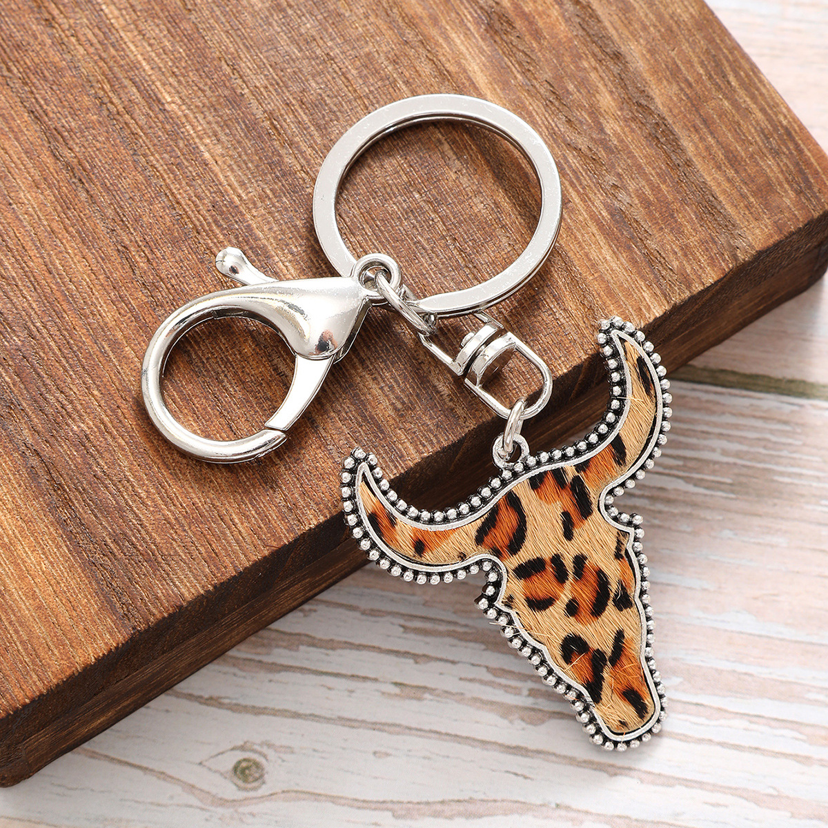 新款合金牛头形状真皮 皮革钥匙扣包包汽车挂件跨境欧美亚马逊