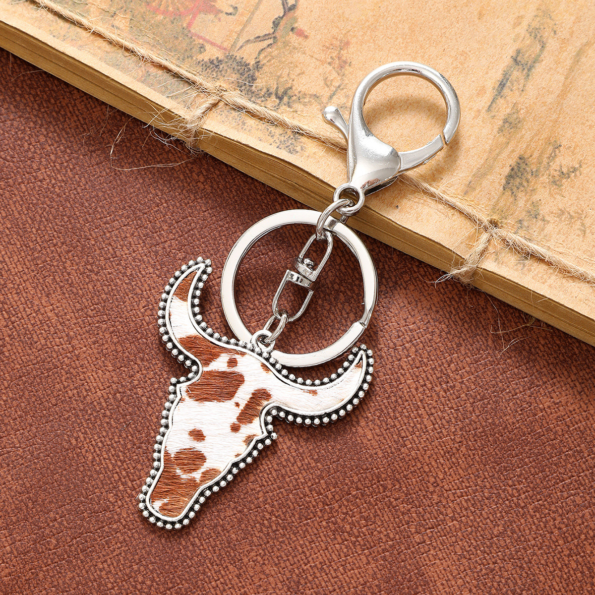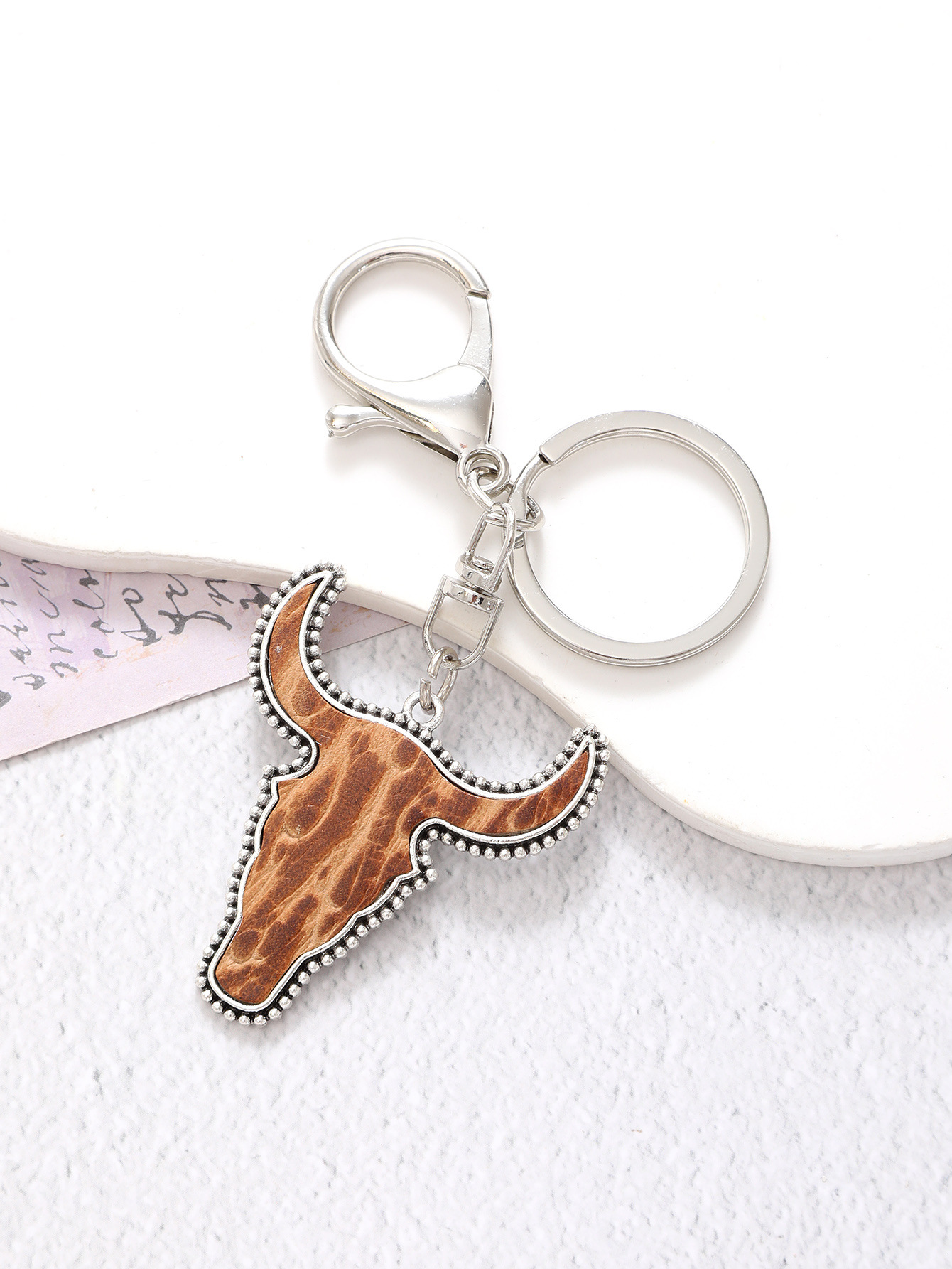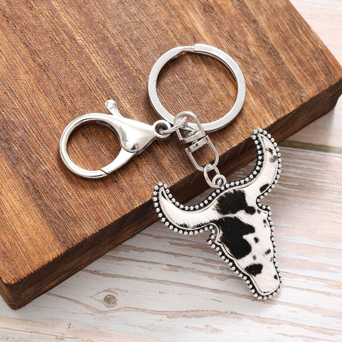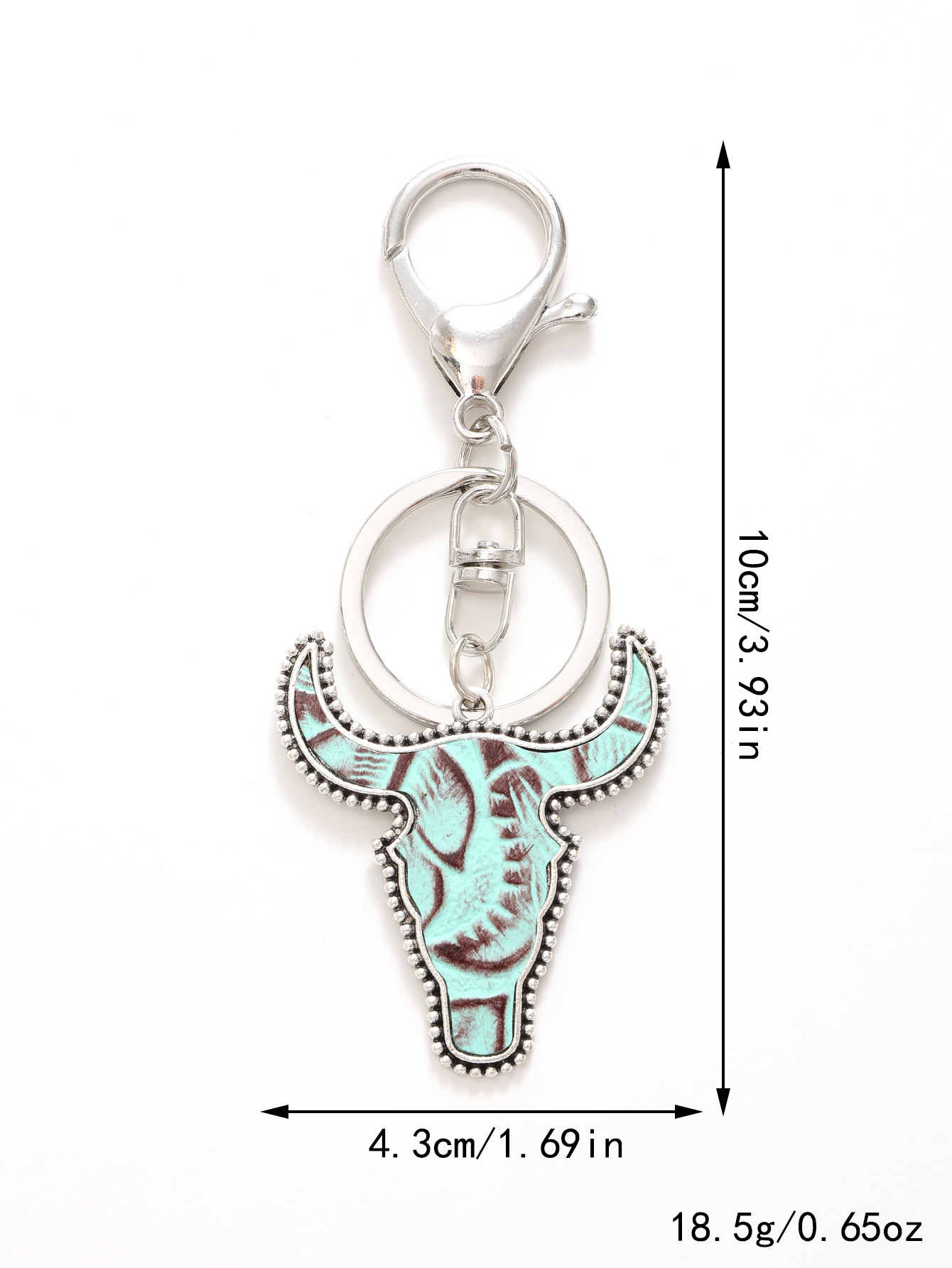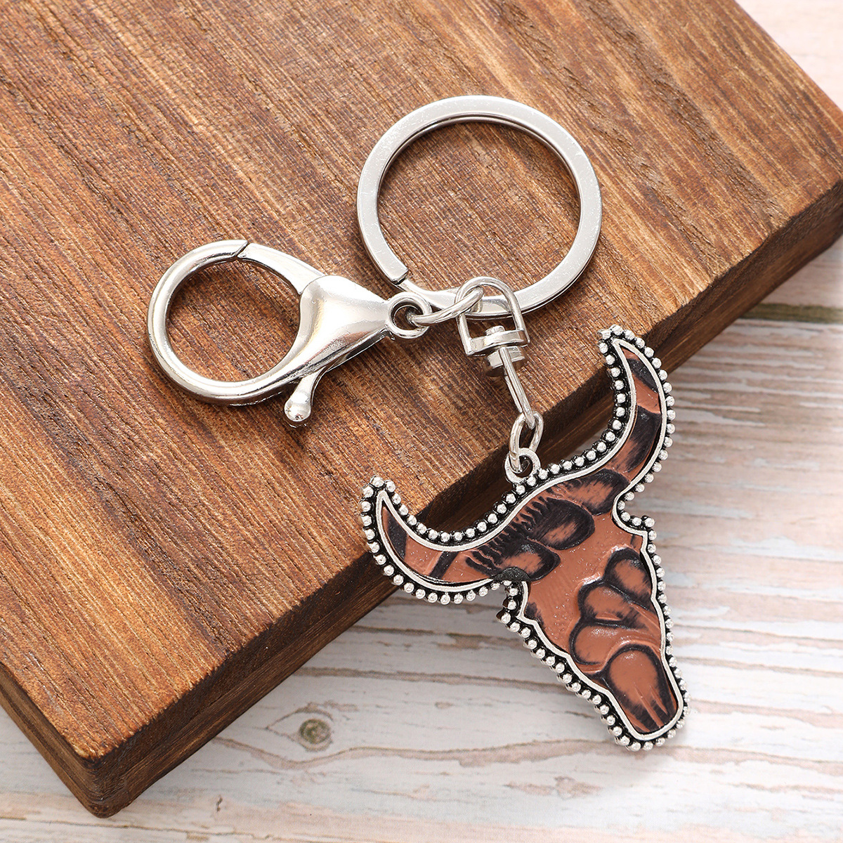 新款合金牛头形状真皮 皮革钥匙扣包包汽车挂件跨境欧美亚马逊