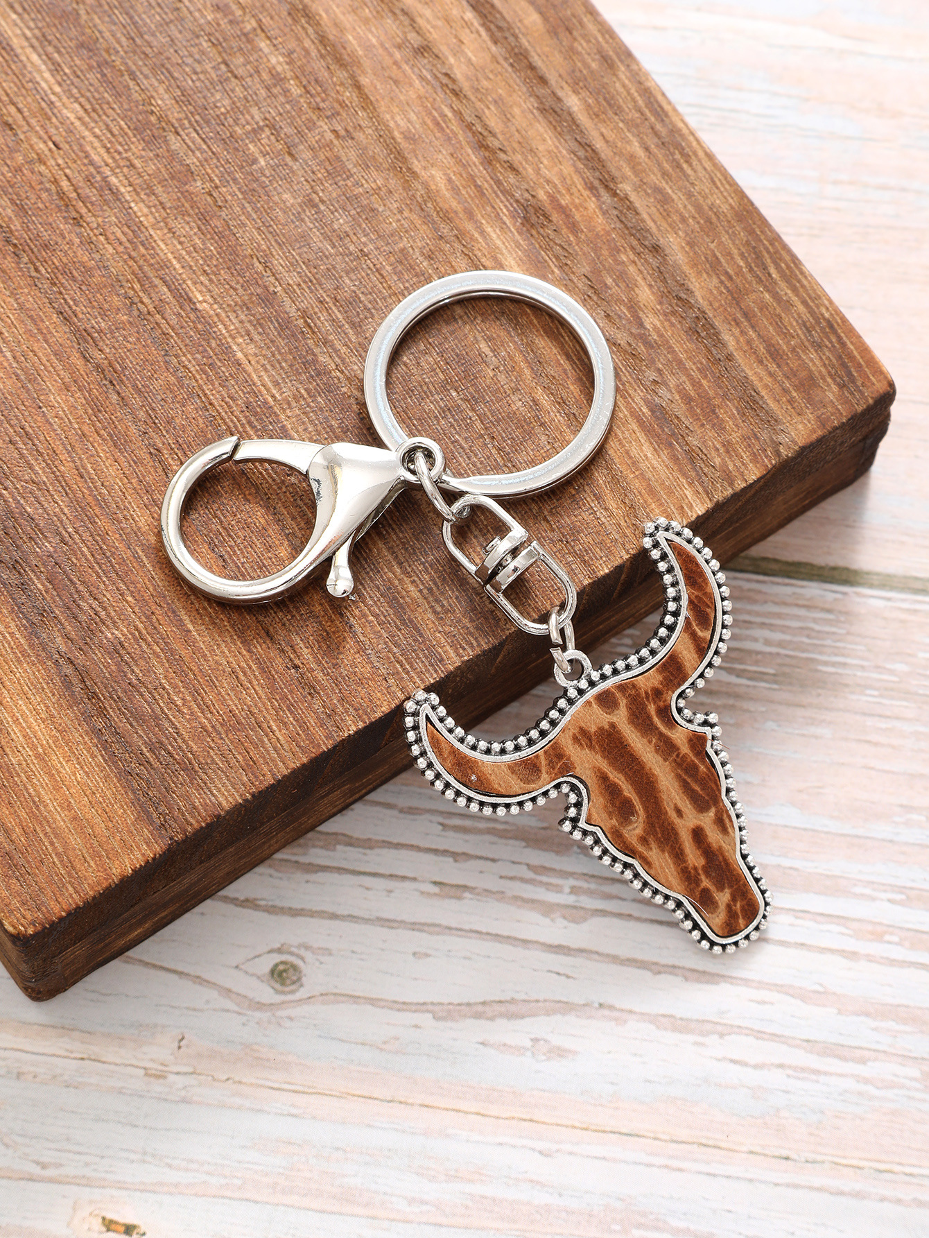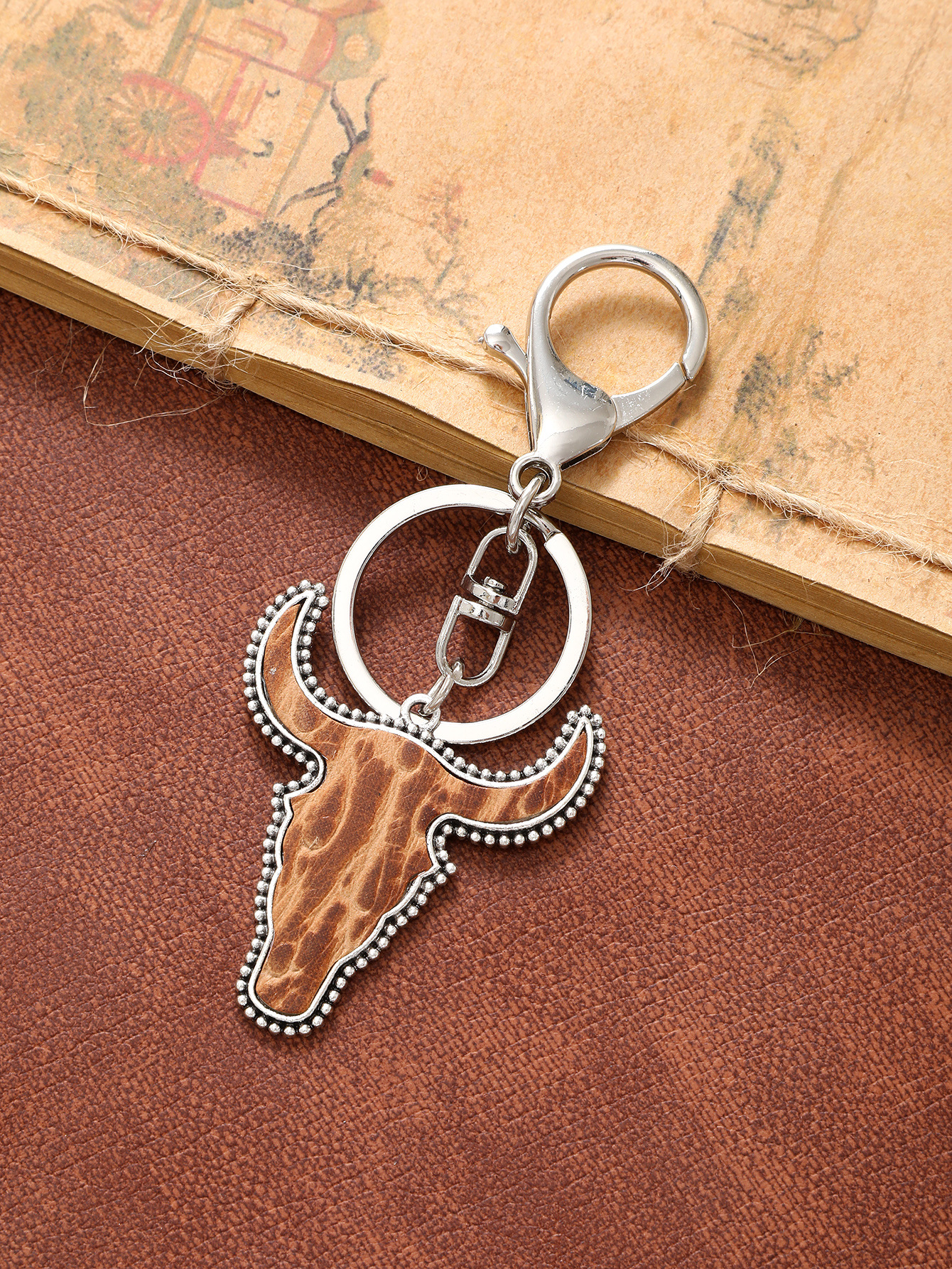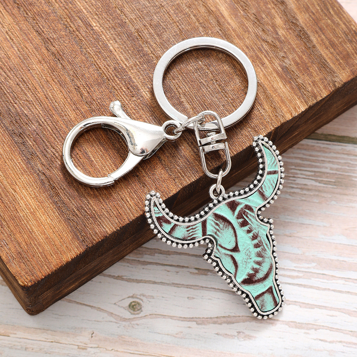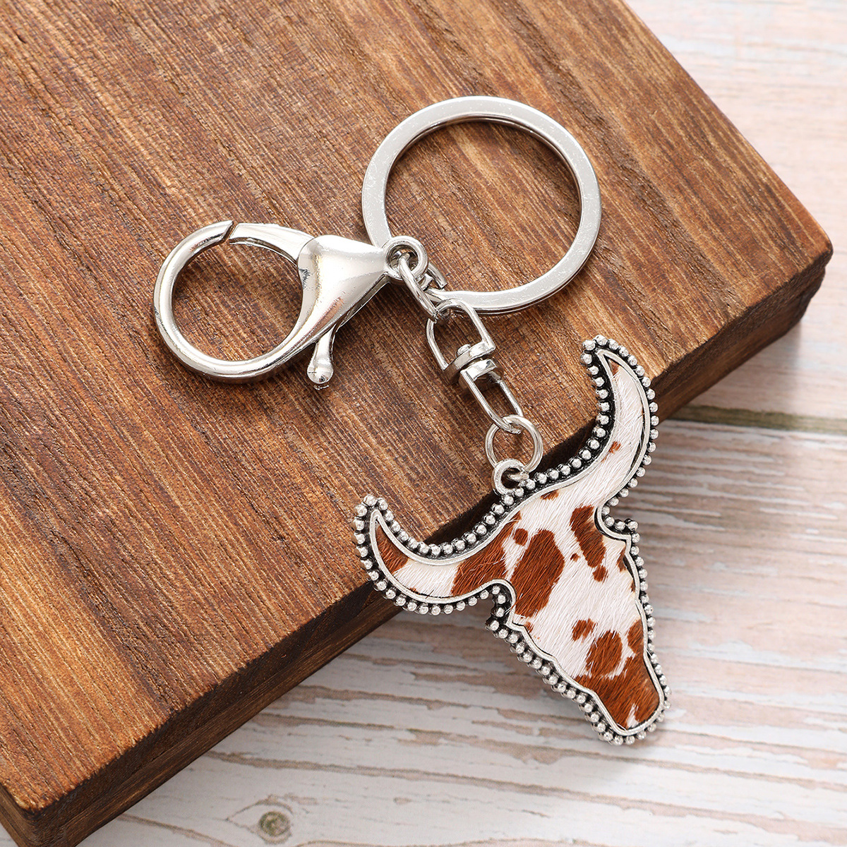 新款合金牛头形状真皮 皮革钥匙扣包包汽车挂件跨境欧美亚马逊