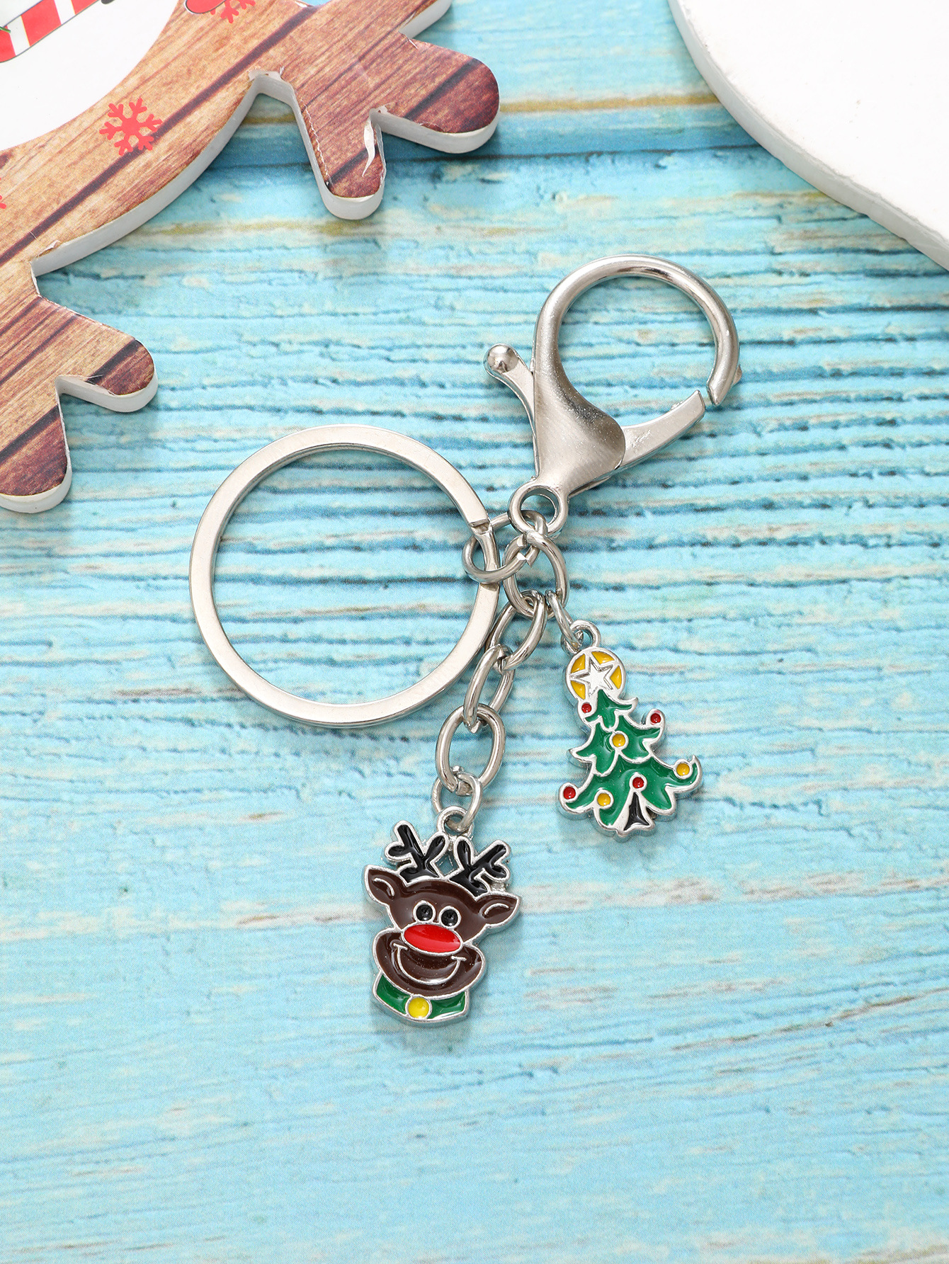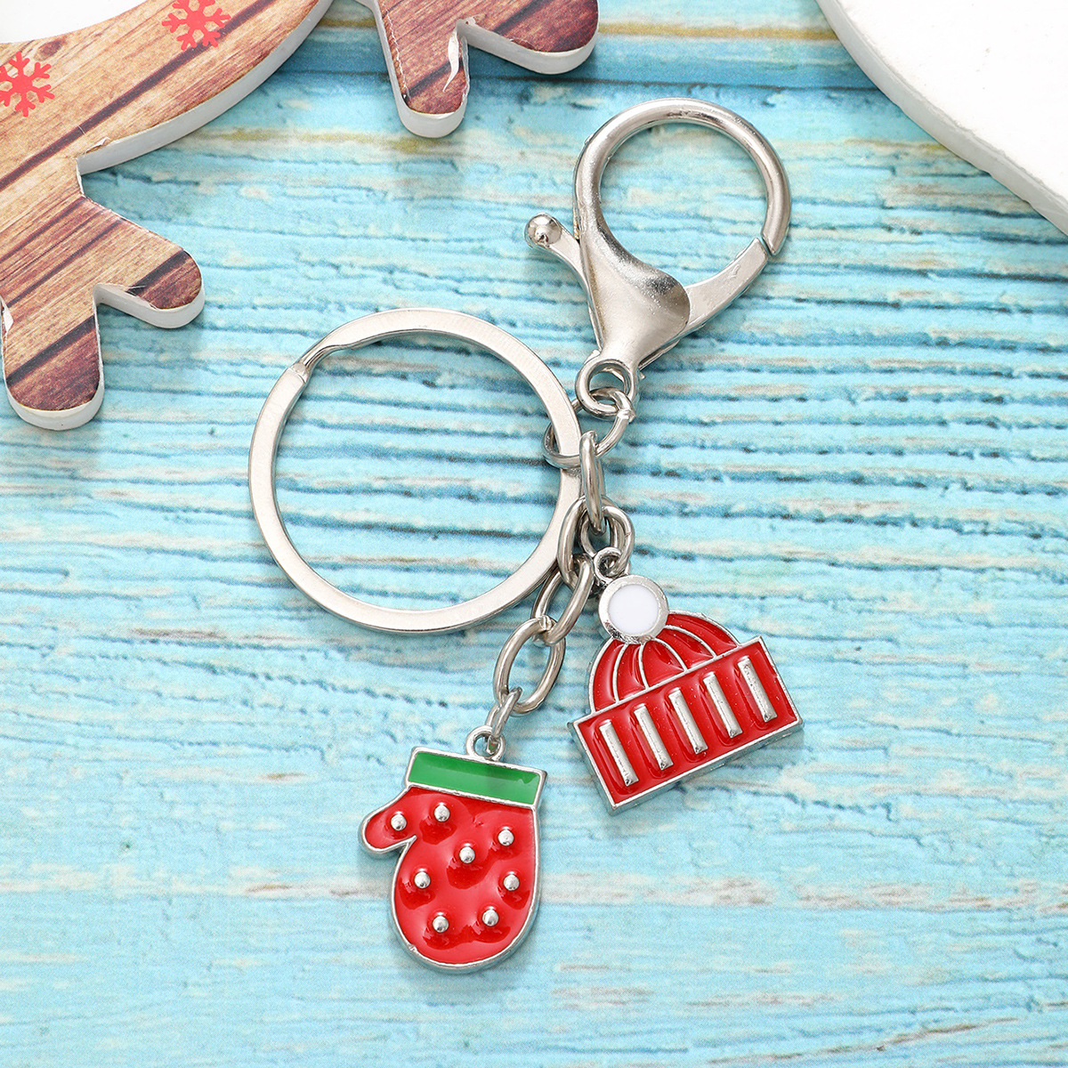 新款圣诞节钥匙扣合金圣诞老人手套圣诞树可爱配件跨境欧美亚马