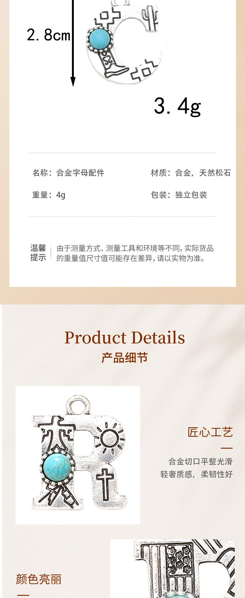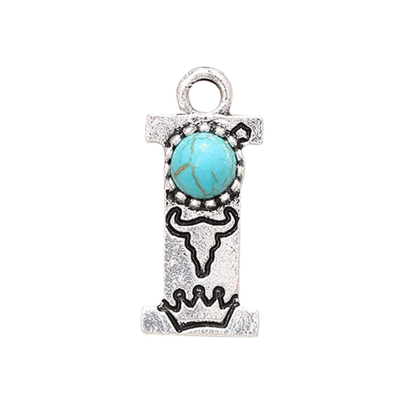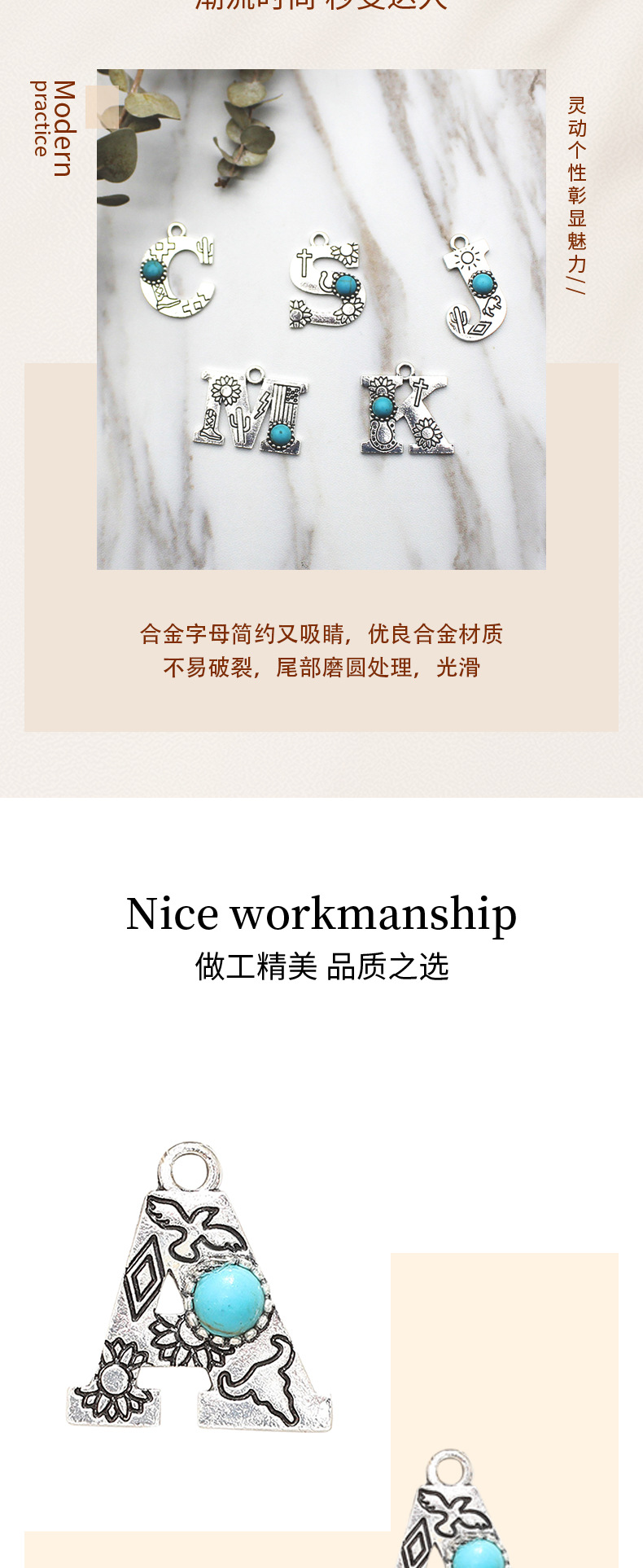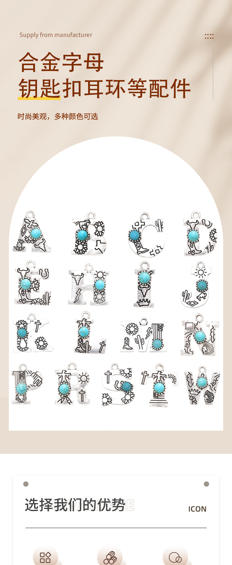 新款合金字母钥匙扣配件绿色天然松石耳环耳饰吊坠跨境欧美亚马逊