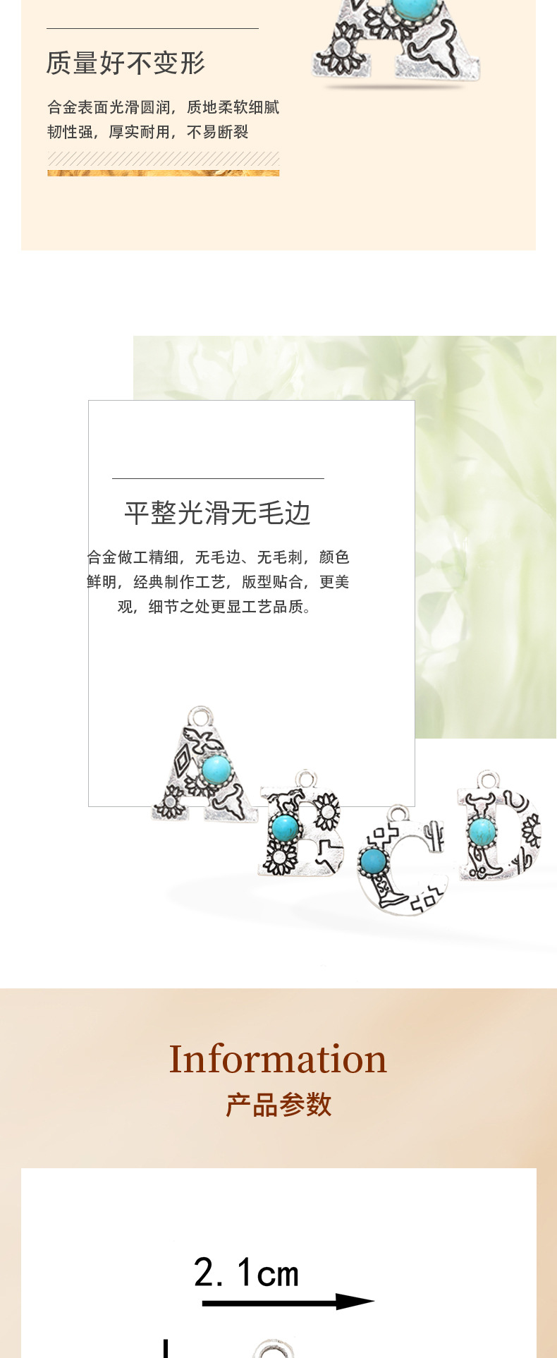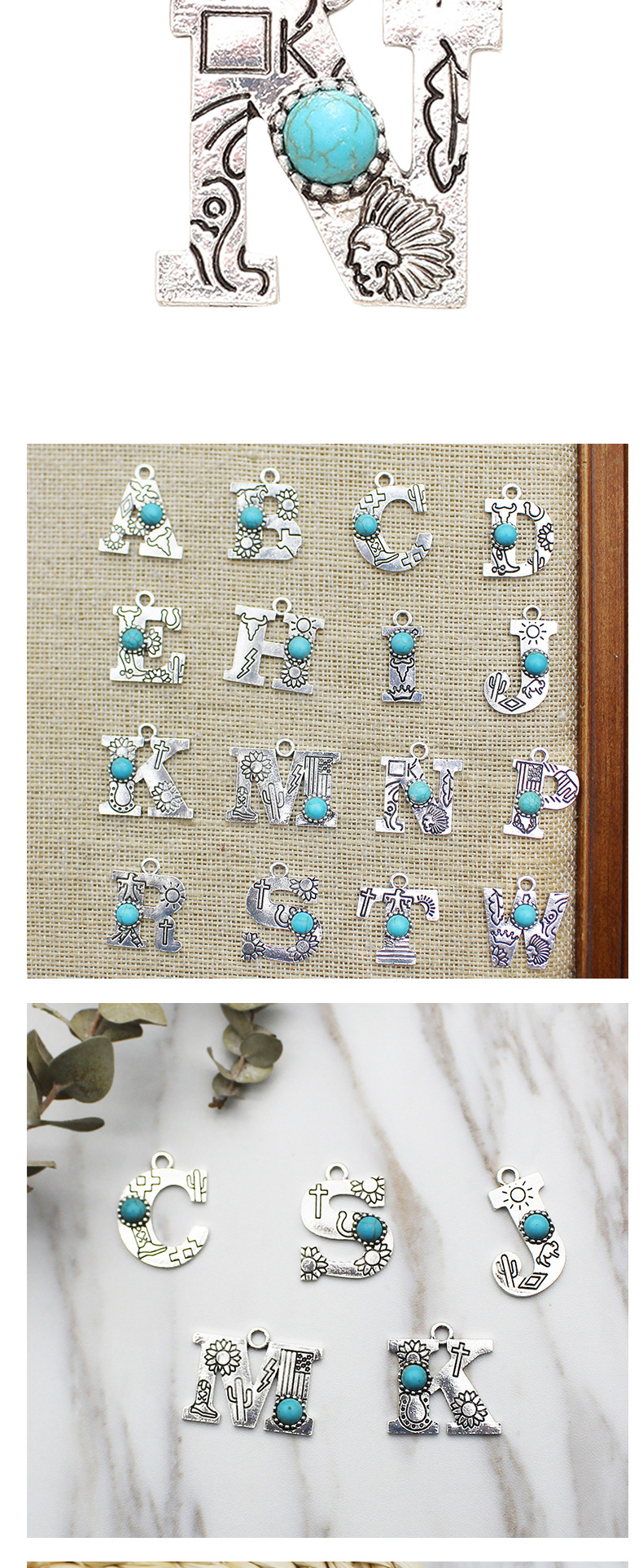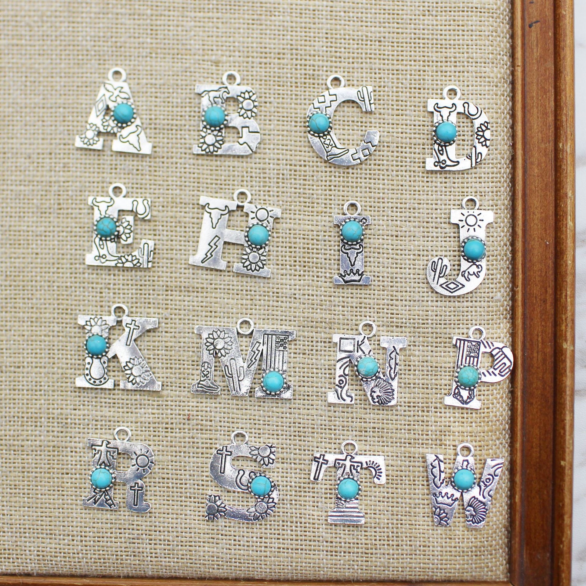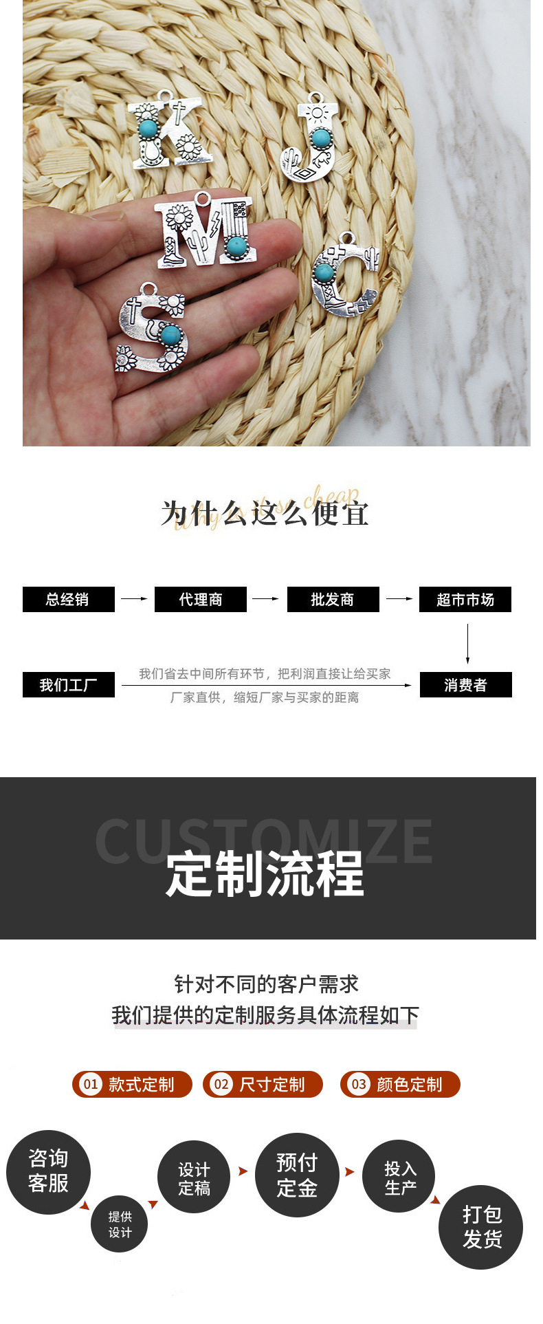 新款合金字母钥匙扣配件绿色天然松石耳环耳饰吊坠跨境欧美亚马逊