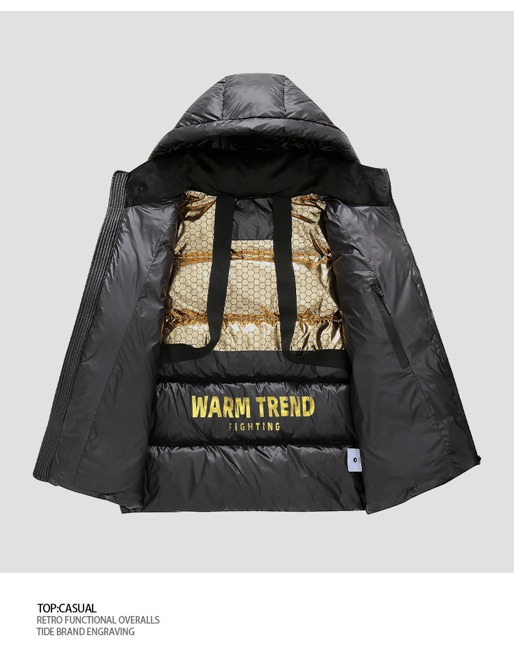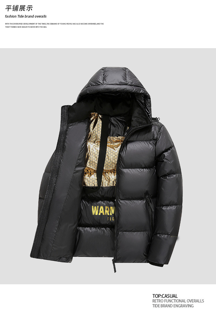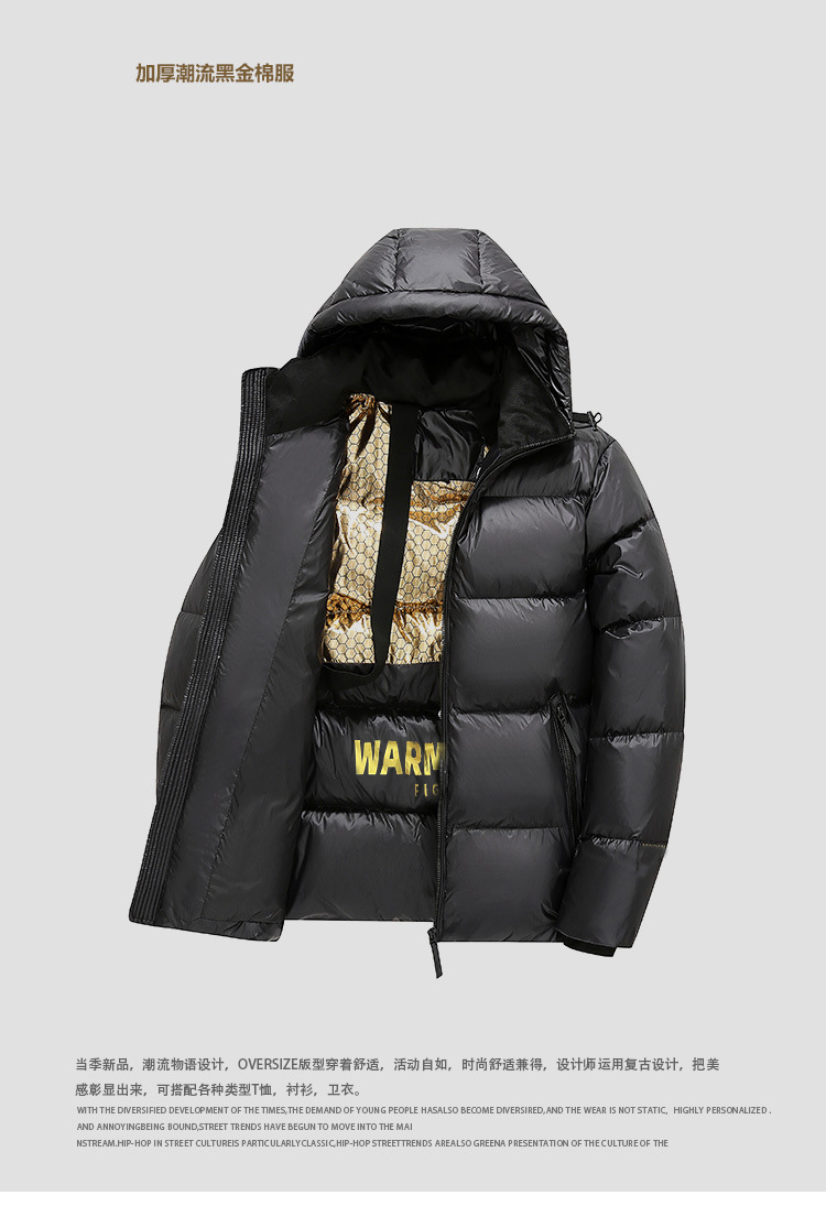 cross-border black and gold cotton-padded coat men‘s winter thickened padded jacket 2023 new short hood bread coat men‘s coat men
