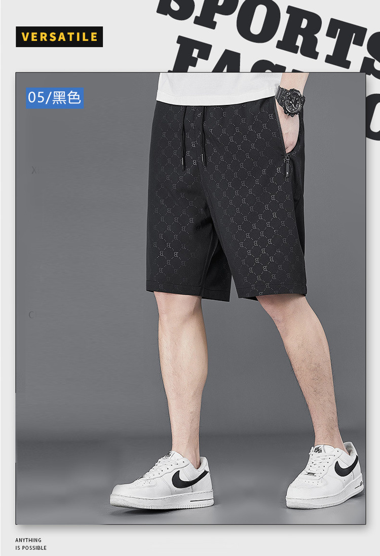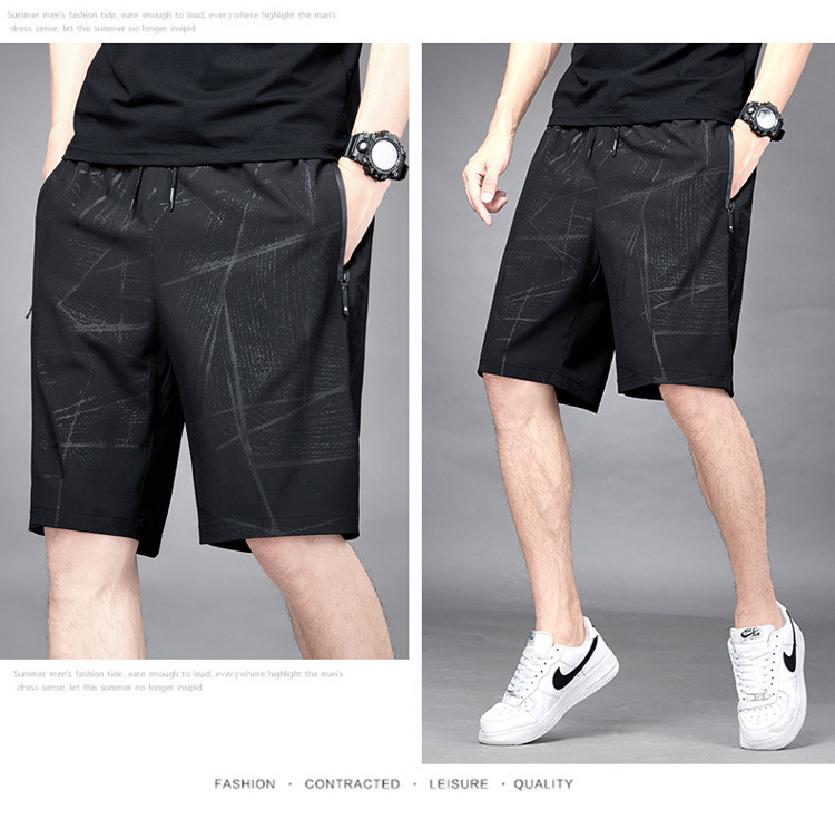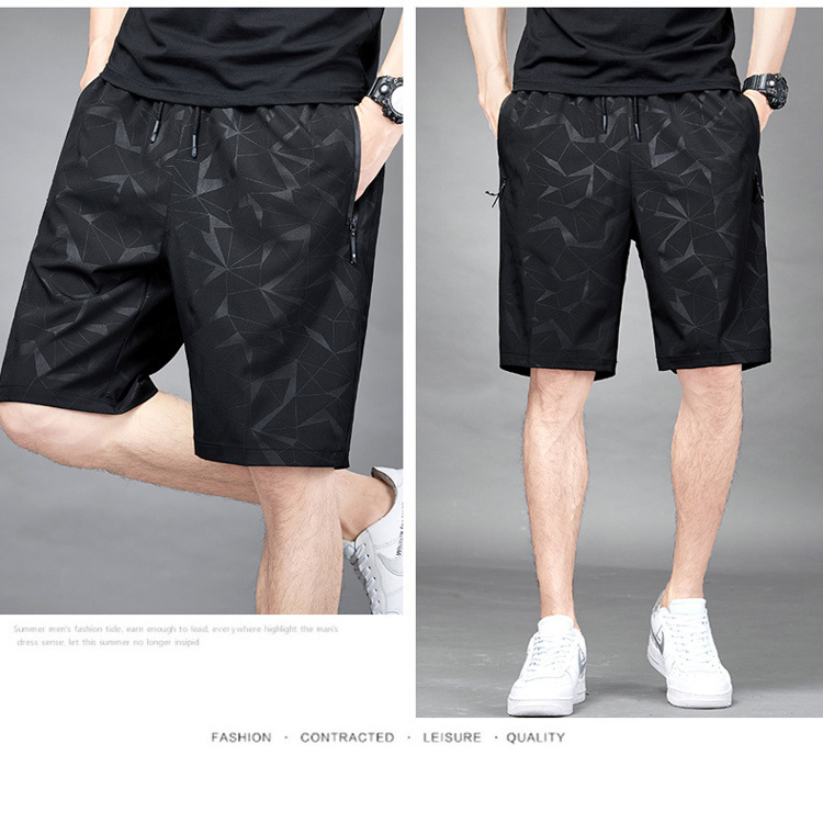 跨境夏季男士短裤潮流休闲大码速干短裤花纹沙滩裤五分裤运动裤