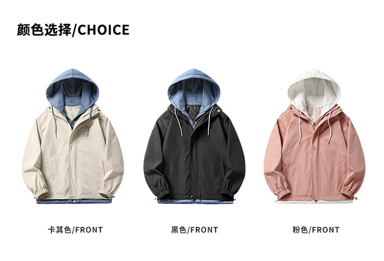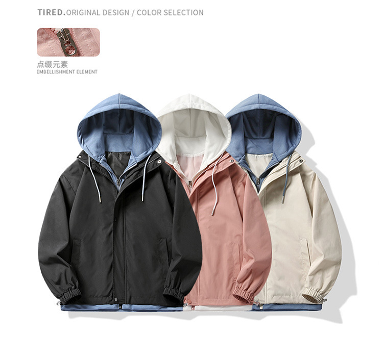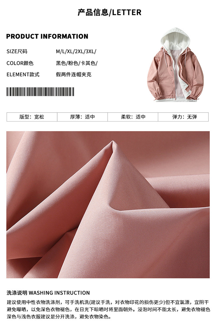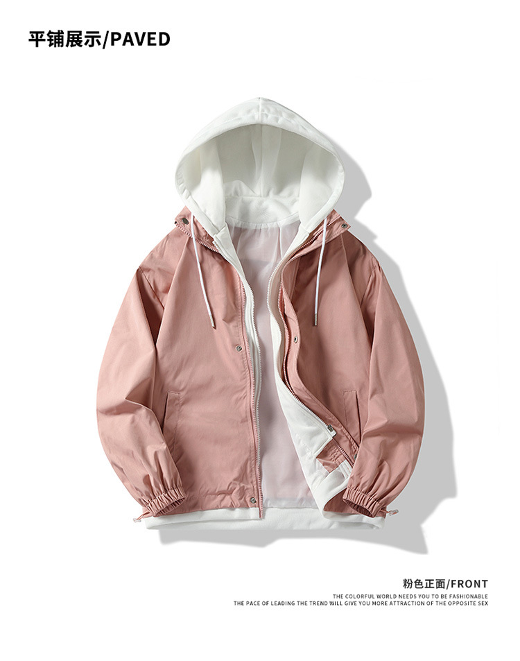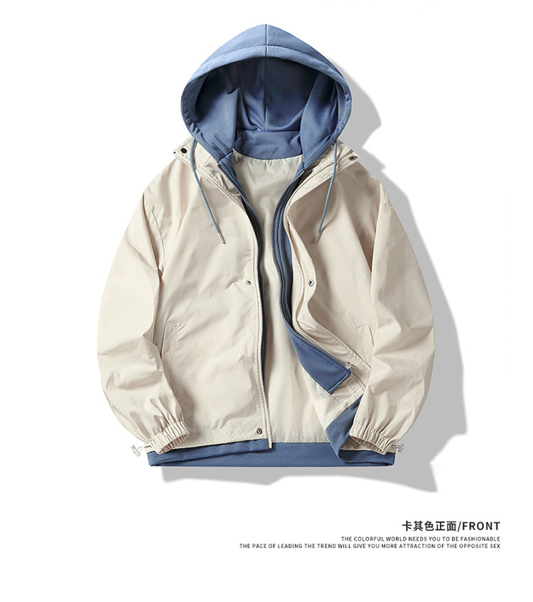 潮牌夹克男外套春秋季款高品质假两件连帽男宽松上衣男装日系港风