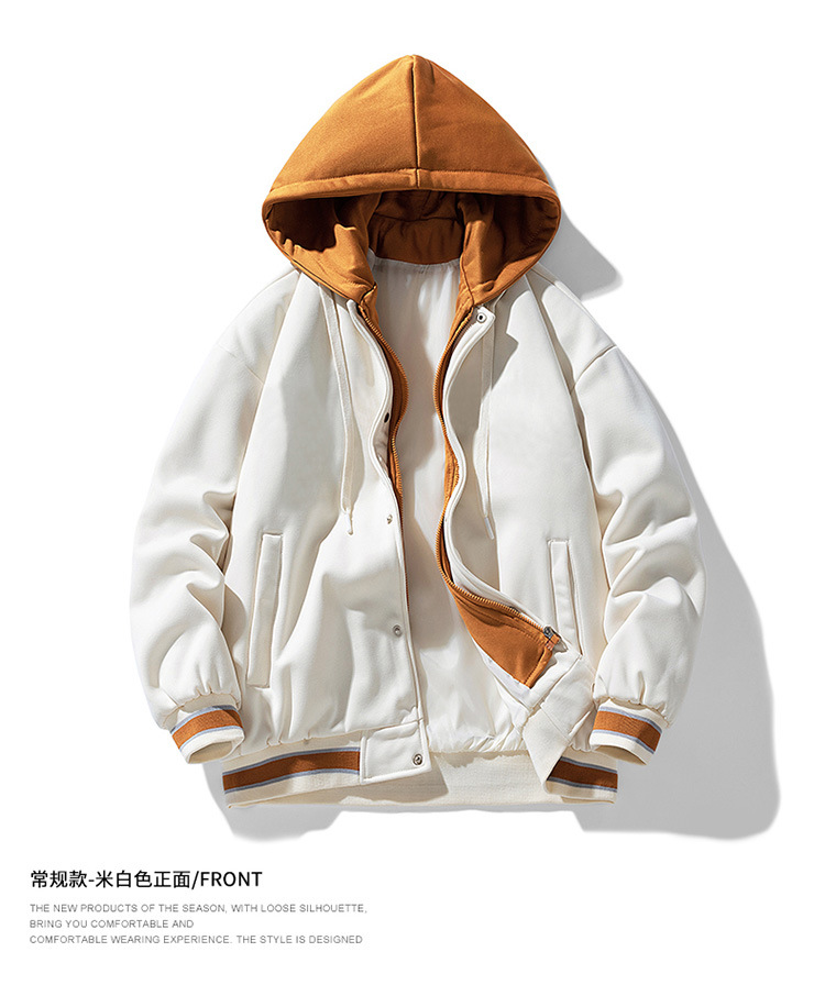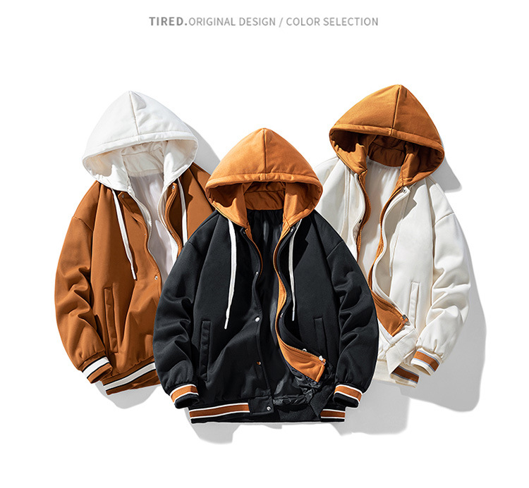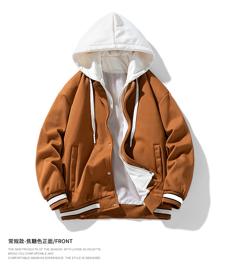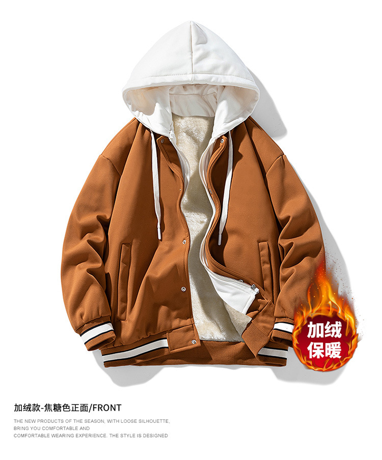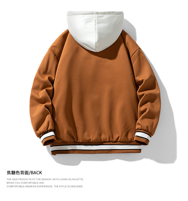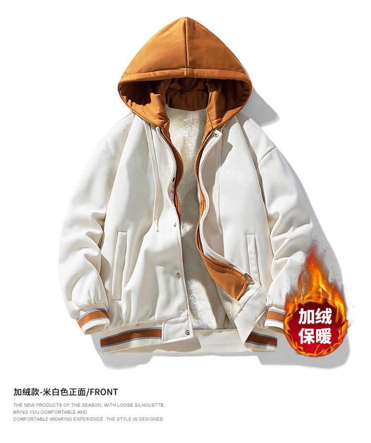 新款春秋港风棒球服连帽夹克男休闲上衣加绒加厚宽松外套男士衣服
