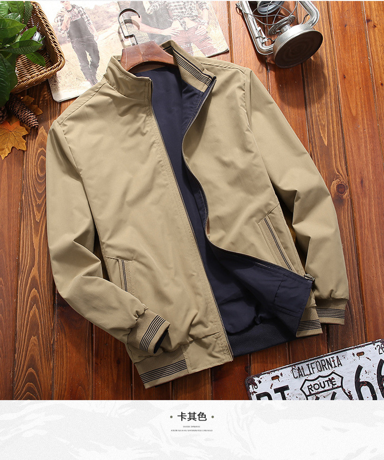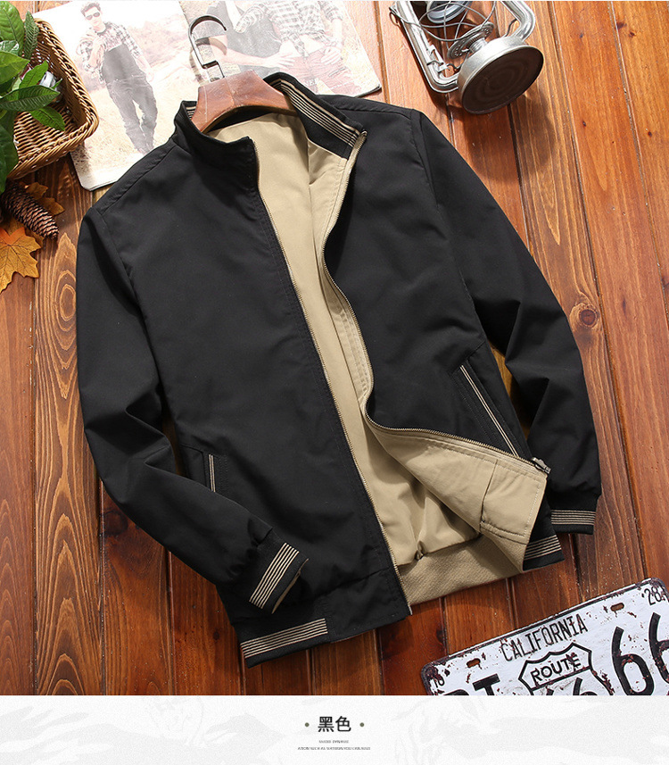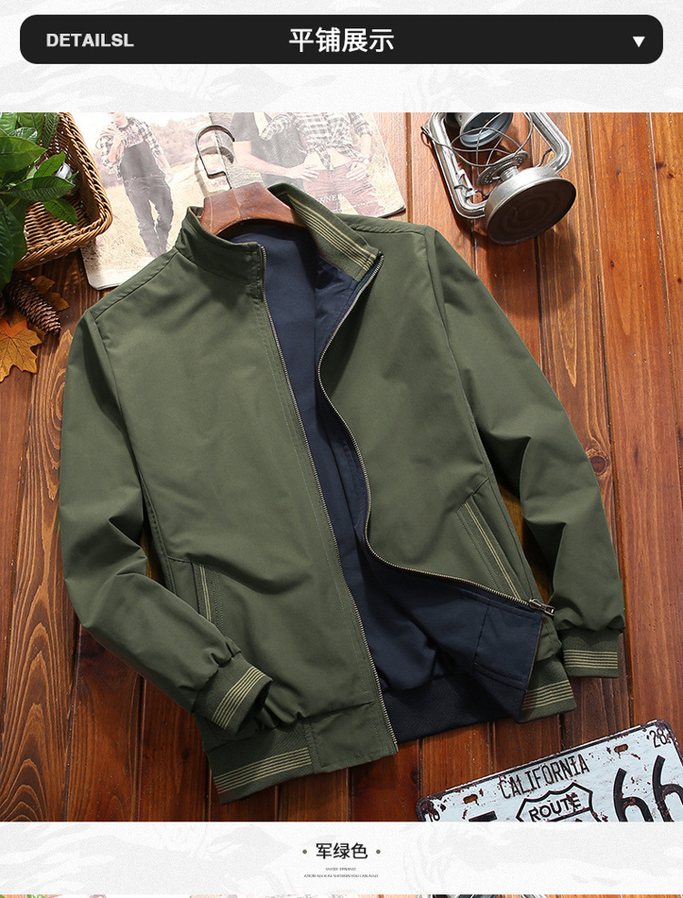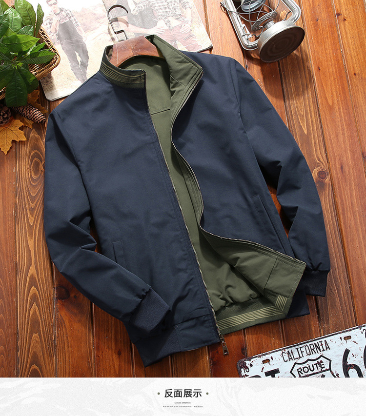 夹克男春秋新款双面穿外套男装时尚潮流立领休闲夹克男士秋装衣服